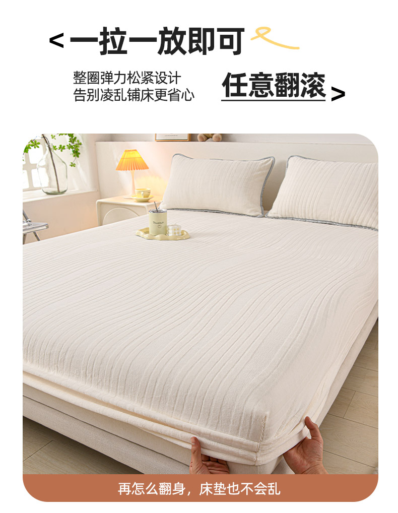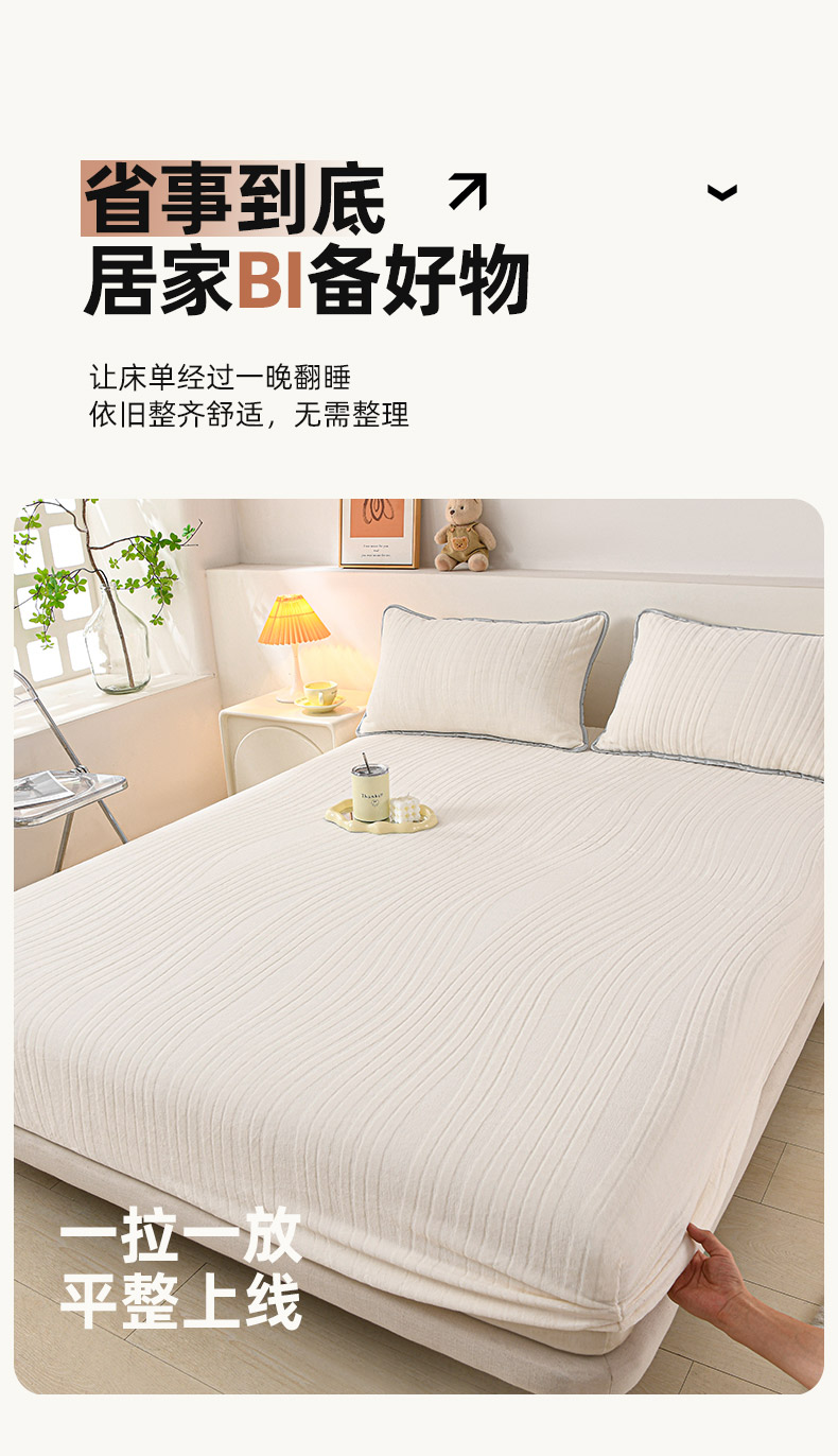 推推家纺 2025新款雕花加厚牛奶绒床笠 条纹时代-米白