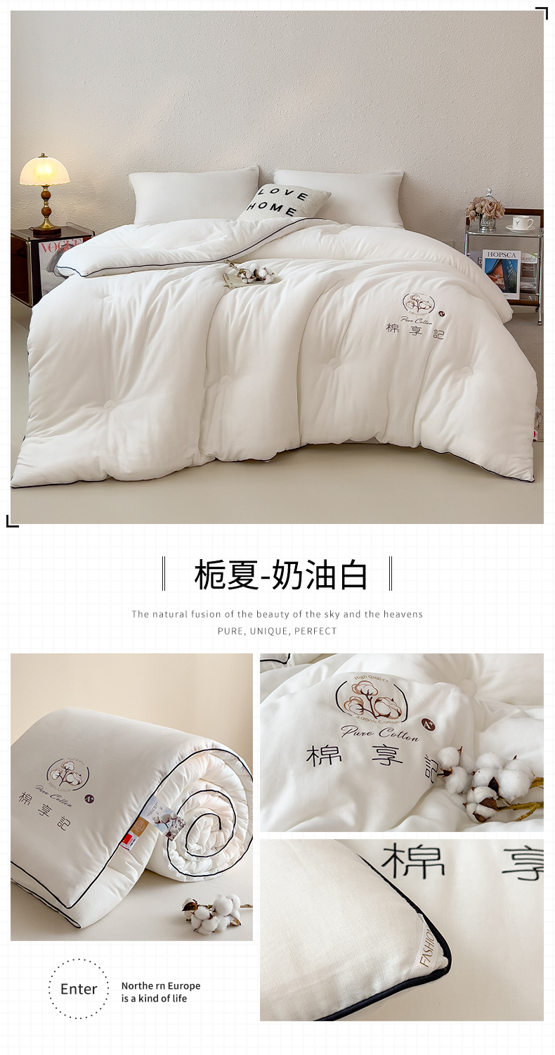 • 91家纺网 家纺一手货源 找家纺 (总)米菲 2025新款全棉双层纱花边被被子被芯,初春,简约格调,南枝