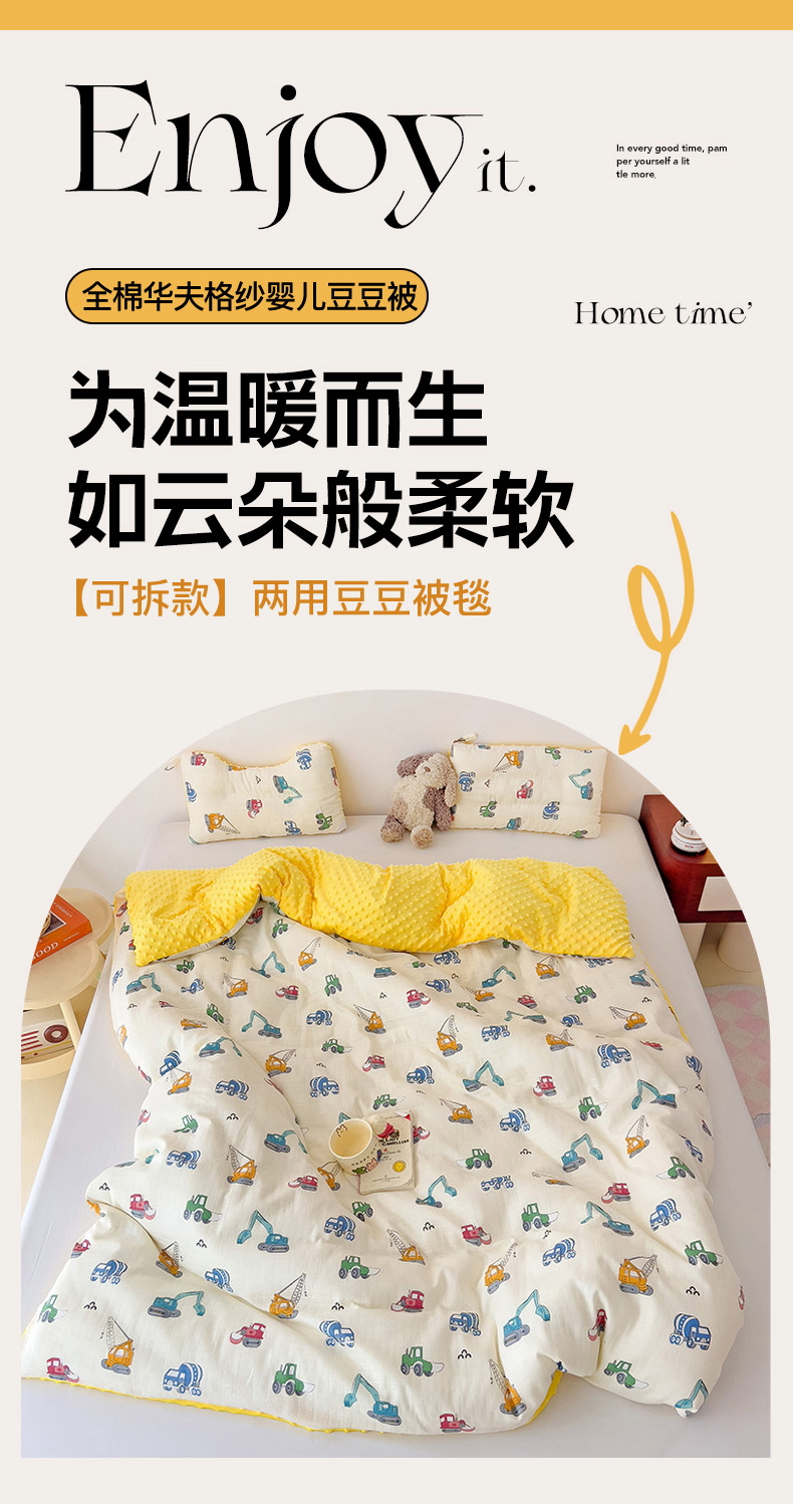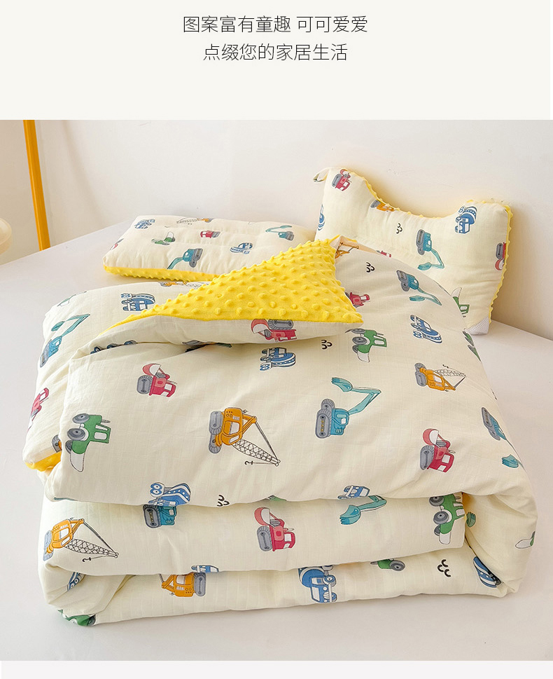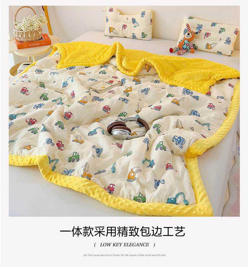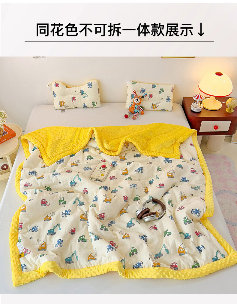 • 91家纺网 家纺一手货源 找家纺 十九色 2025新款婴幼儿安抚豆豆被全棉华夫格豆豆被一体款+可拆款(可机洗) 一体款-小吊车