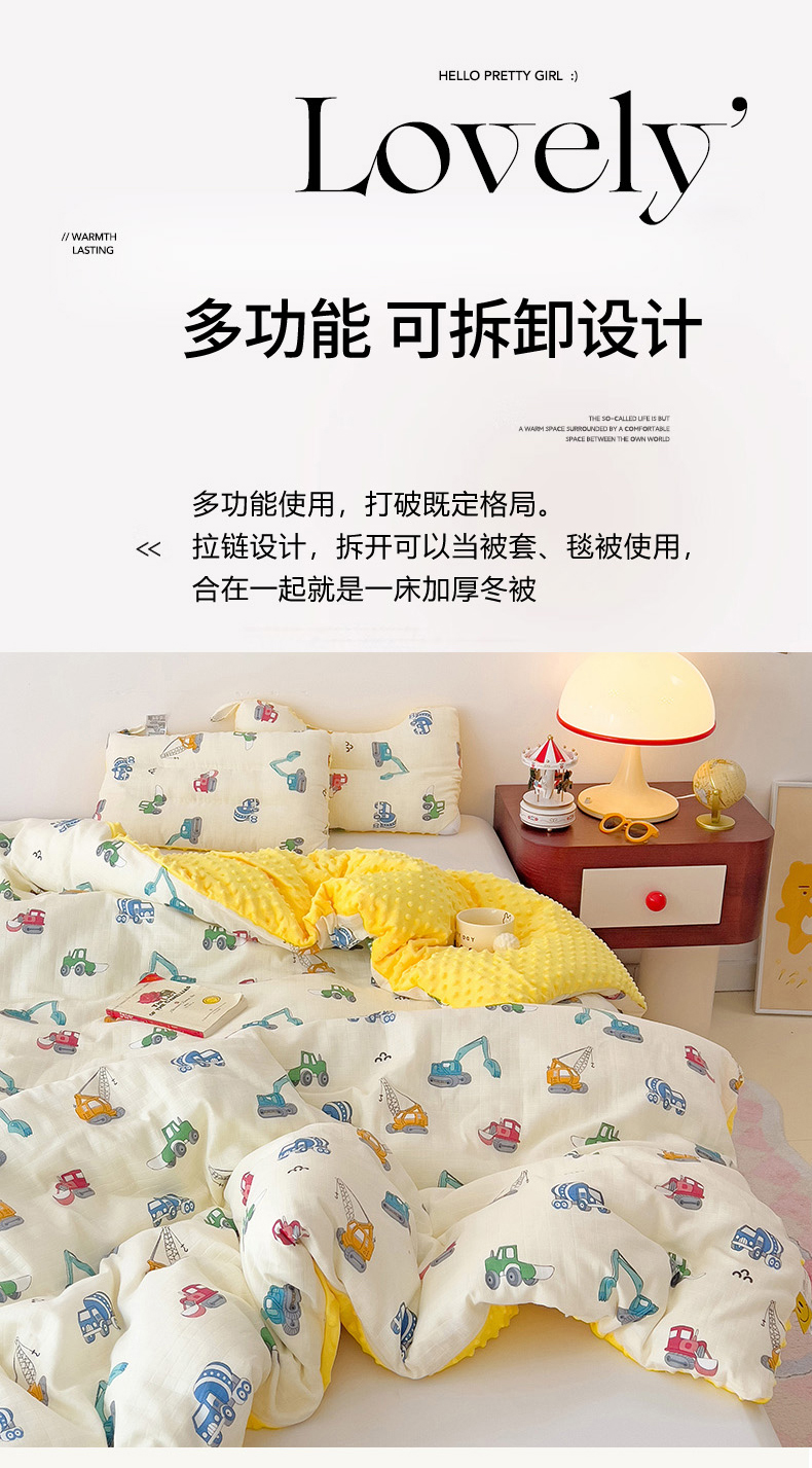 (总)十九色 2025新款亲肤舒适活套可拆全棉豆豆绒儿童睡袋防踢被,组合图仅供参考不可下单,玩具车,望远镜,挖掘机,幸运兔,内芯,度假狗,飞马,美味,好运满满,明细图