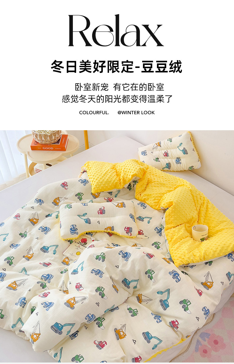 • 91家纺网 家纺一手货源 找家纺 (总)十九色 2025新款亲肤舒适活套可拆全棉豆豆绒儿童睡袋防踢被,组合图仅供参考不可下单,玩具车,望远镜,挖掘机,幸运兔,内芯,度假狗,飞马,美味,好运满满,明细图