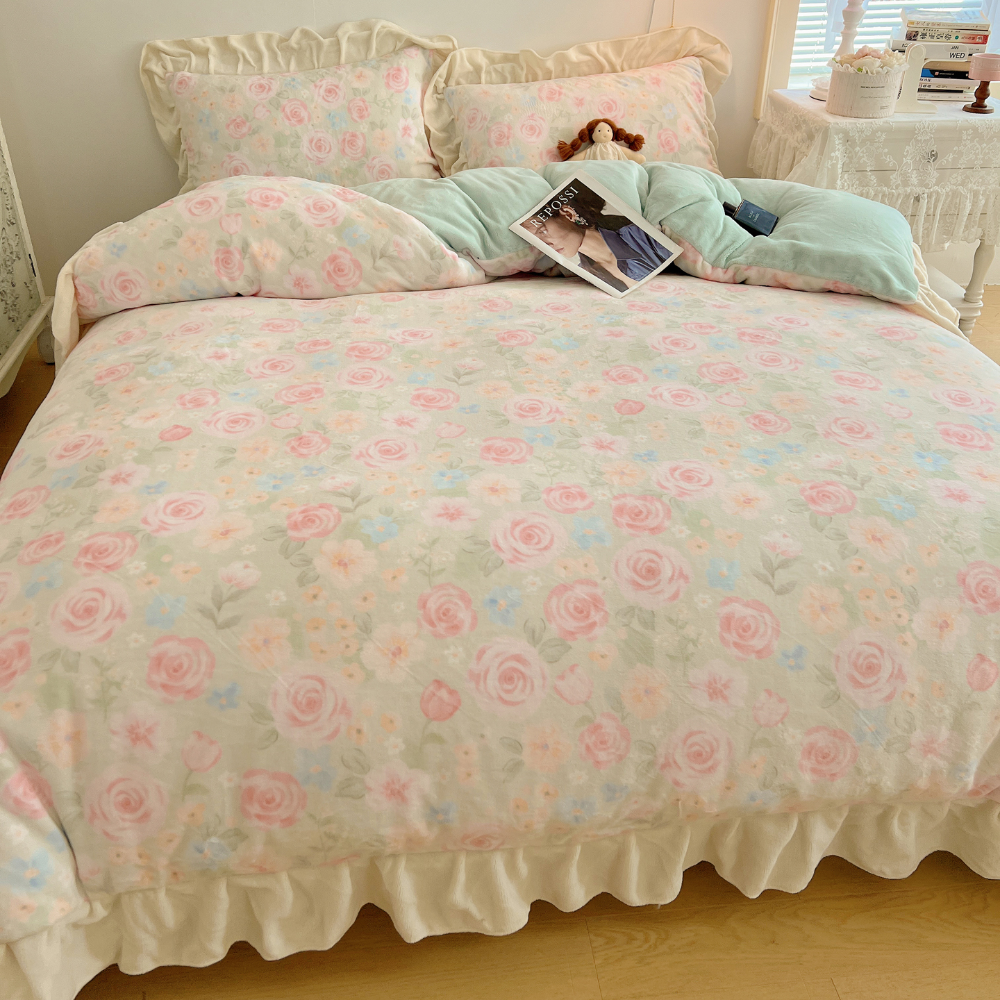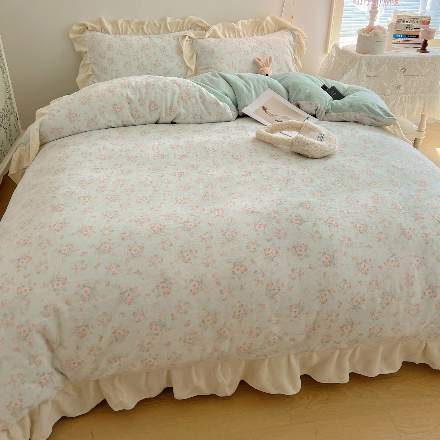 商品名称:桃喜 2025新款牛奶绒碎花花边系列四件套【会员-5】 馥郁蓝