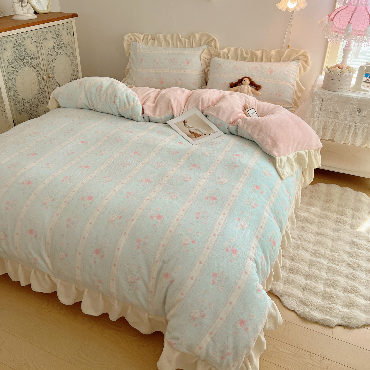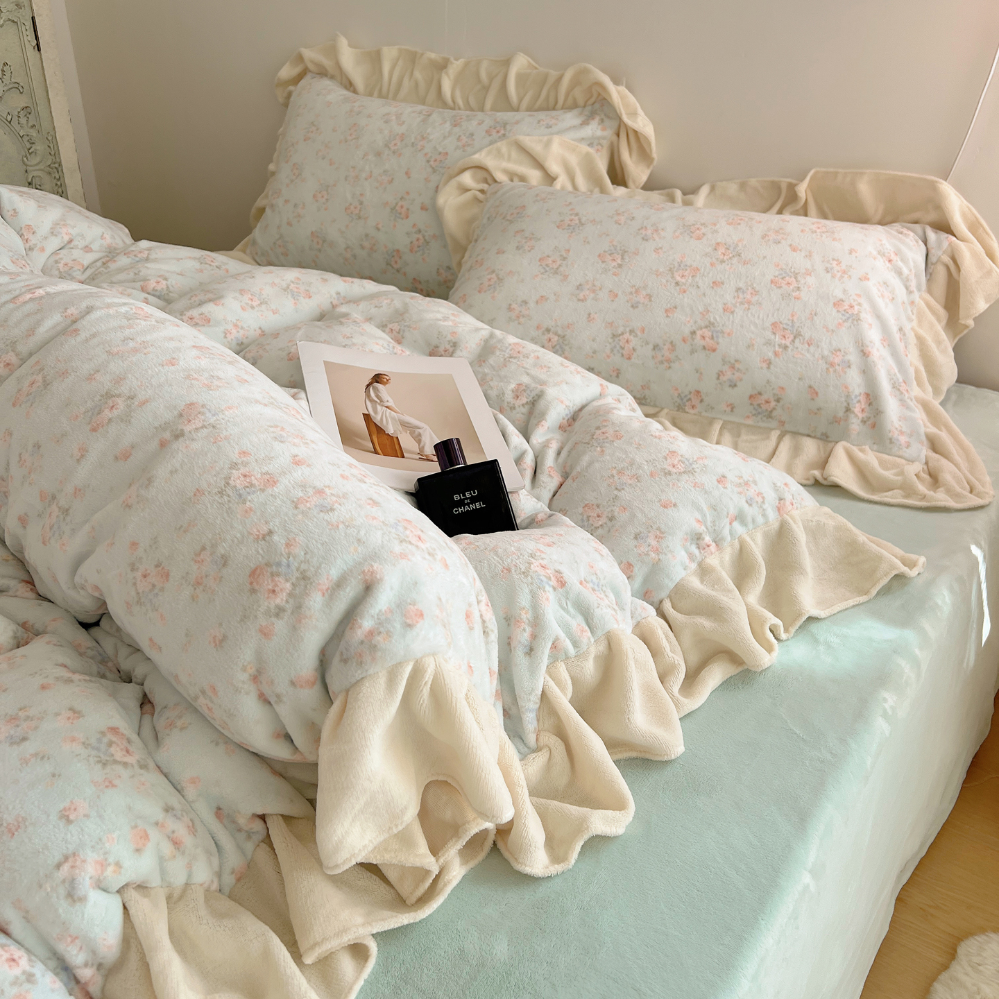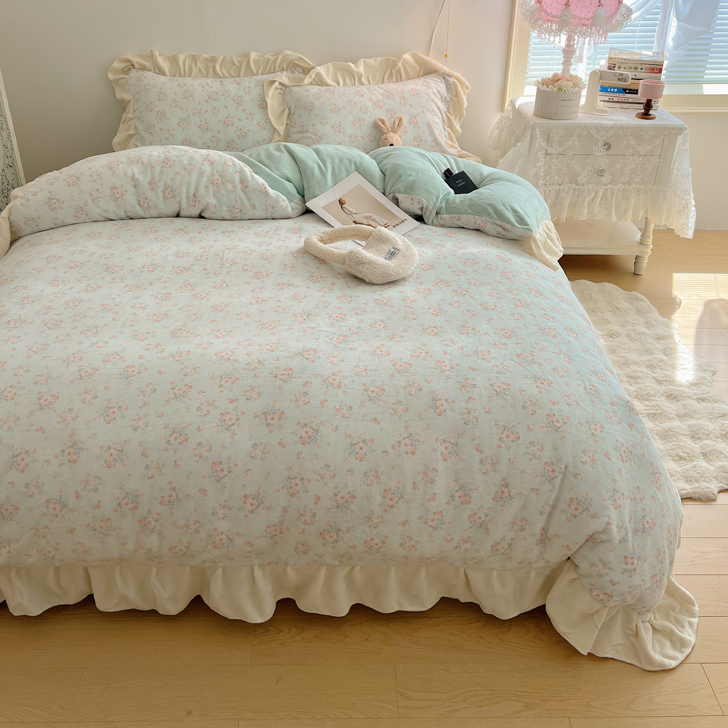 桃喜 2025新款牛奶绒碎花花边系列四件套【会员-5】 馥郁蓝