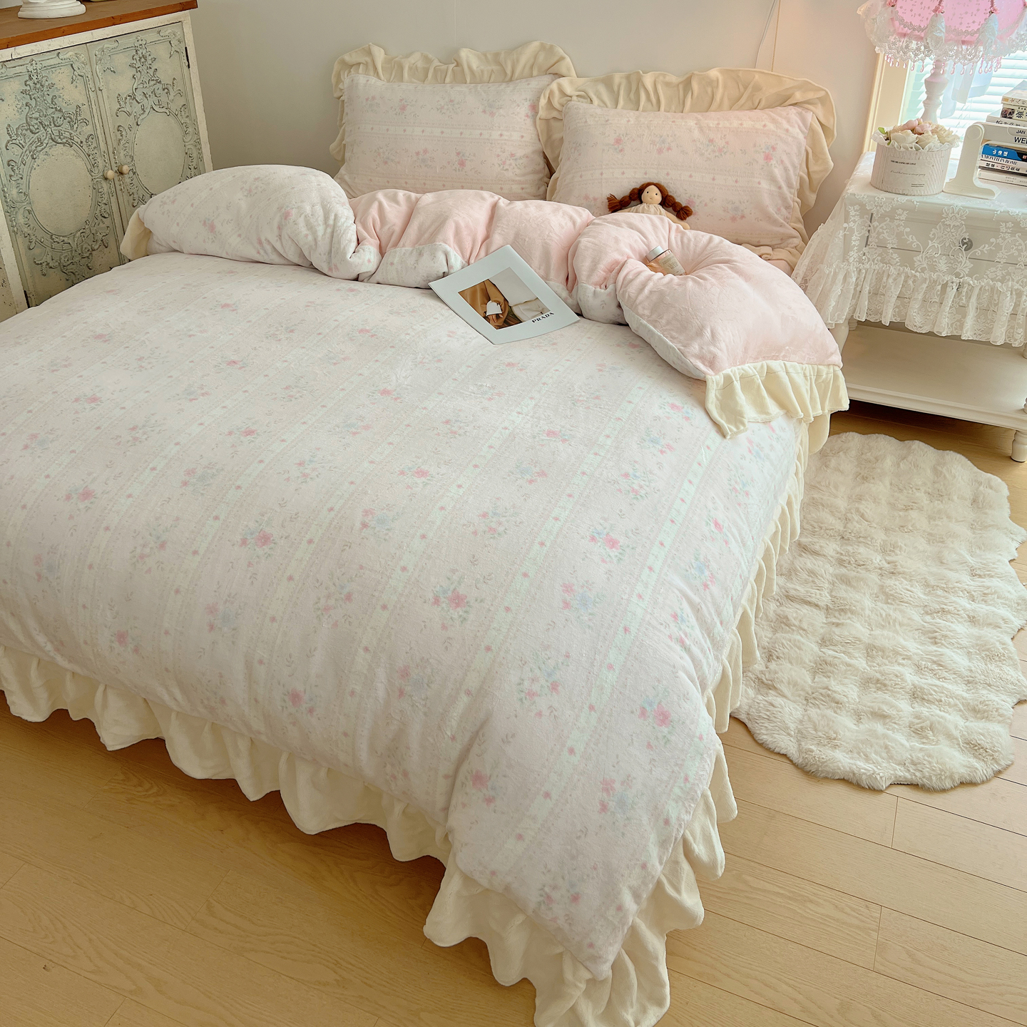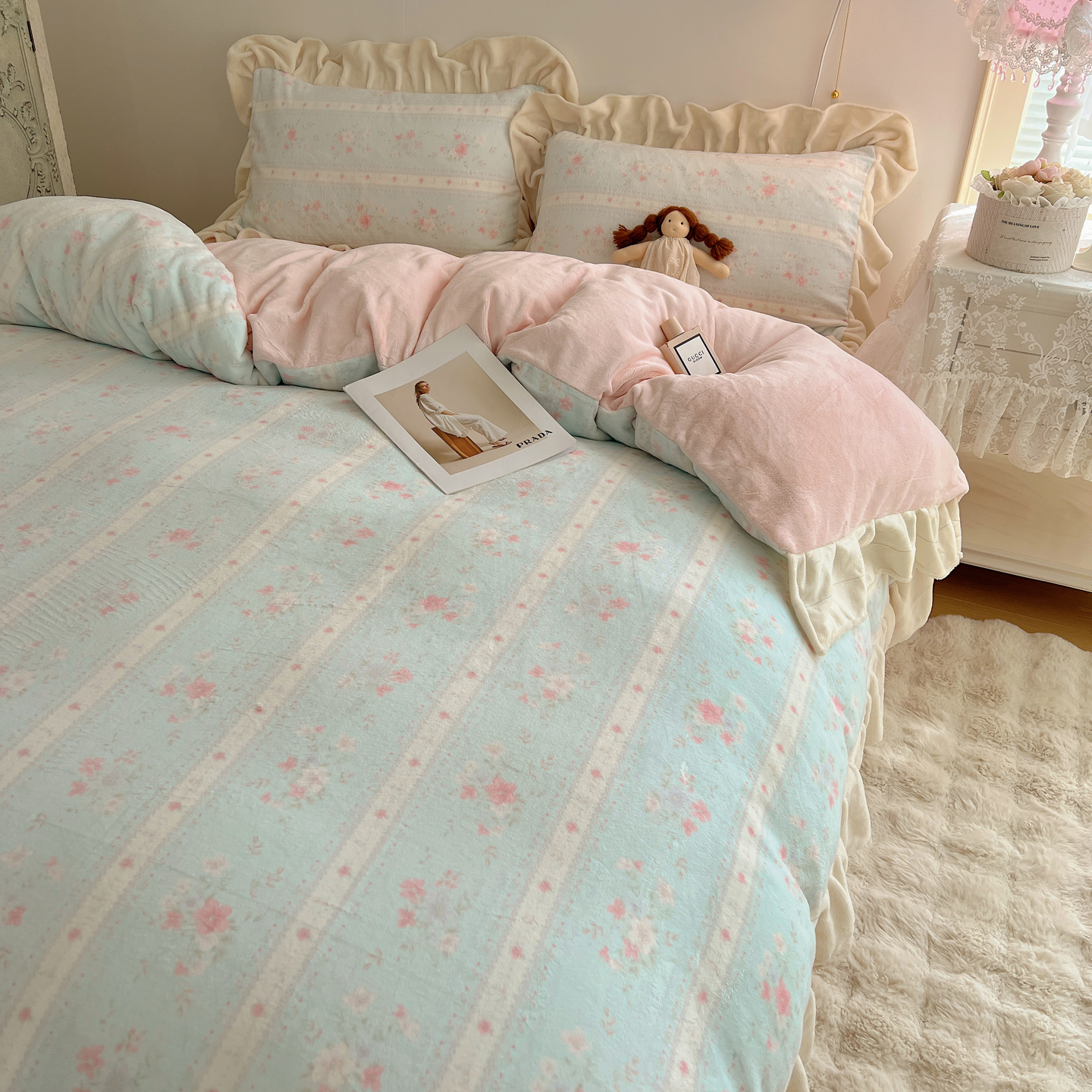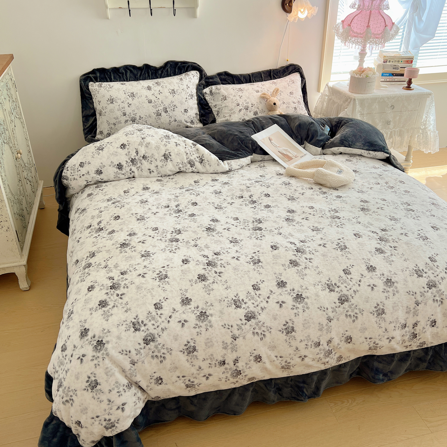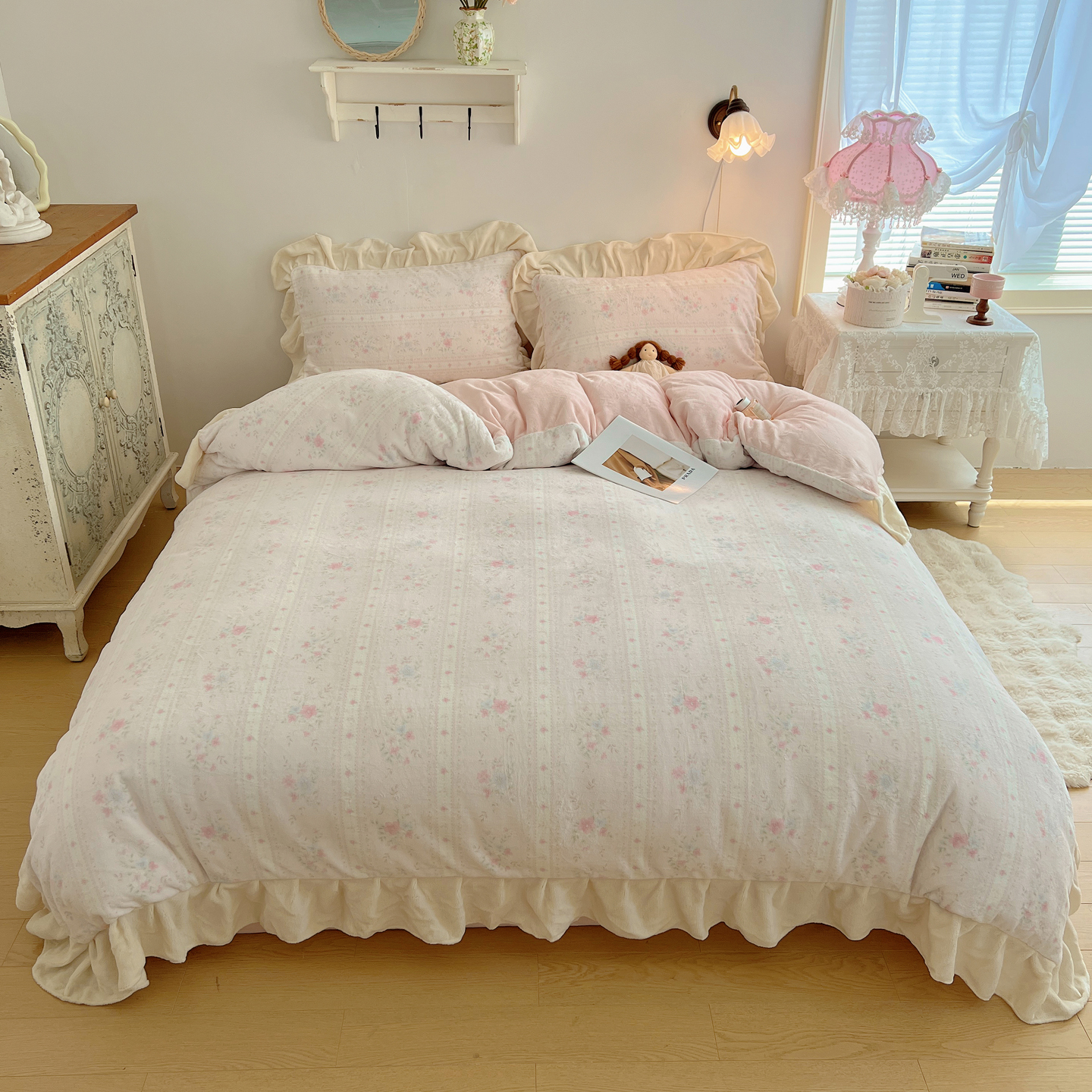 桃喜 2025新款牛奶绒碎花花边系列四件套【会员-5】 馥郁蓝