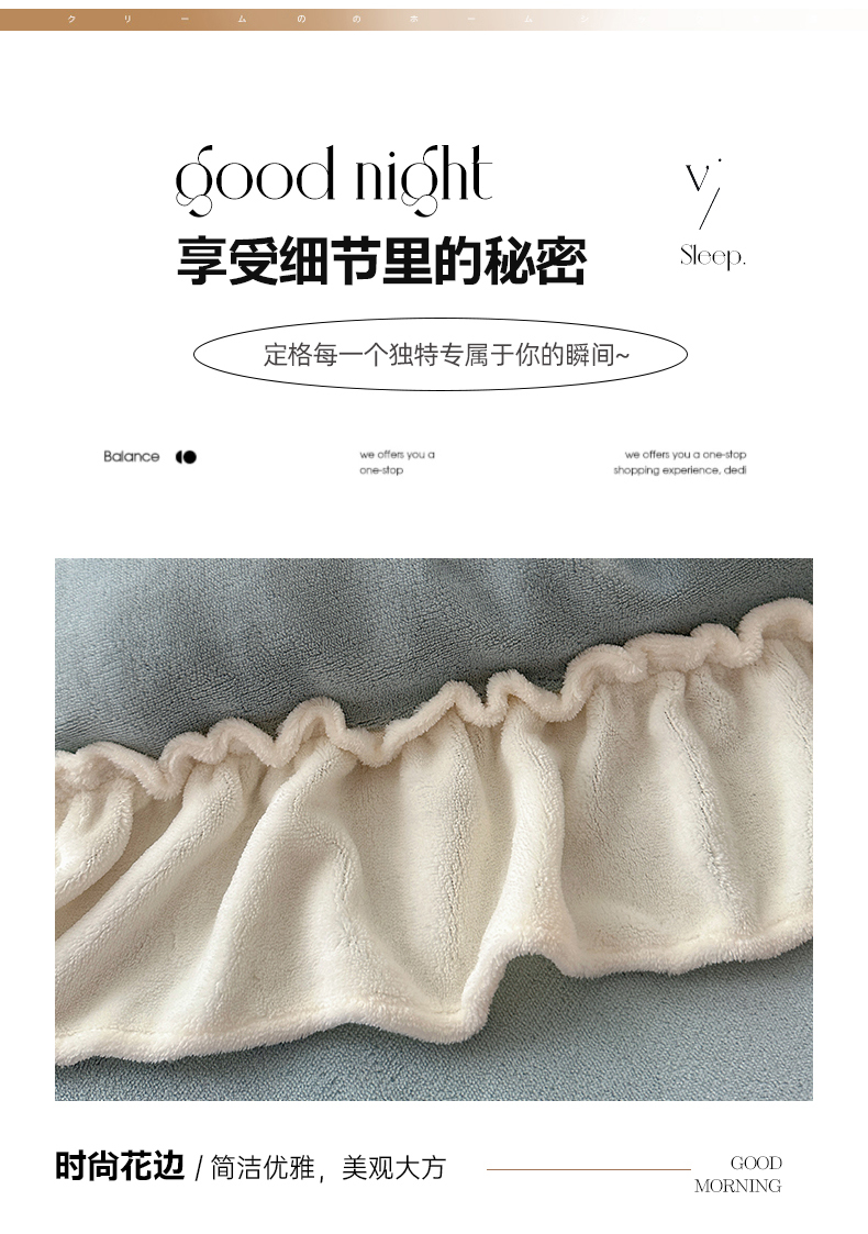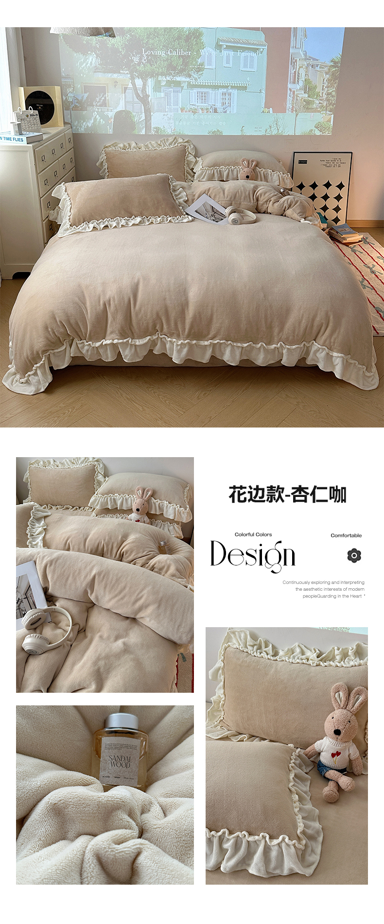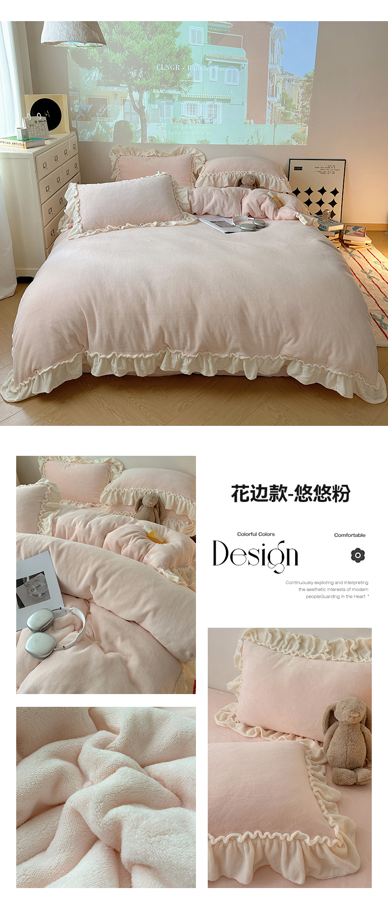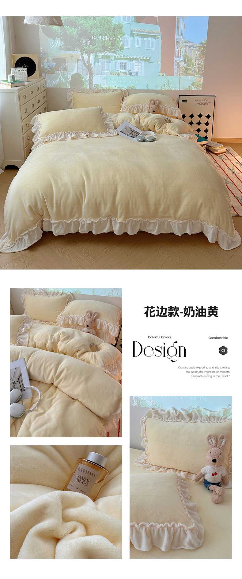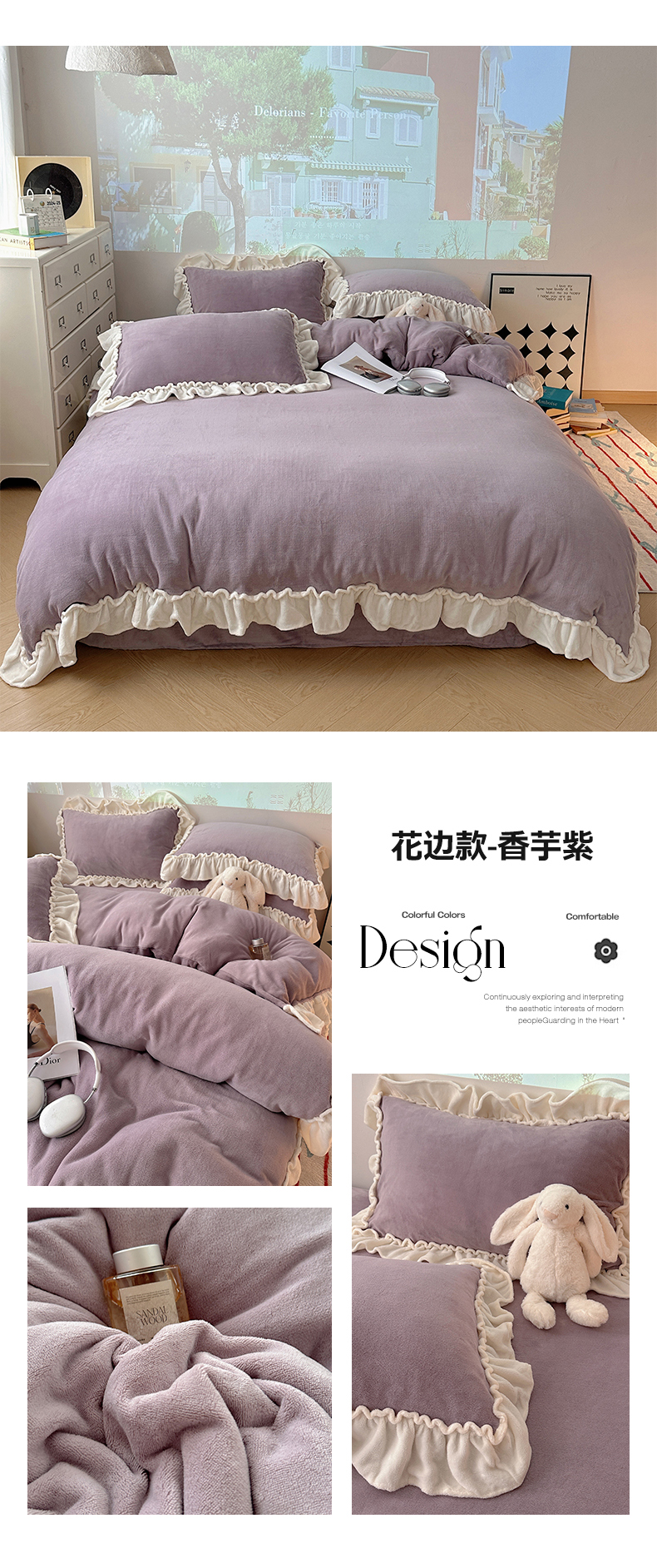 当前位置: 91家纺网 > 商品网购 > 床品套件 > 四件套 > 牛奶绒四件套 > 六巷胡同 2025新款A类法式小清新纯色牛奶绒花边款四件套 花边款-淡天蓝