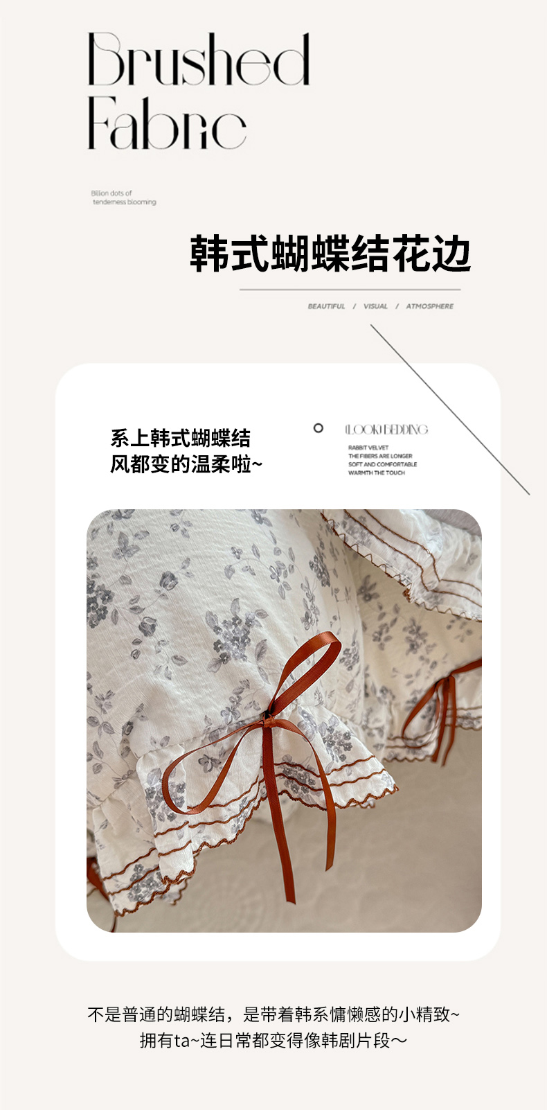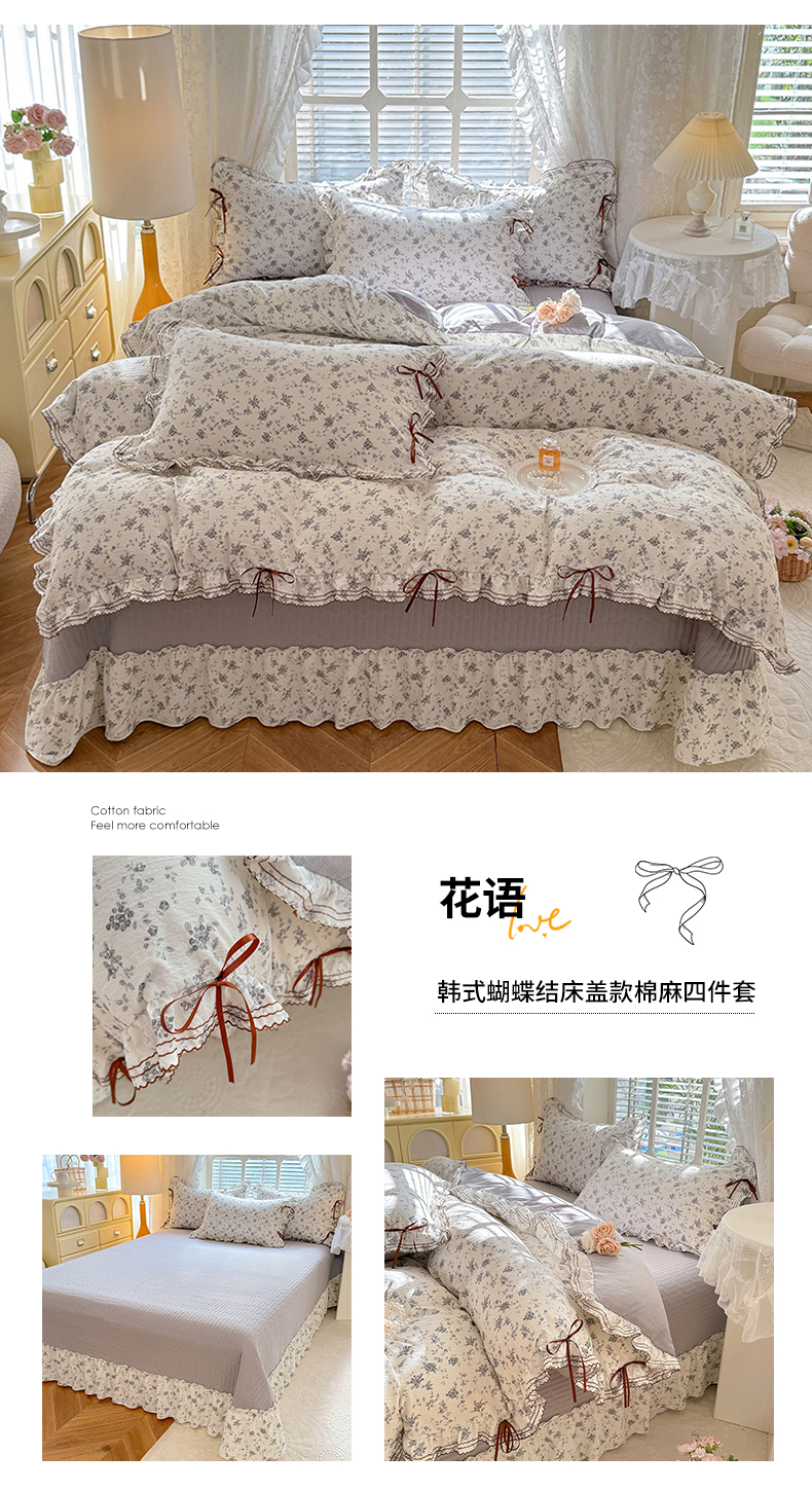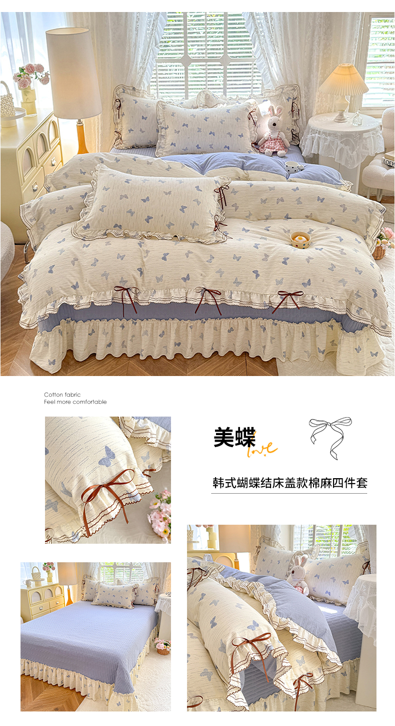 商品名称:韩约家纺 2025新款韩约1韩式蝴蝶结床盖款棉麻四件套 美蝶