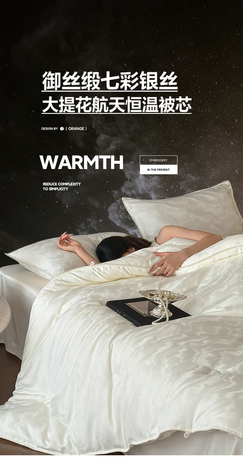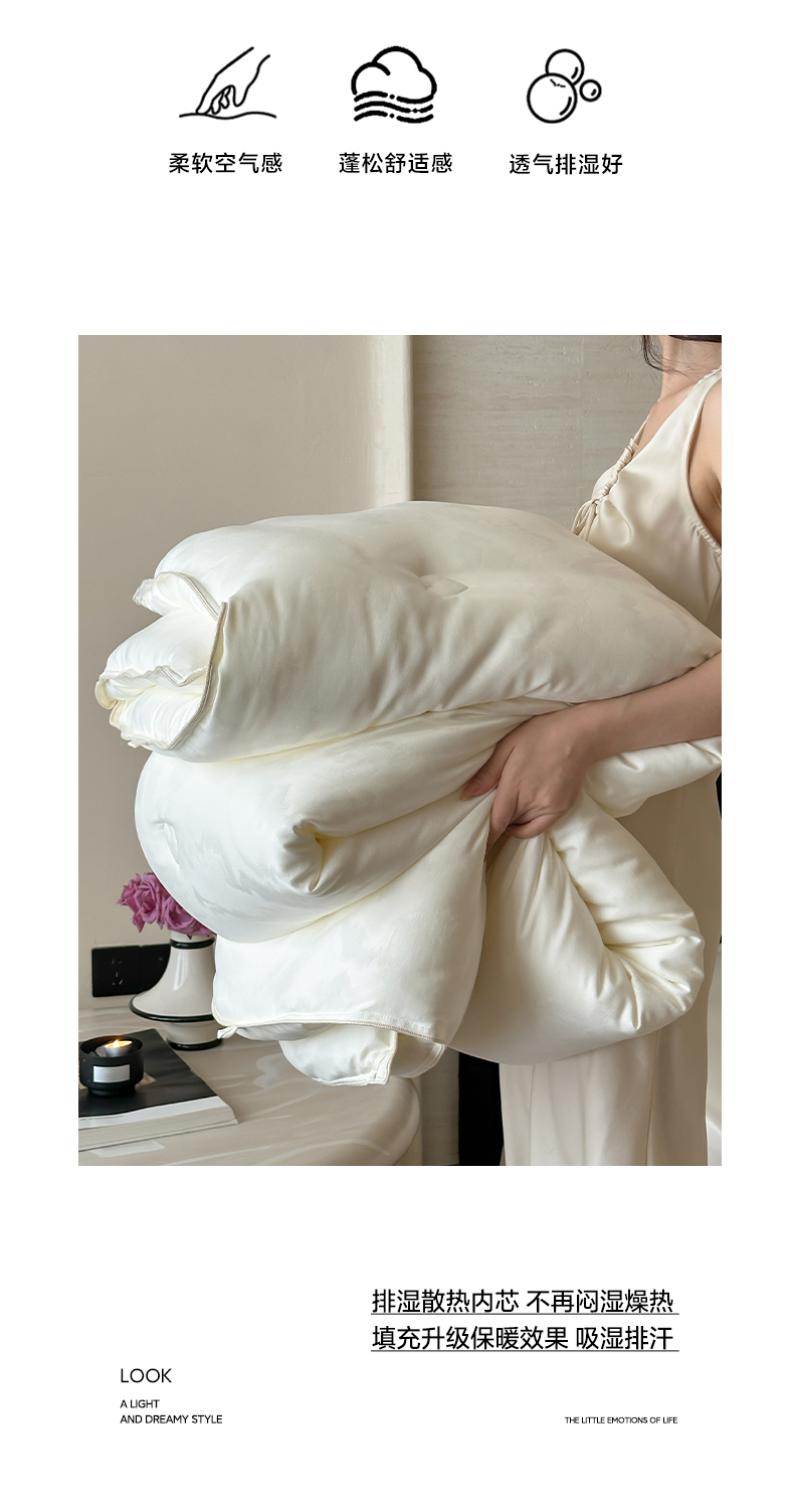 商品名称:一加一 2025新款御丝缎七彩银丝大提花航天恒温被子被芯 曲蕴-奶白