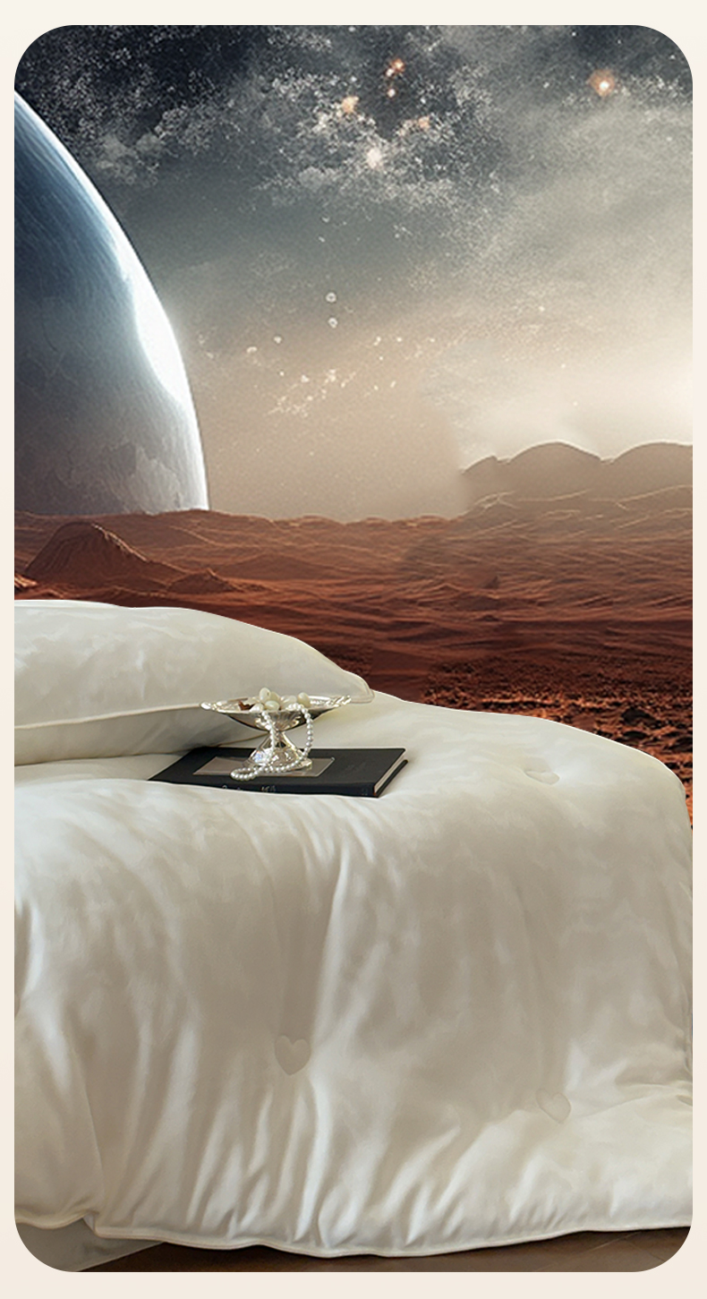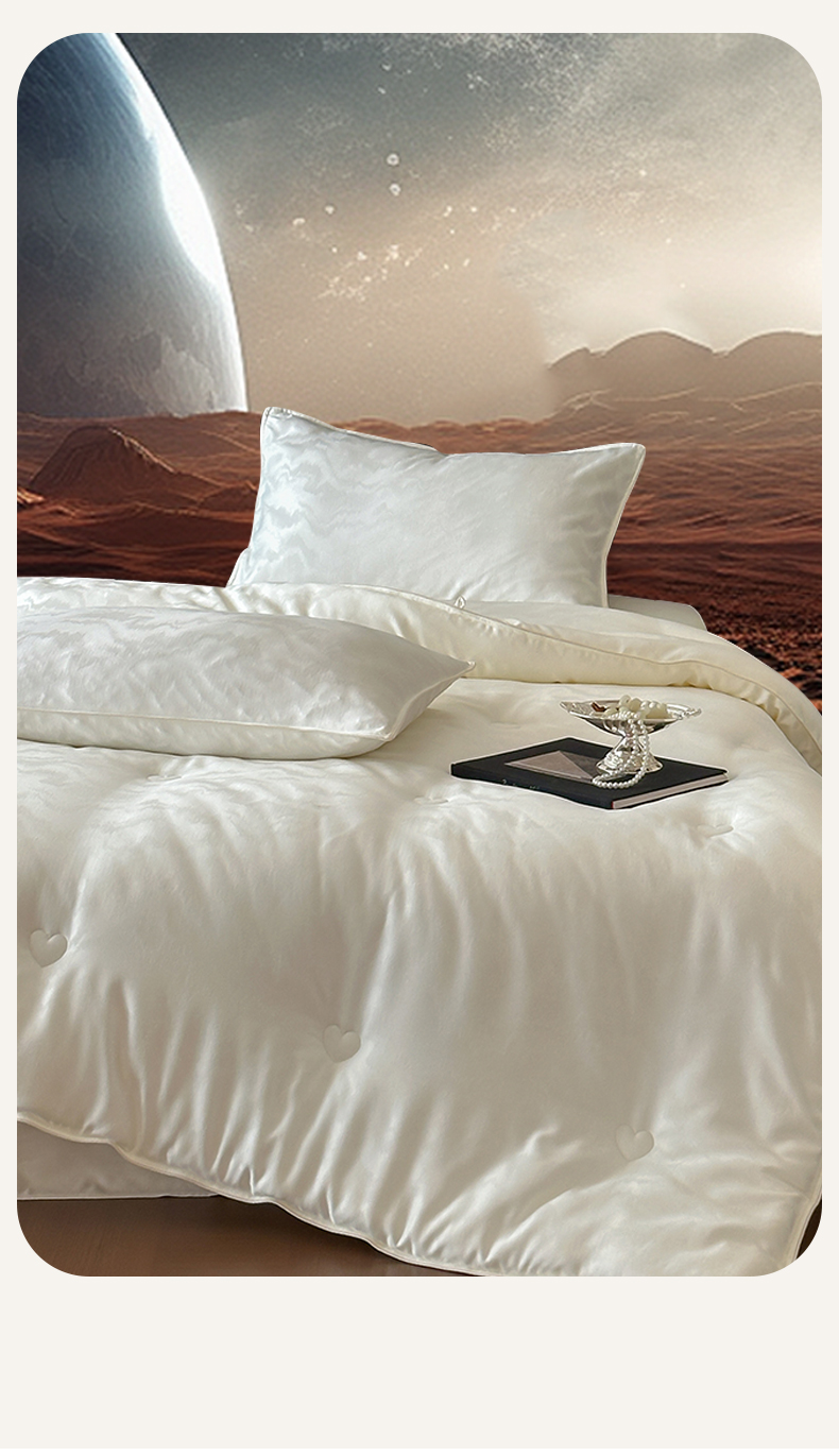 一加一 2025新款御丝缎七彩银丝大提花航天恒温被子被芯 曲蕴-奶白