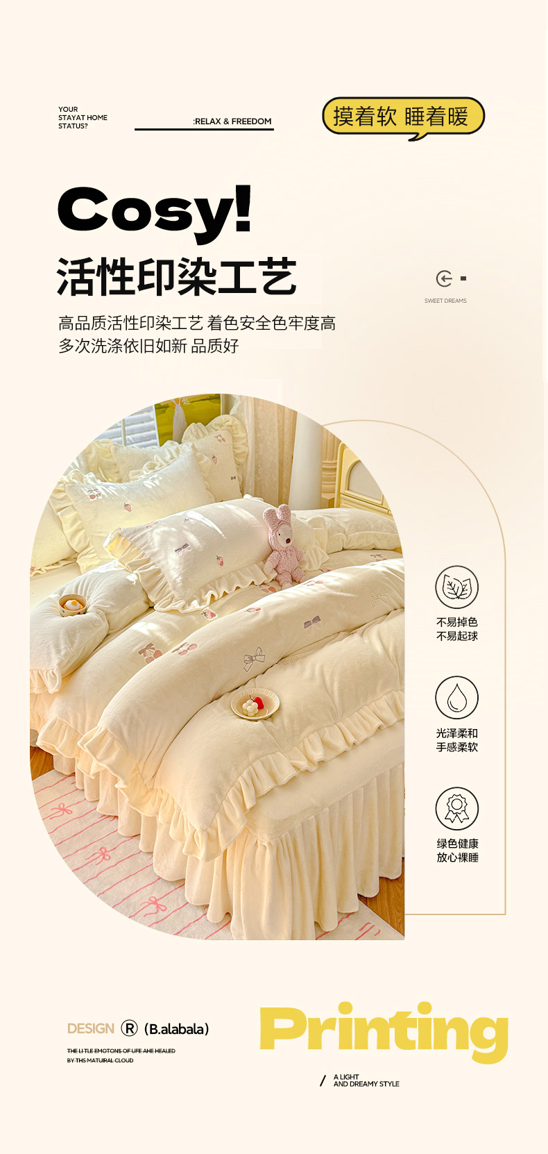 3、通州区市场监督局友情提醒,近期涉及到床上用品不褪色不掉毛不缩水的投诉和以世界知名品牌图案为面料的床品举报较多。请各商家自检自查,对照整改或进行下架处理。