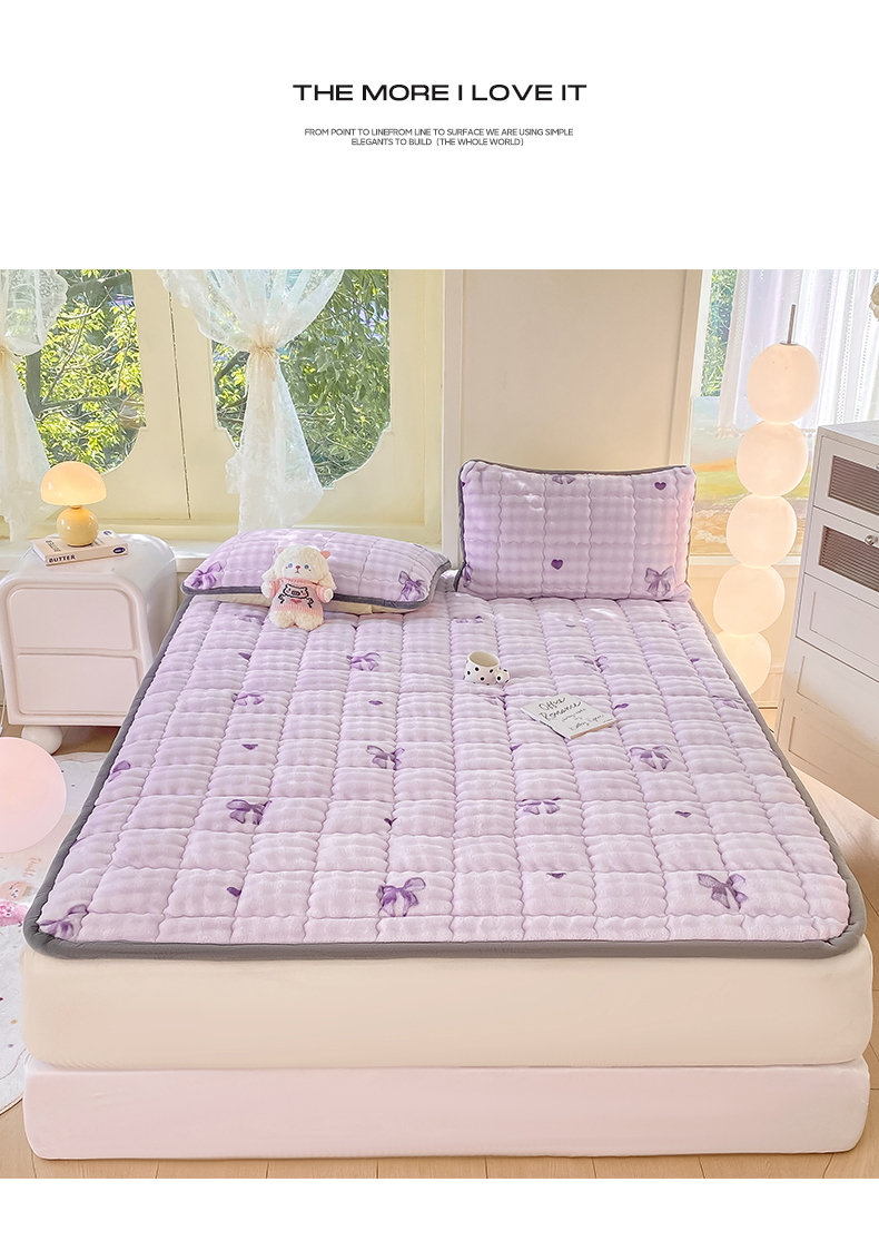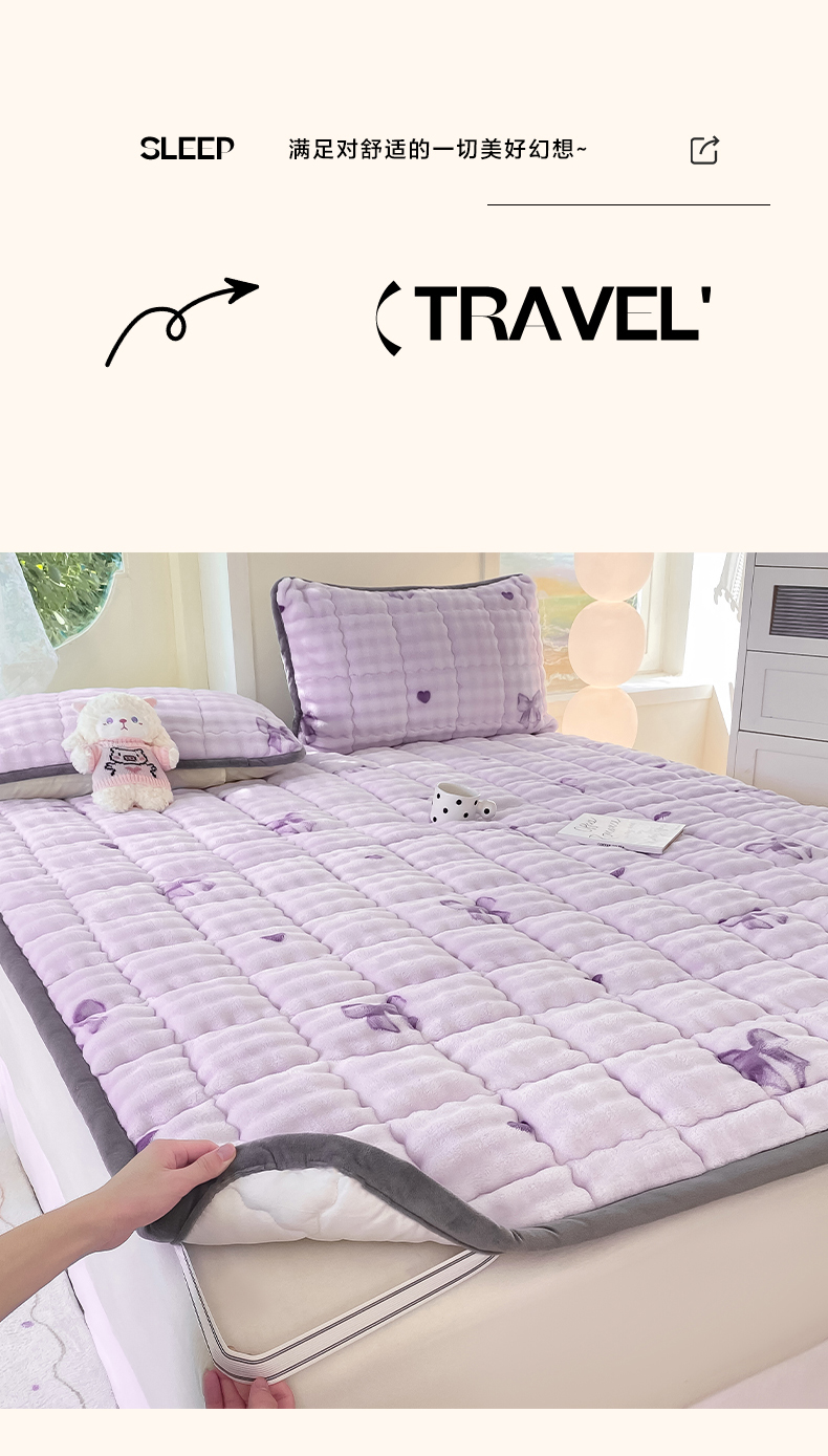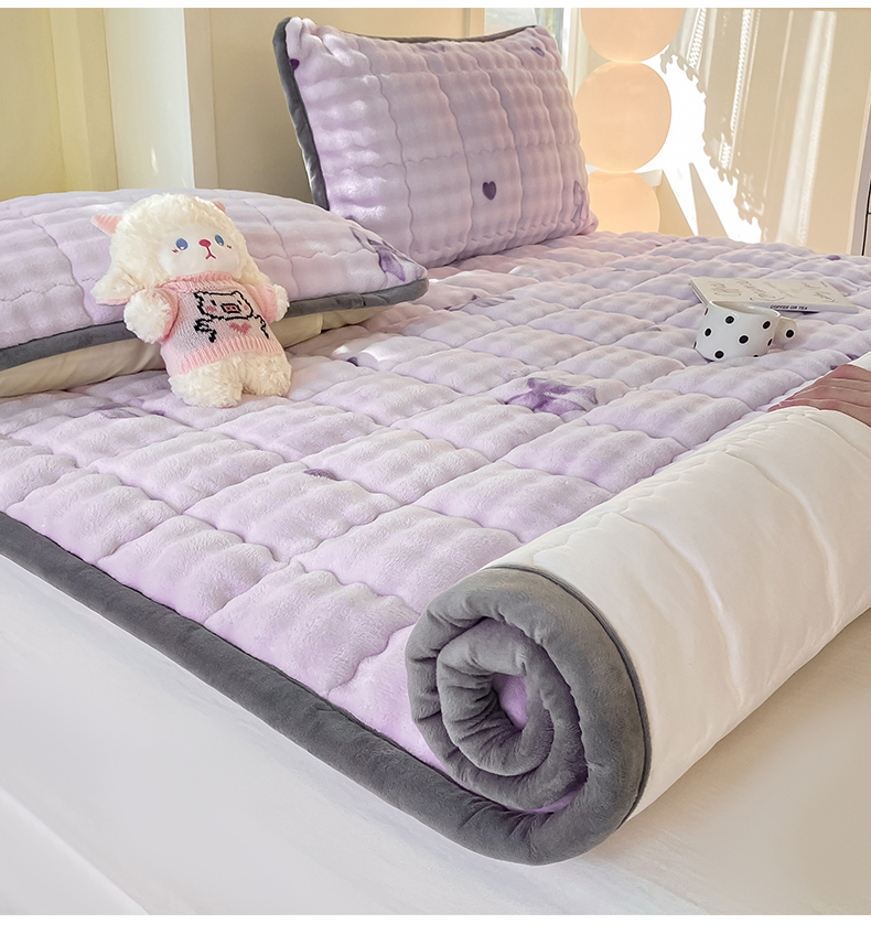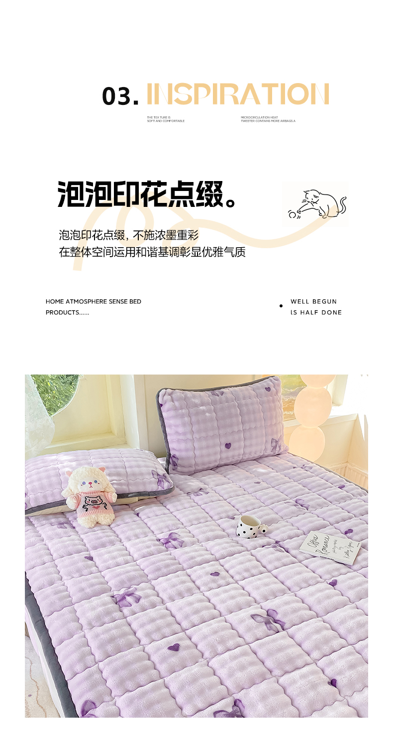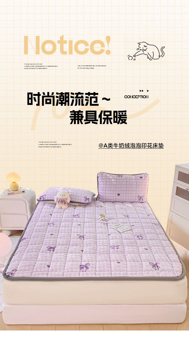 • 91家纺网 家纺一手货源 找家纺 眠势力 2025新款牛奶绒泡泡床垫加绒仿兔毛绒床褥子秋冬保暖珊瑚绒夹棉床护垫 罗曼情节