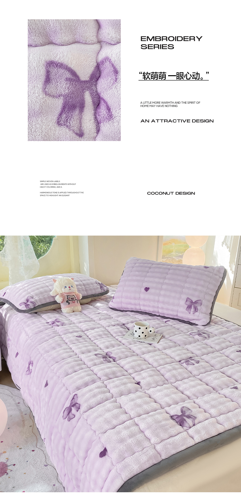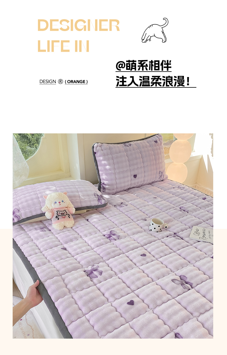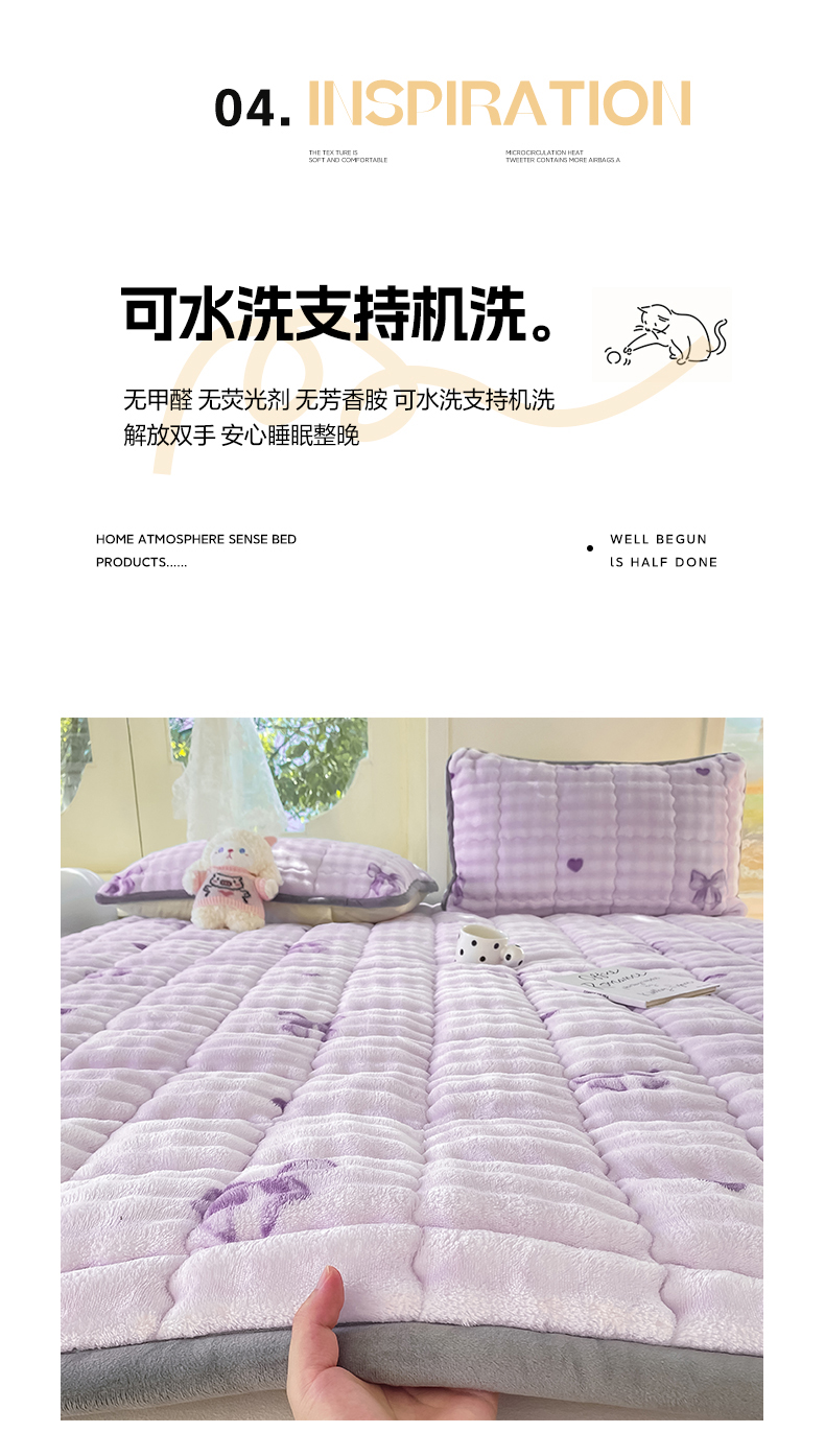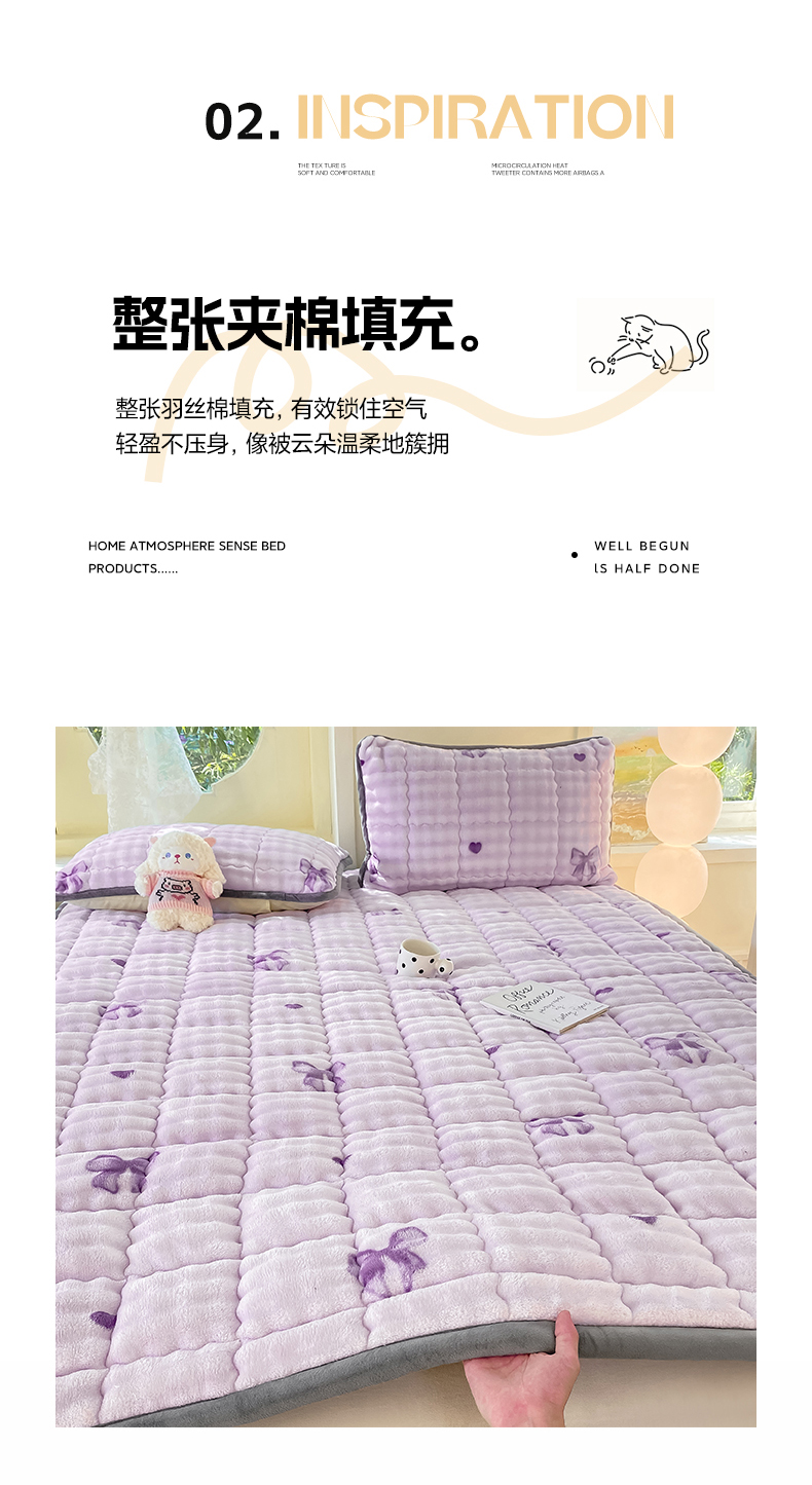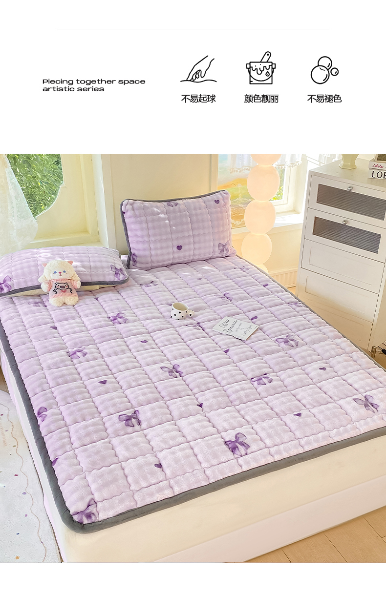 • 91家纺网 家纺一手货源 找家纺 眠势力 2025新款牛奶绒泡泡床垫加绒仿兔毛绒床褥子秋冬保暖珊瑚绒夹棉床护垫 罗曼情节