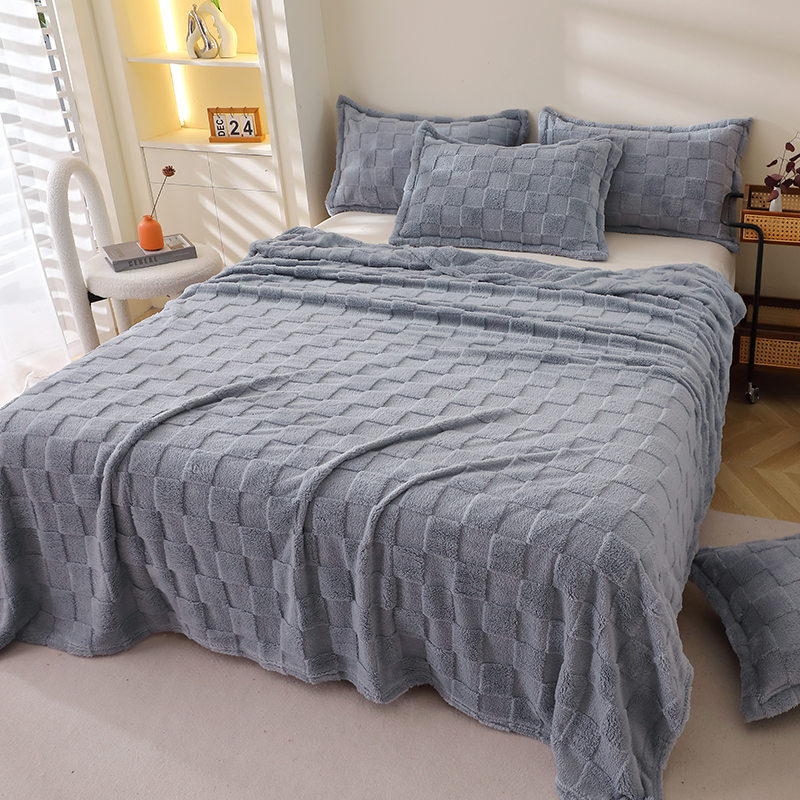 商品名称:栩裕纺织 2025新款意大利面包格毛毯-卷边款 面包格-深灰