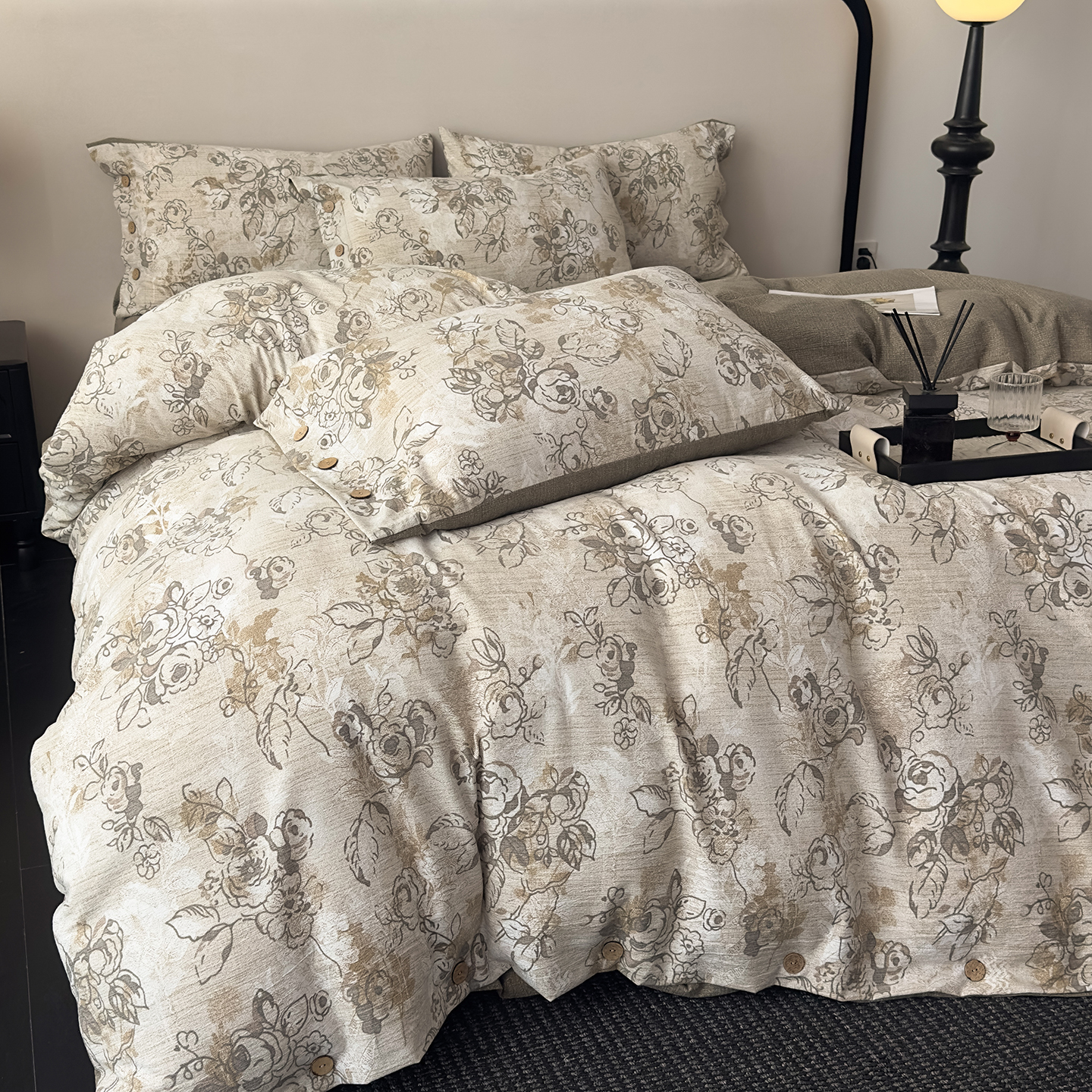 禧多家纺 2025新款提花原柔麻四件套纽扣款 瑞丽
