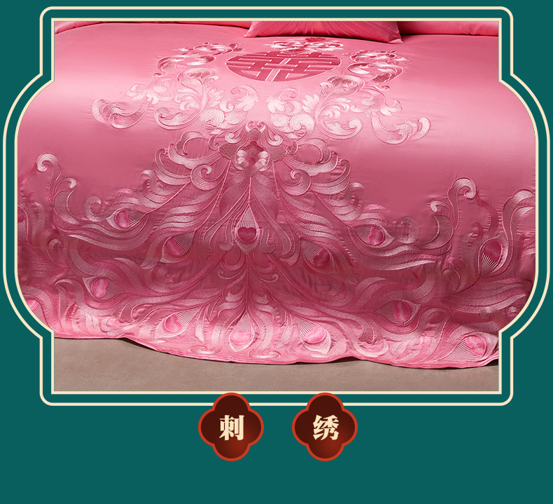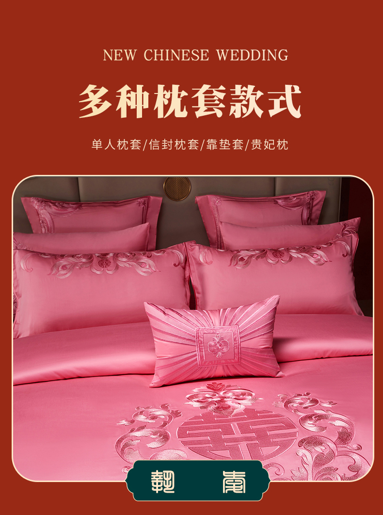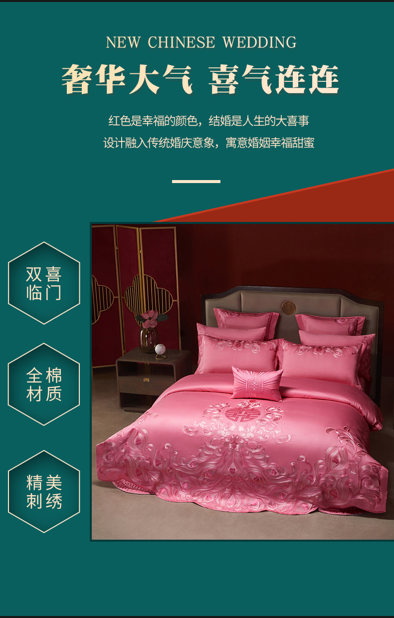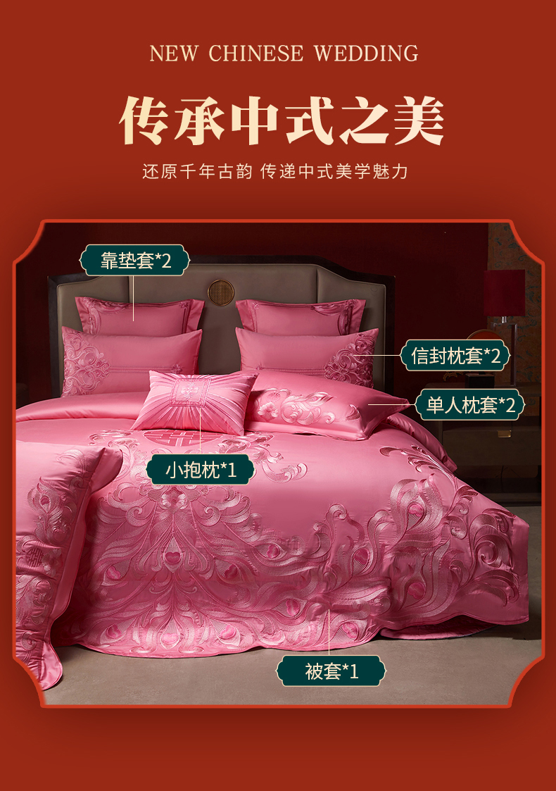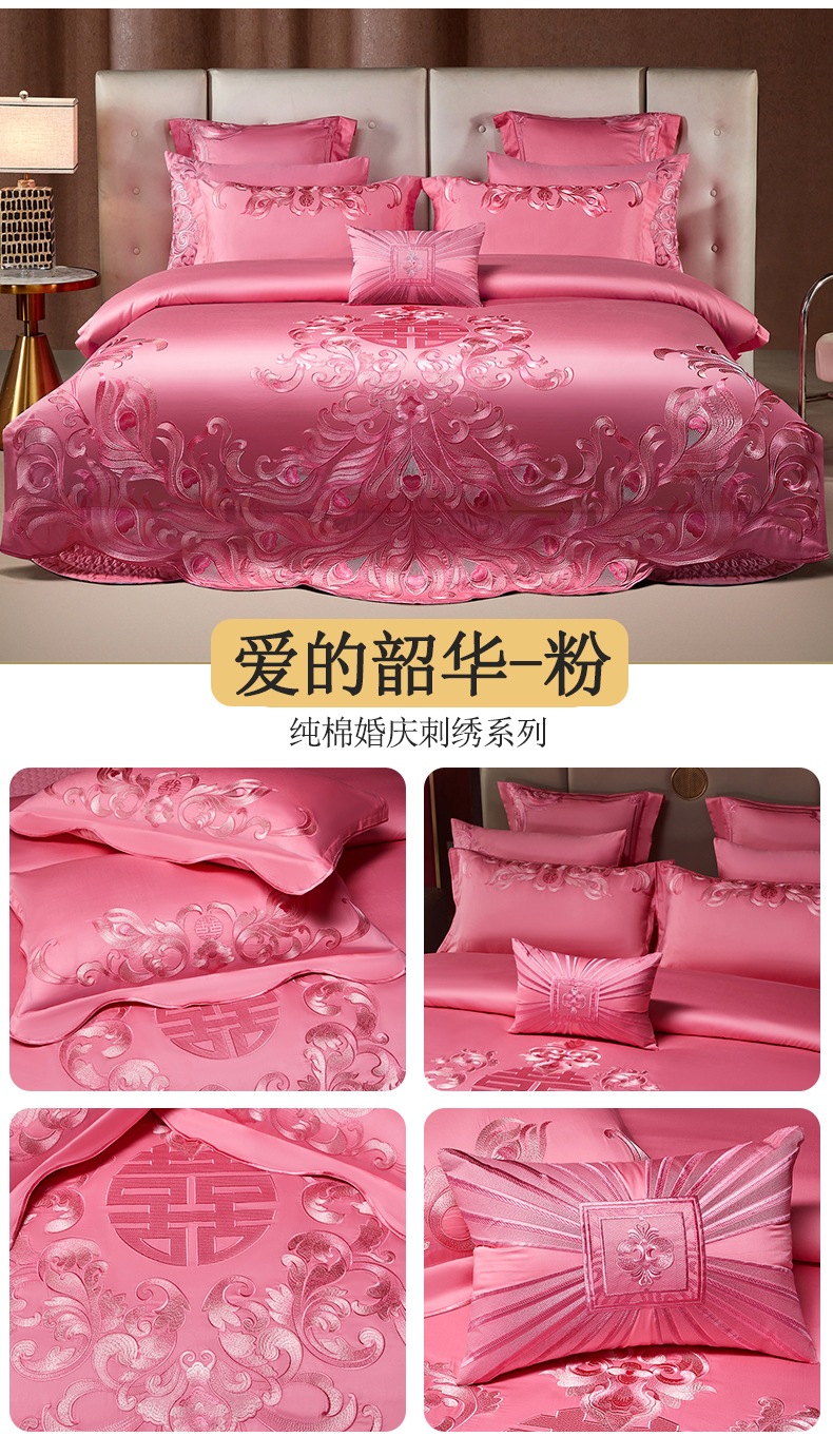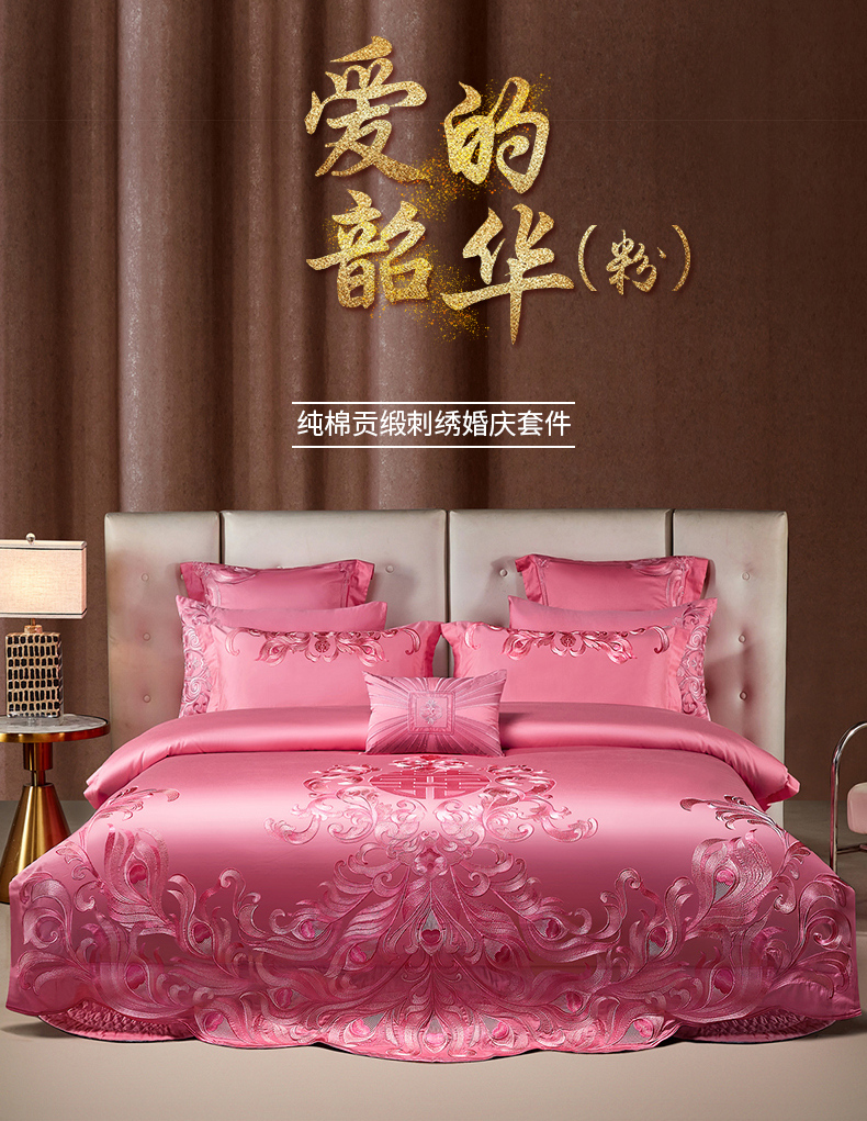 当前位置: 91家纺网 > 商品网购 > 床品套件 > 四件套 > 婚庆四件套 > 宏羽纺家纺 2025新款高支高密全棉提花新中式婚庆多件套 高支高密爱的韶华-粉