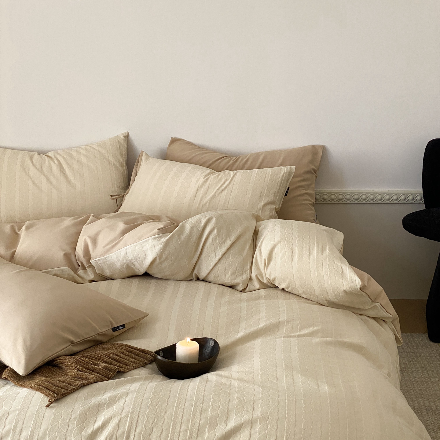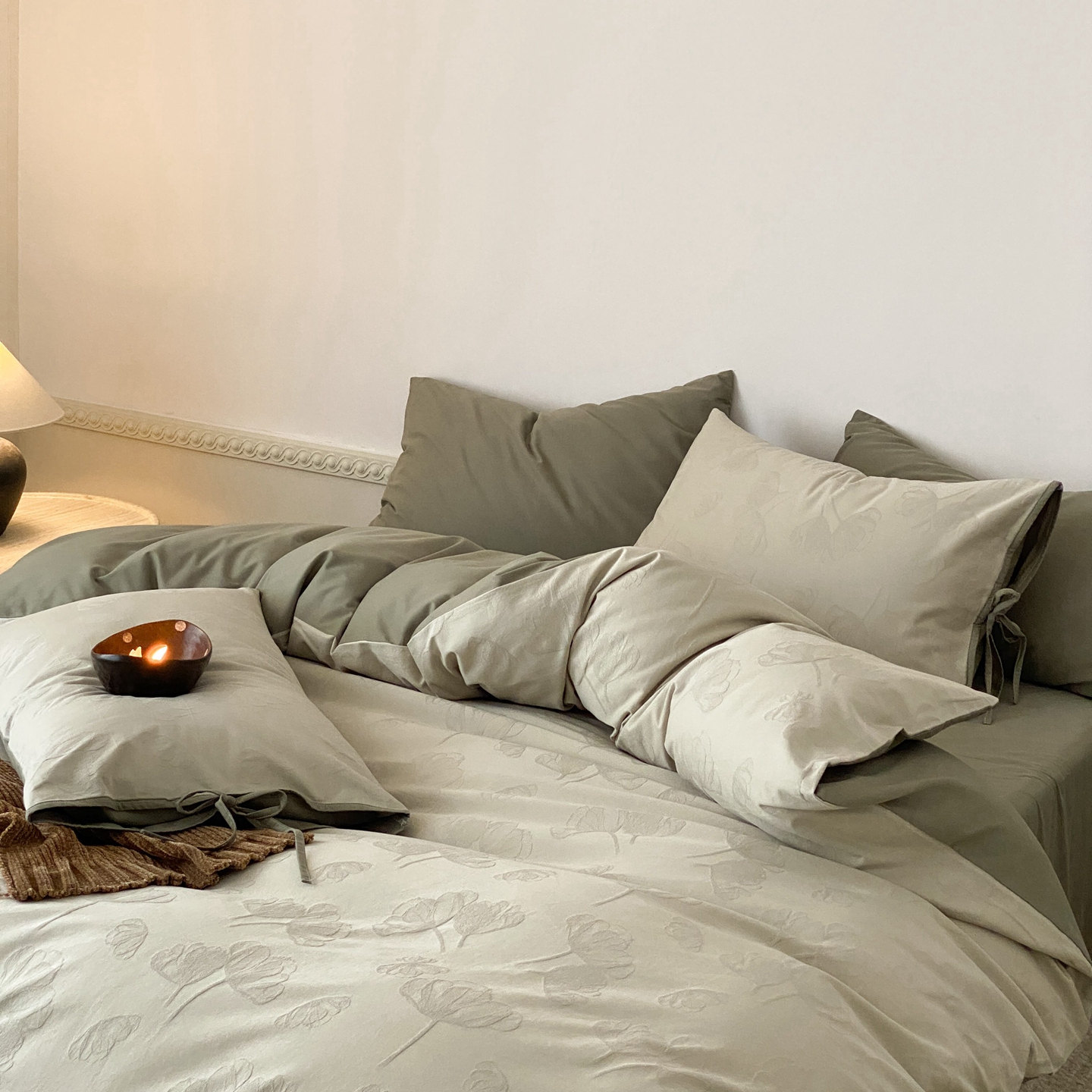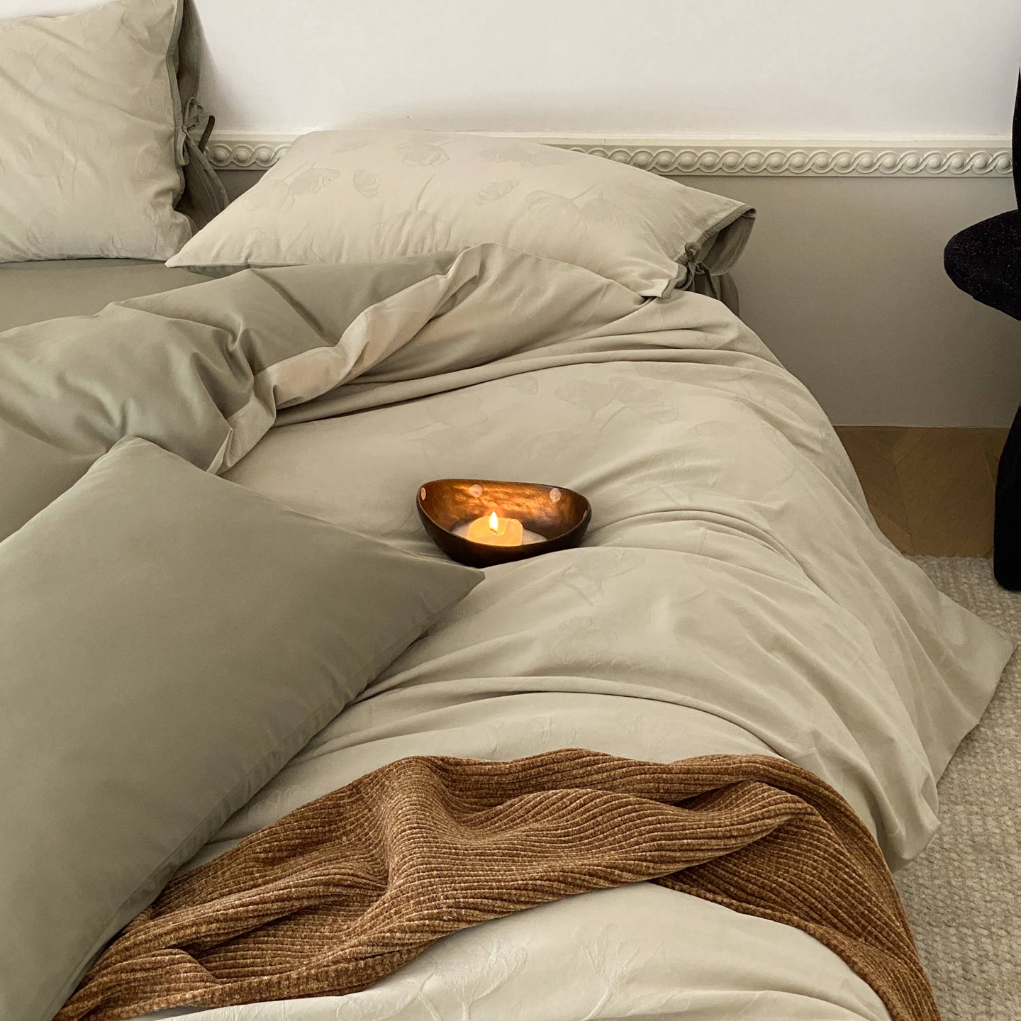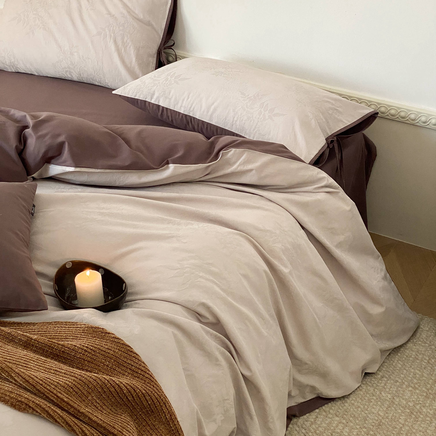 当前位置: 91家纺网 > 商品网购 > 床品套件 > 四件套 > 全棉普通四件套 > 玉宇阁家居 2025秋冬新品60s色织全棉磨毛大提花四件套-绑带款 绑带款-雾霭绛紫