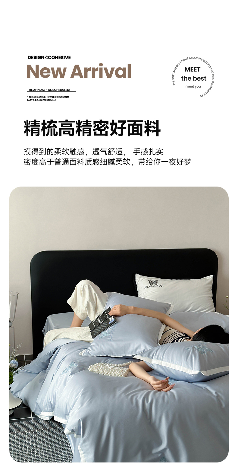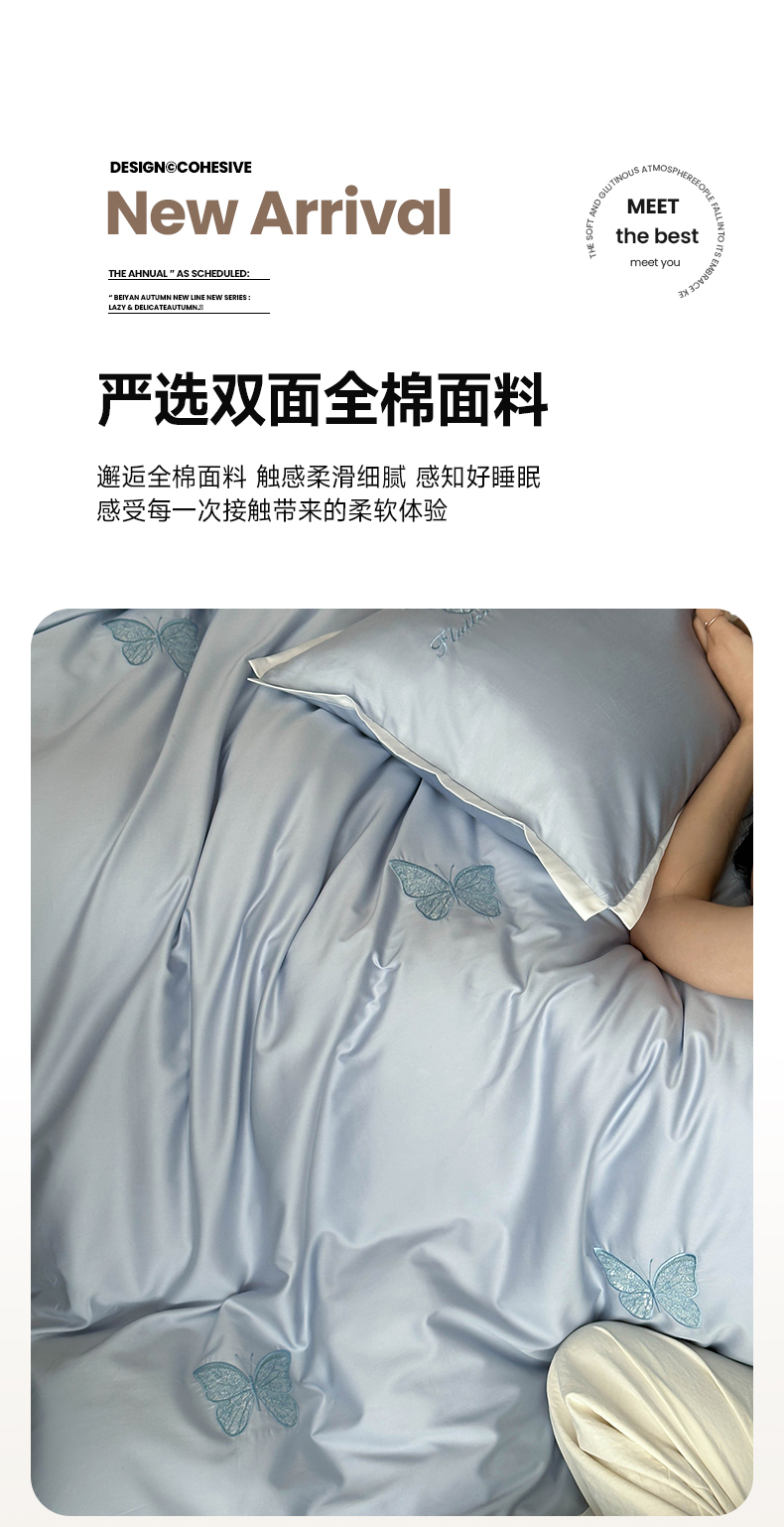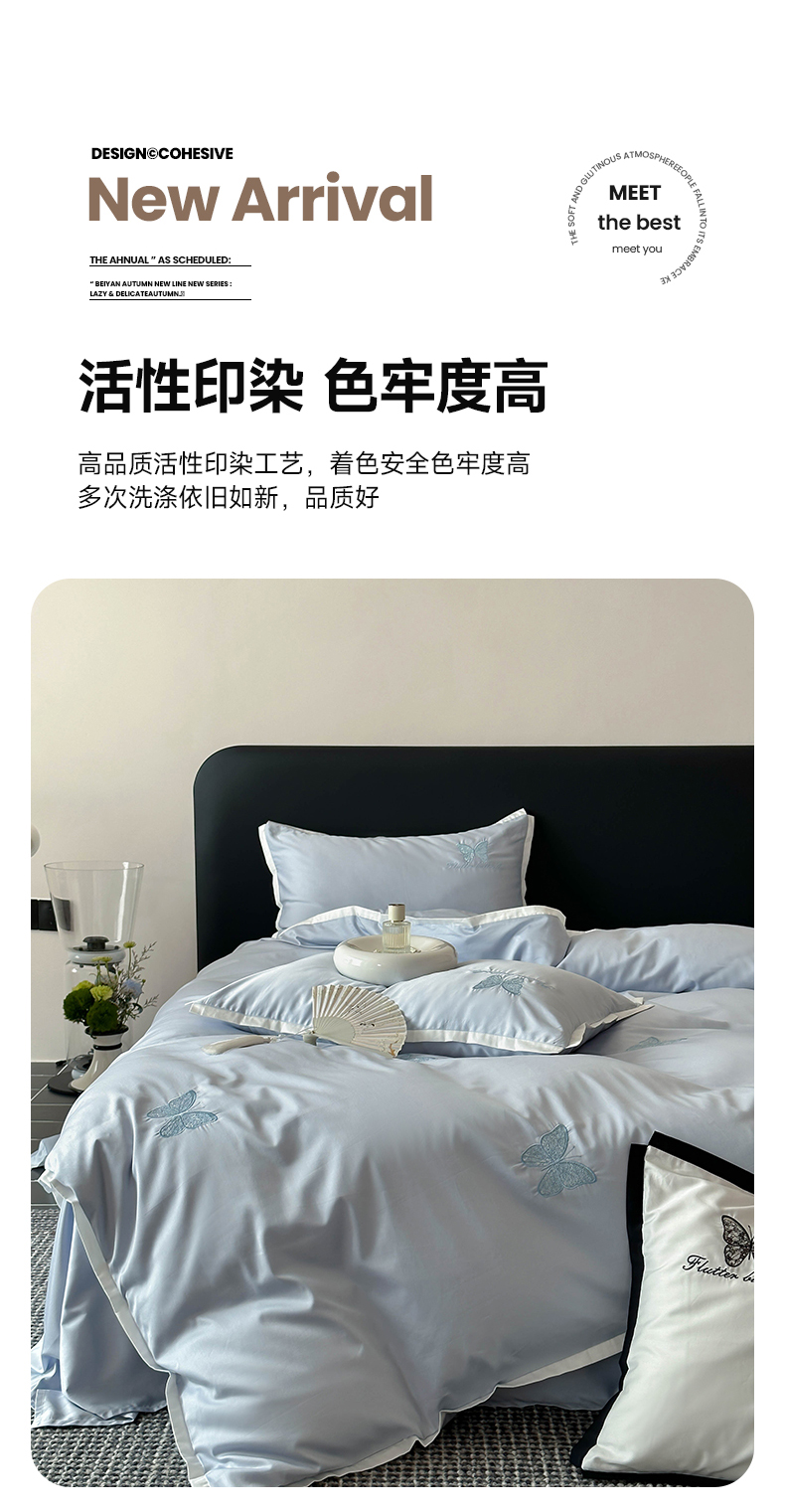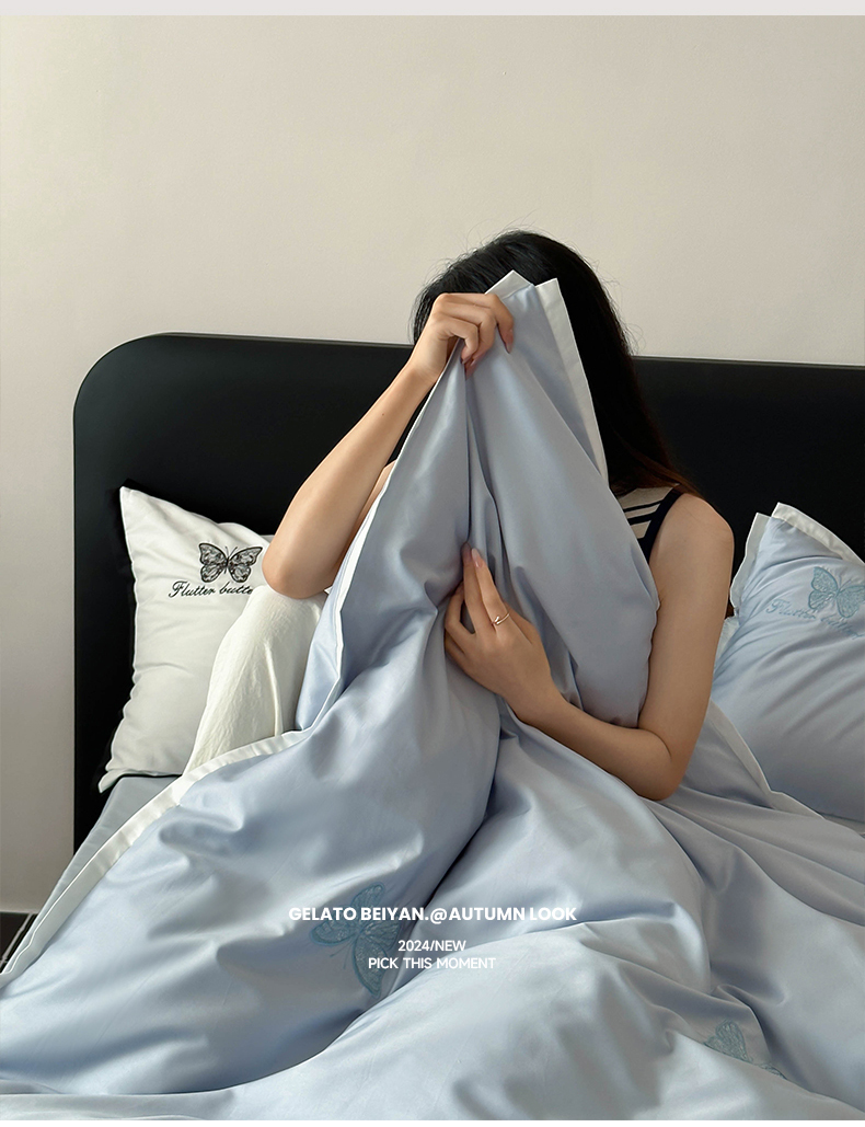 当前位置: 91家纺网 > 商品网购 > 床品套件 > 四件套 > 长绒棉四件套 > 简纯主义 2025秋冬新款A类100支全棉贡缎长绒棉蕾丝绣花四件套-琉璃蝴蝶 琉璃蝴蝶蓝