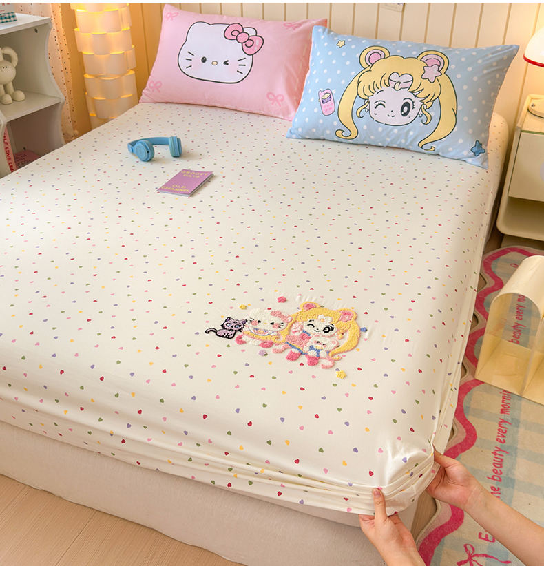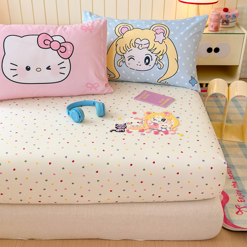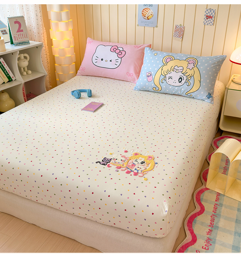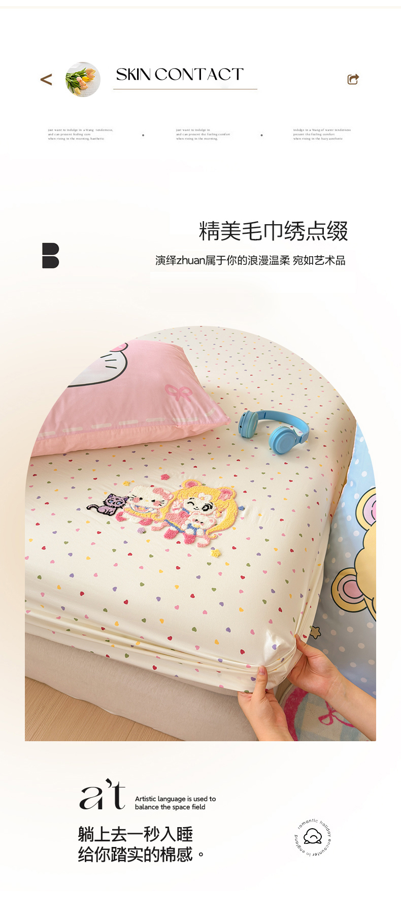 一霖家纺 2025新款高克重云朵棉毛巾绣床笠 小红书热推 床笠款毛巾绣-小新与小白