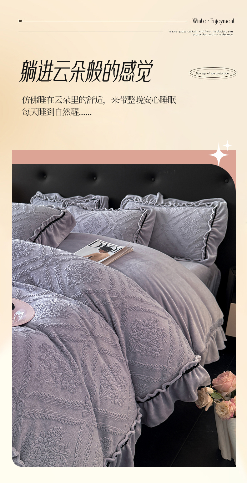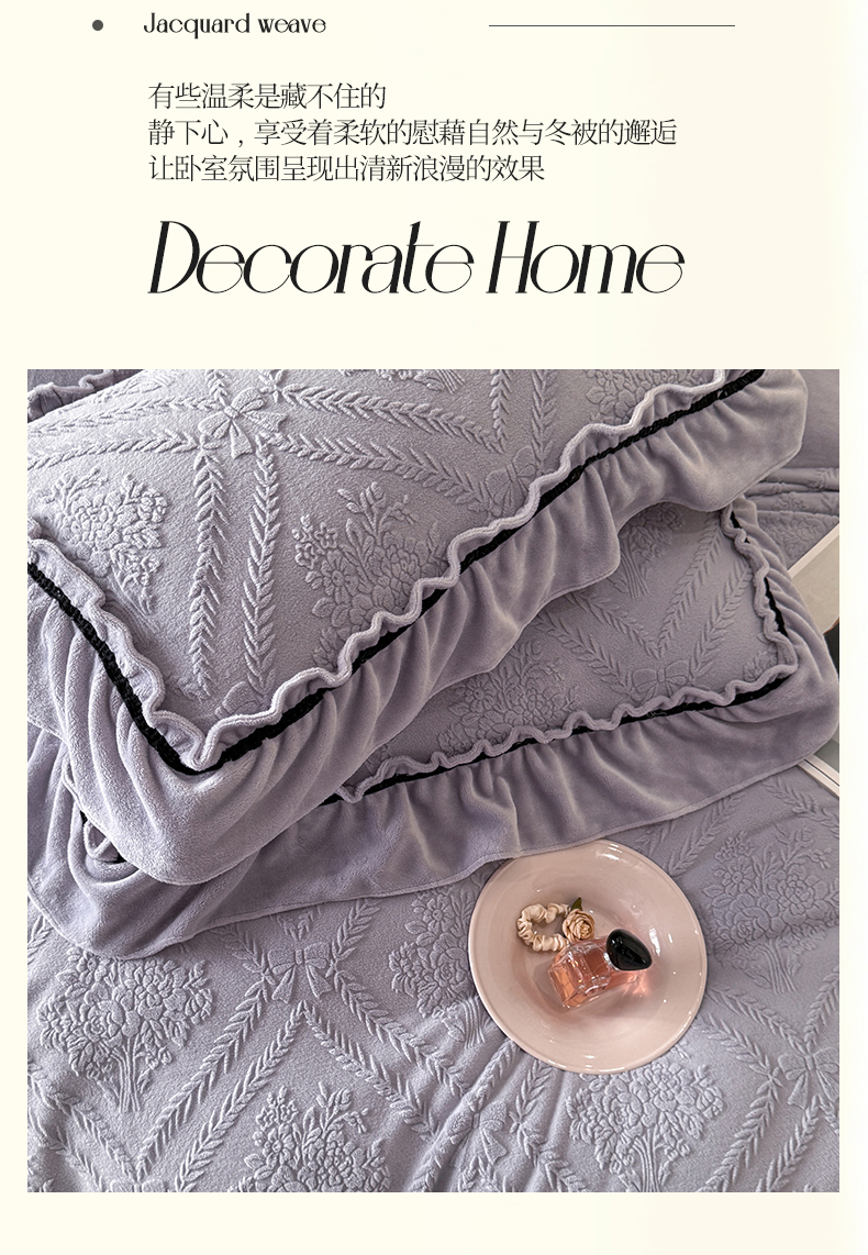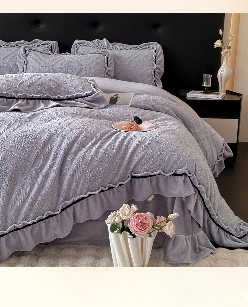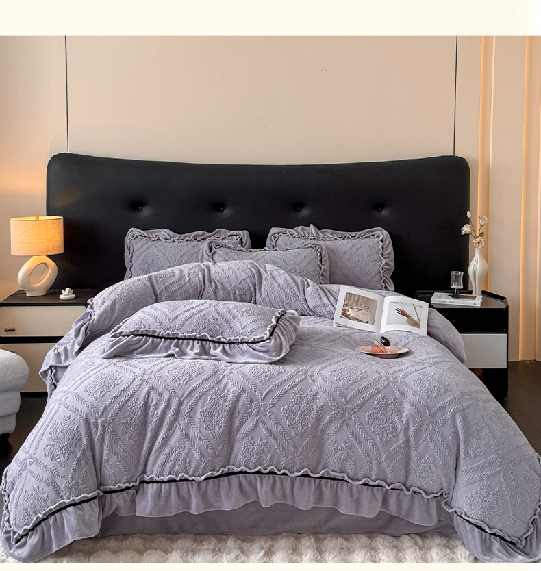 绘萱家居 2025新款新品爆款高密消光织带花边款雕花牛奶绒四件套 眷恋-紫
