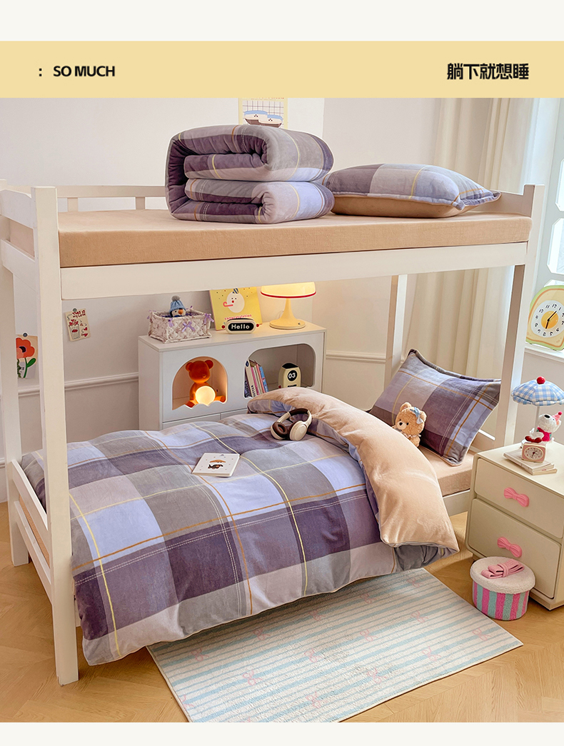 当前位置: 91家纺网 > 商品网购 > 床品套件 > 三件套 > 锦润家纺 2025新款亲肤舒适牛奶绒三件套学生三件套上下铺三件套宿舍三件套 英伦风尚