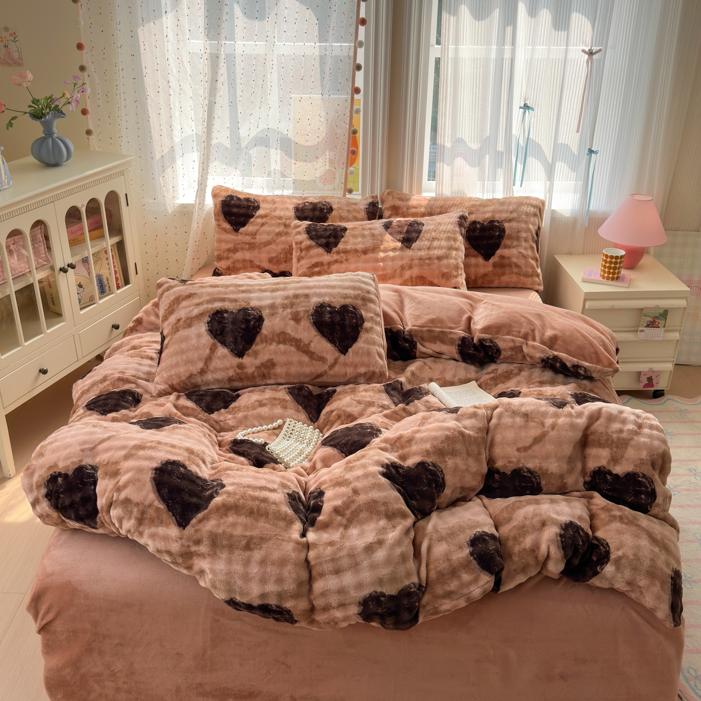 德比尔斯 2025新款泡泡牛奶绒四件套 爱心布兰