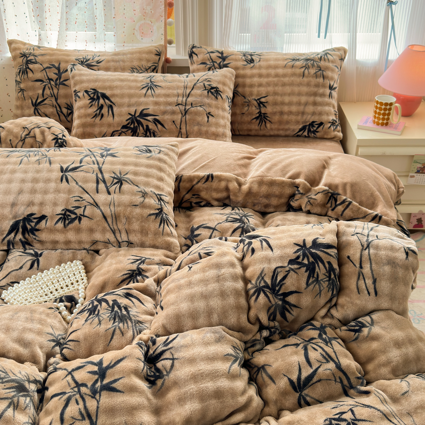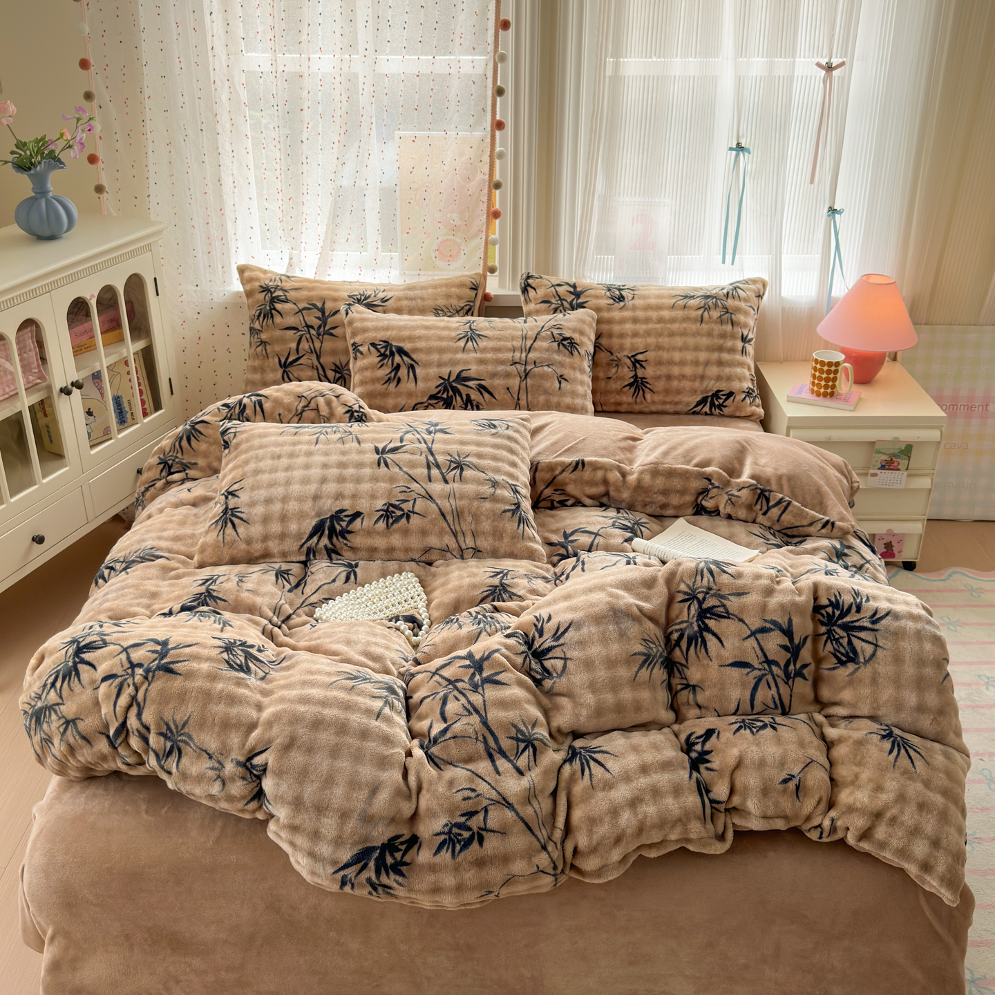 (总)德比尔斯 2025新款韩版白边黑边赫本风牛奶绒床盖四件套,爱心小熊,安妮粉,蝶恋花粉,法风小香,赫本-蝴蝶结粉,赫本-蝴蝶结咖,盛夏丛林,晕染花曳