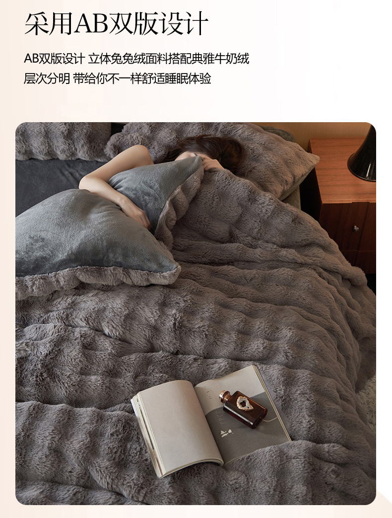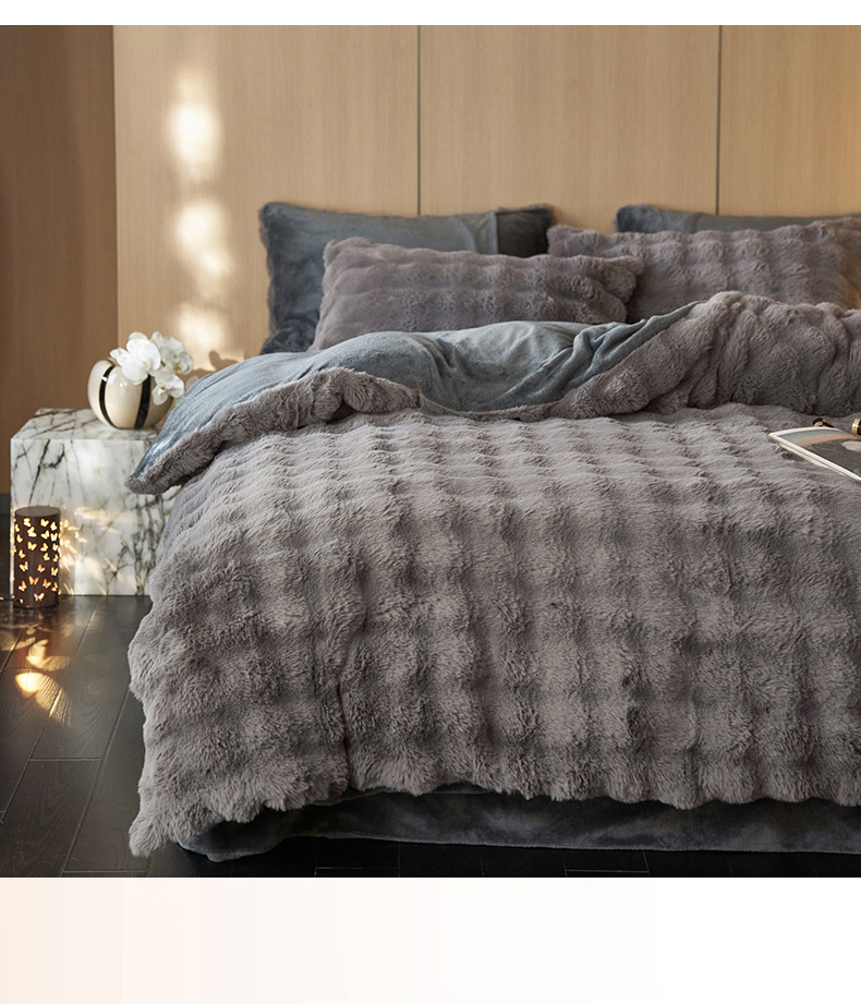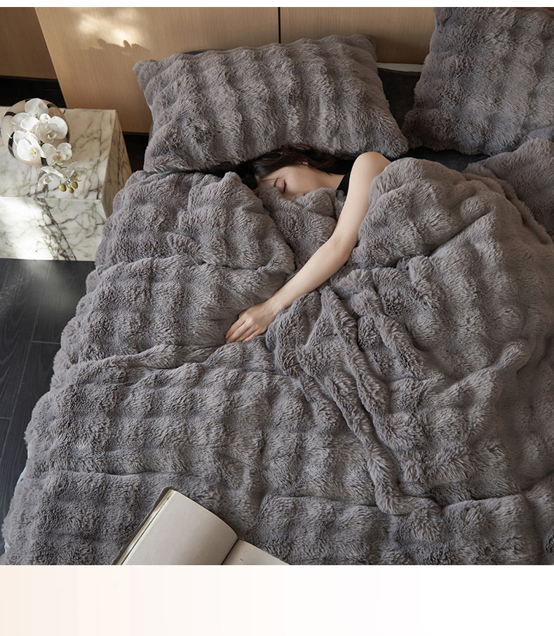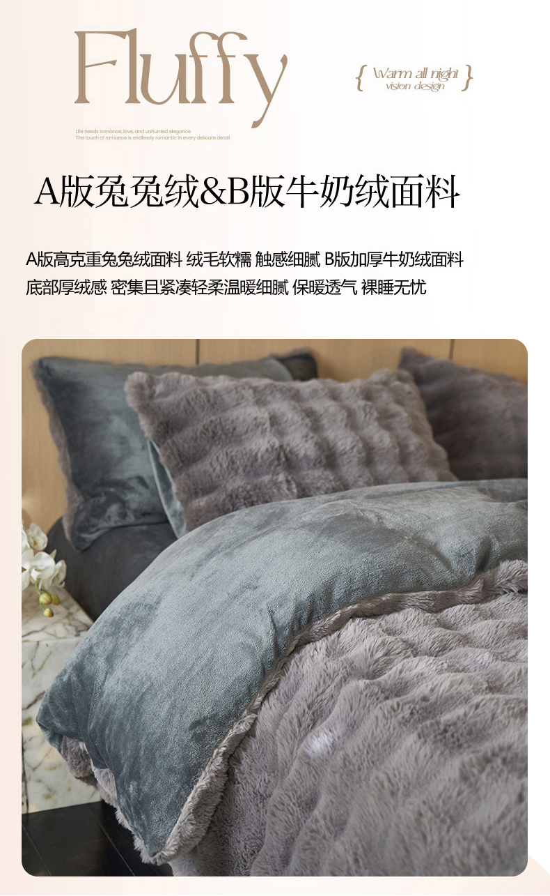 商品名称:眠博士 2025新款兔兔牛奶绒加厚保暖四件套 兔兔绒-泡泡灰