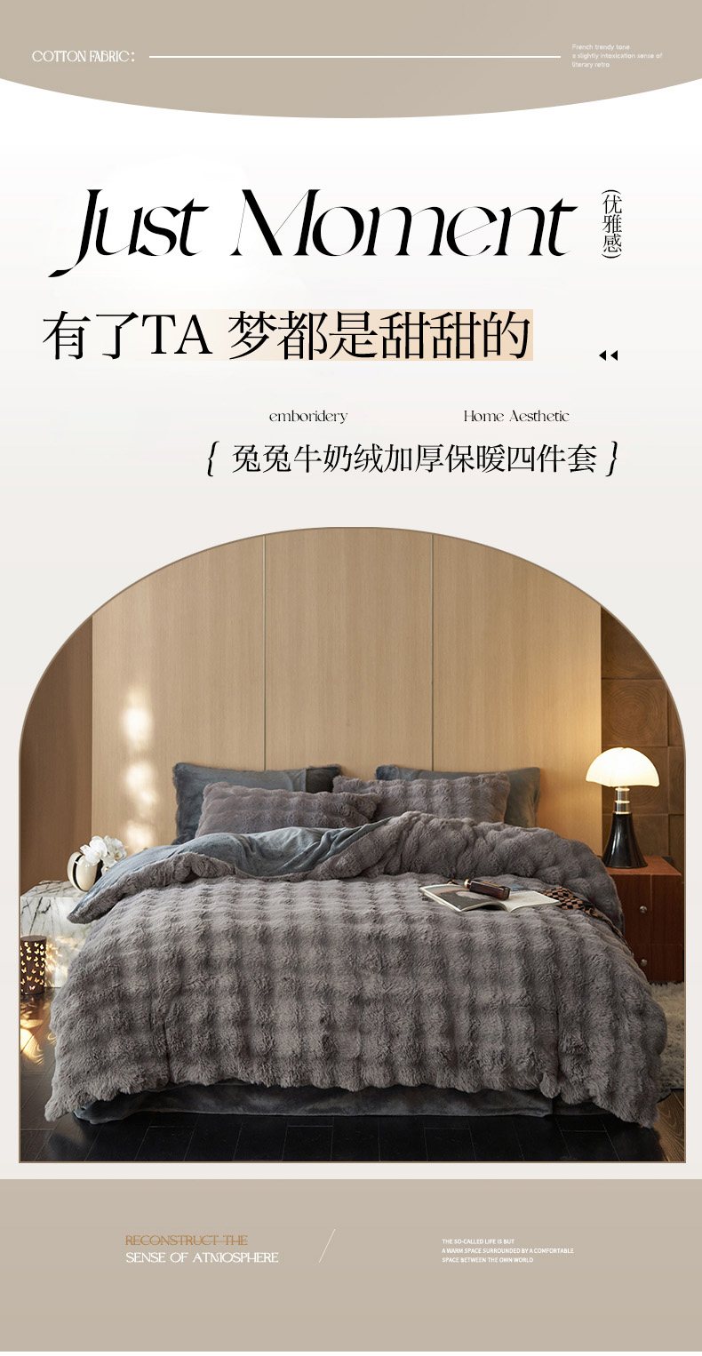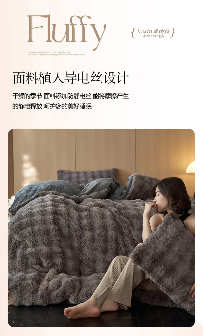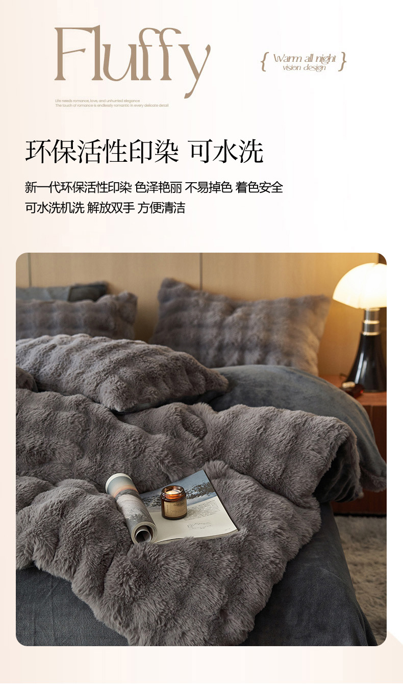 商品名称:眠博士 2025新款兔兔牛奶绒加厚保暖四件套 兔兔绒-泡泡灰