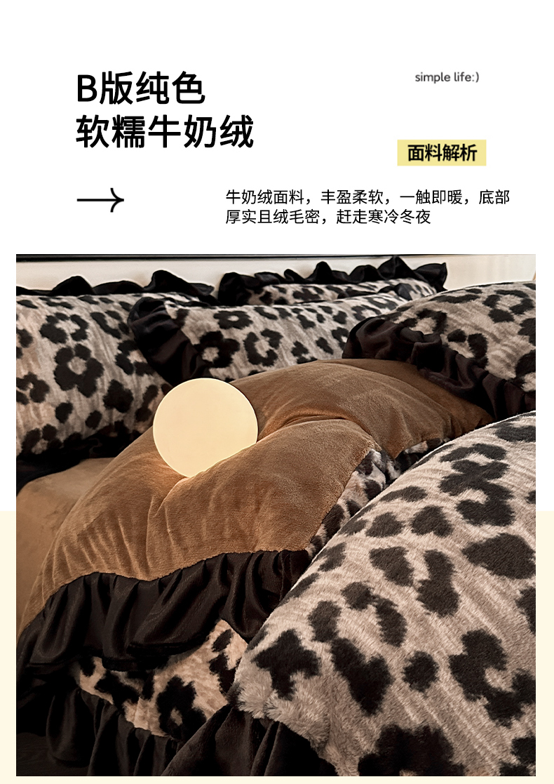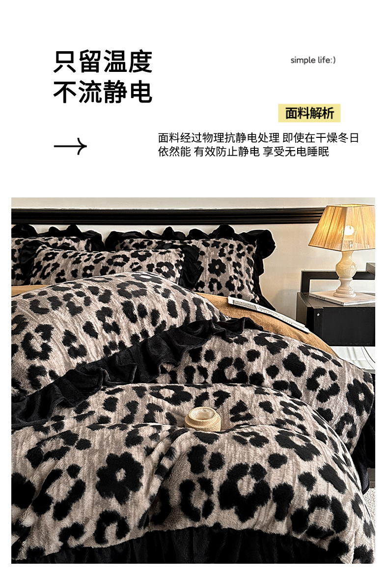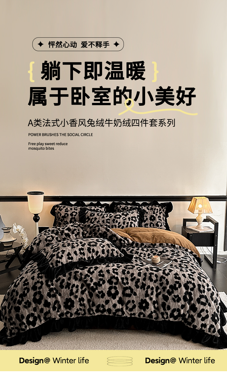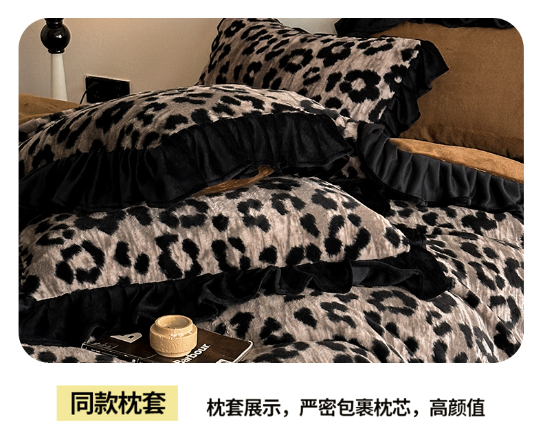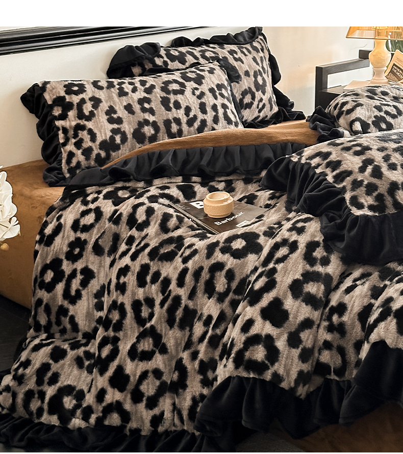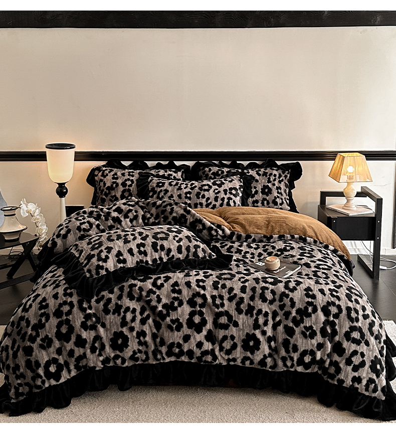 当前位置: 91家纺网 > 商品网购 > 床品套件 > 四件套 > 牛奶绒四件套 > 子曰 2025新款A类法式小香风黑边款兔绒牛奶绒四件套 黑边款-豹纹灰