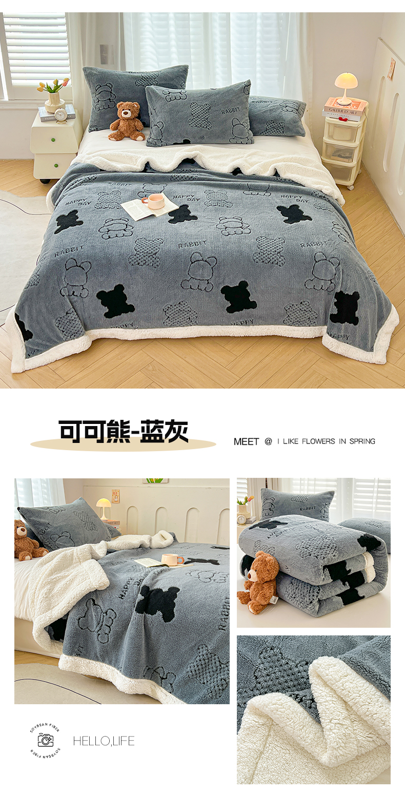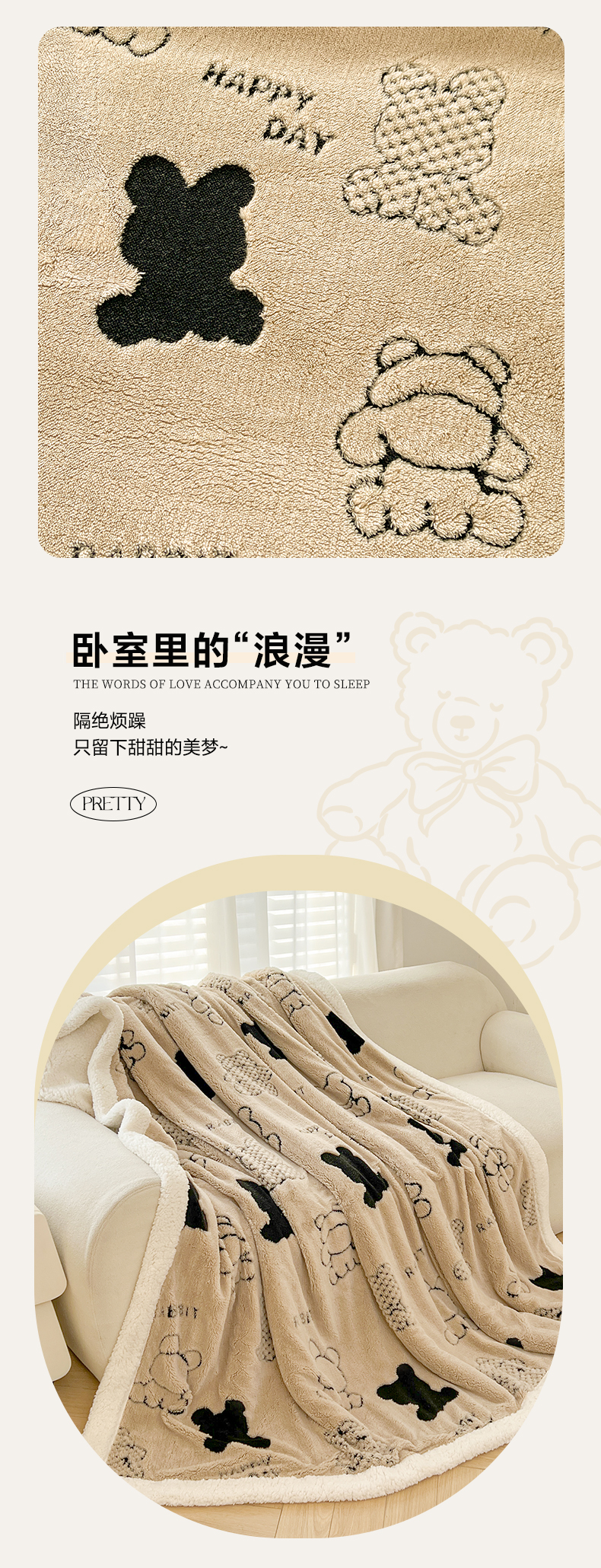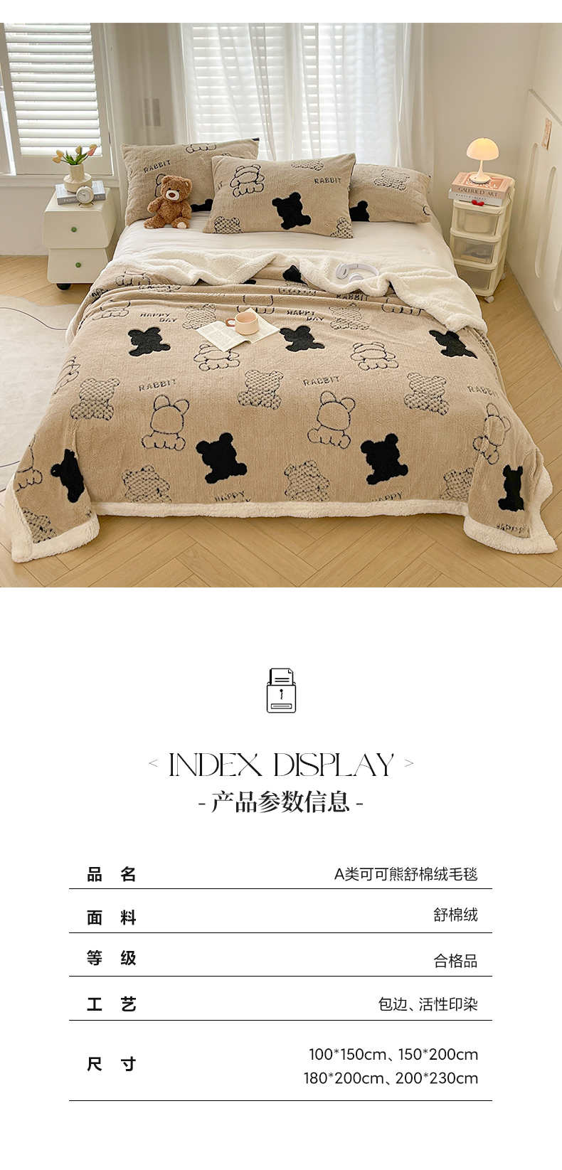 商品名称:欧邦 2025新款A类舒棉绒毛毯盖毯毯子-可可熊 可可熊-咖色