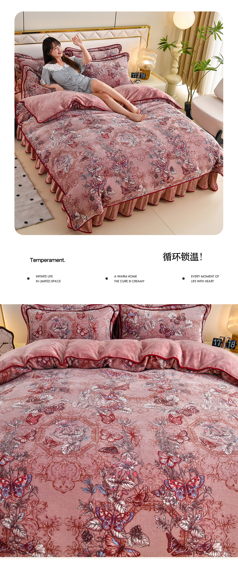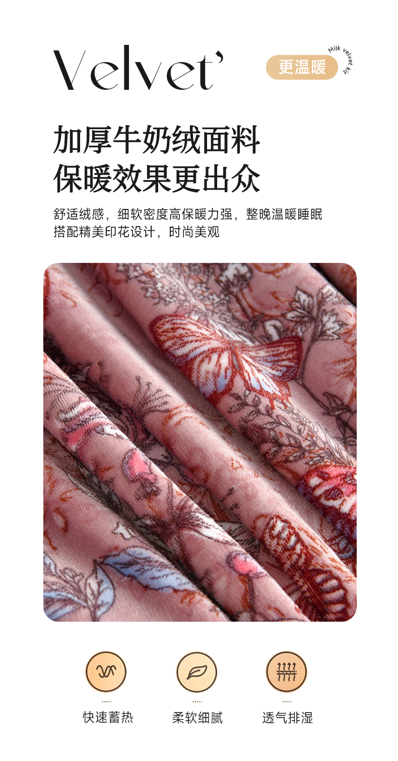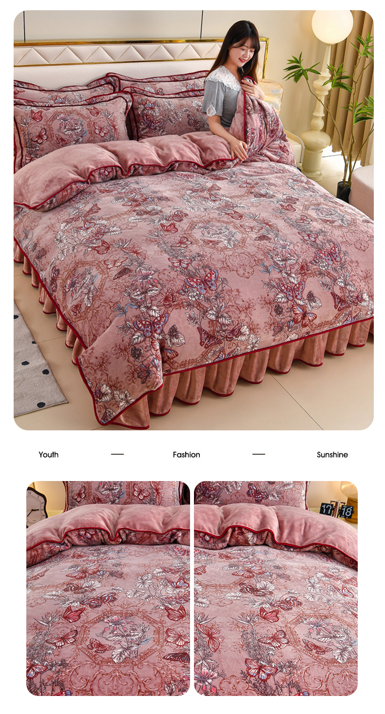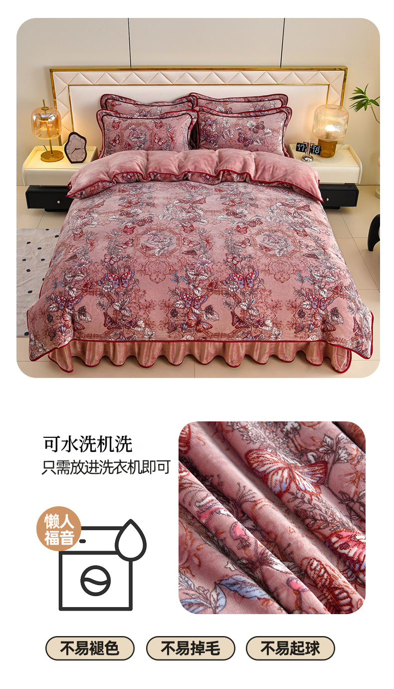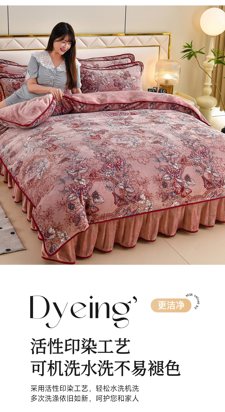 商品名称:赫本 2025新品8斤爆品牛奶绒四件套床裙款金雕绒法莱绒四套件 蝶恋花