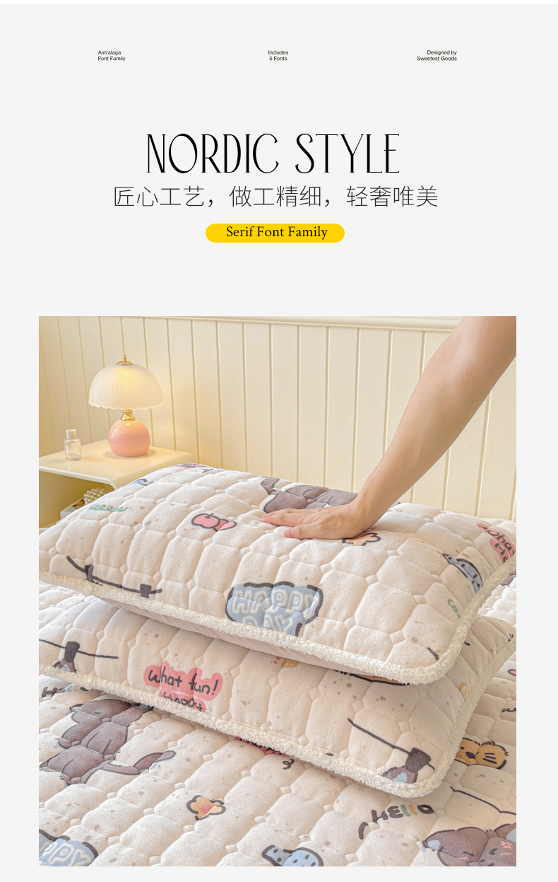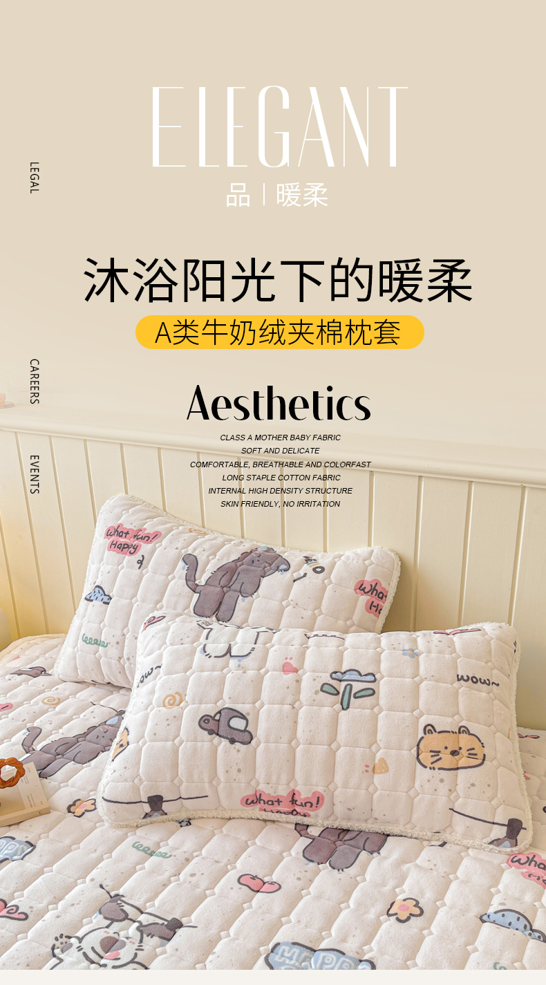 商品名称:LIFE.丽芙 2025秋冬新款A类牛奶绒加厚保暖夹棉枕套-包边款 萌喵酷狗