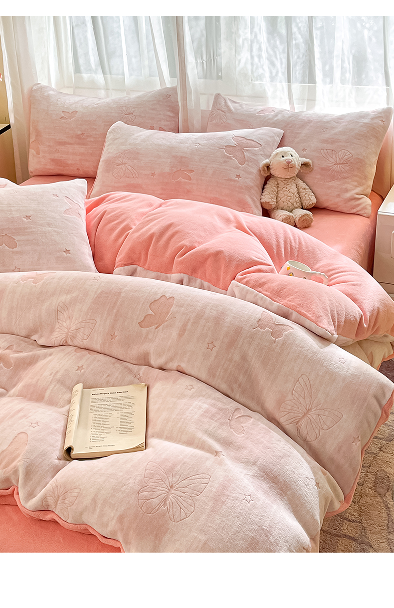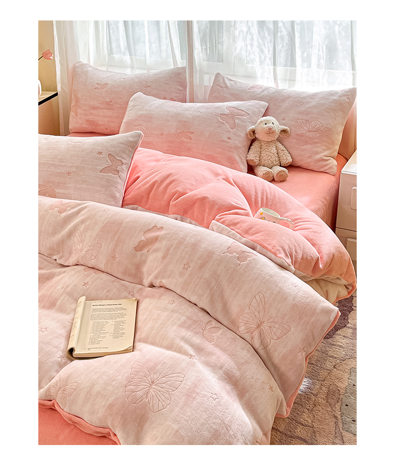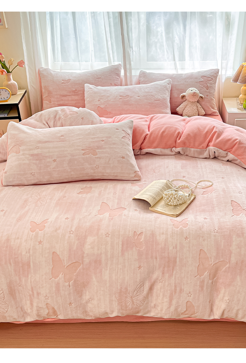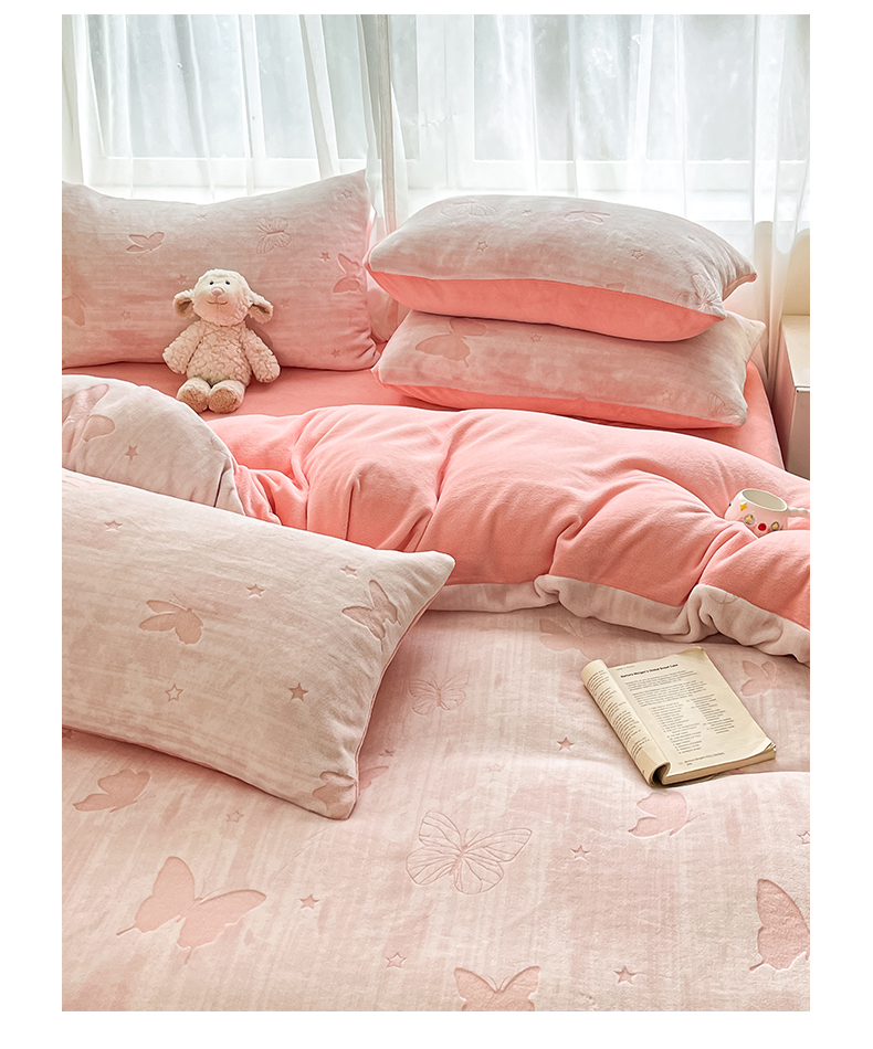 当前位置: 91家纺网 > 商品网购 > 床品套件 > 四件套 > 牛奶绒四件套 > 雅居纺家纺 2025新款雕花牛奶绒四件套-蝴蝶系列 星蝶-粉
