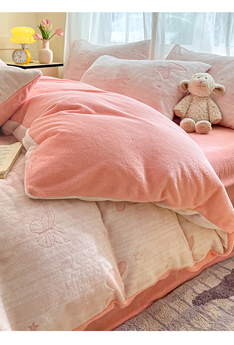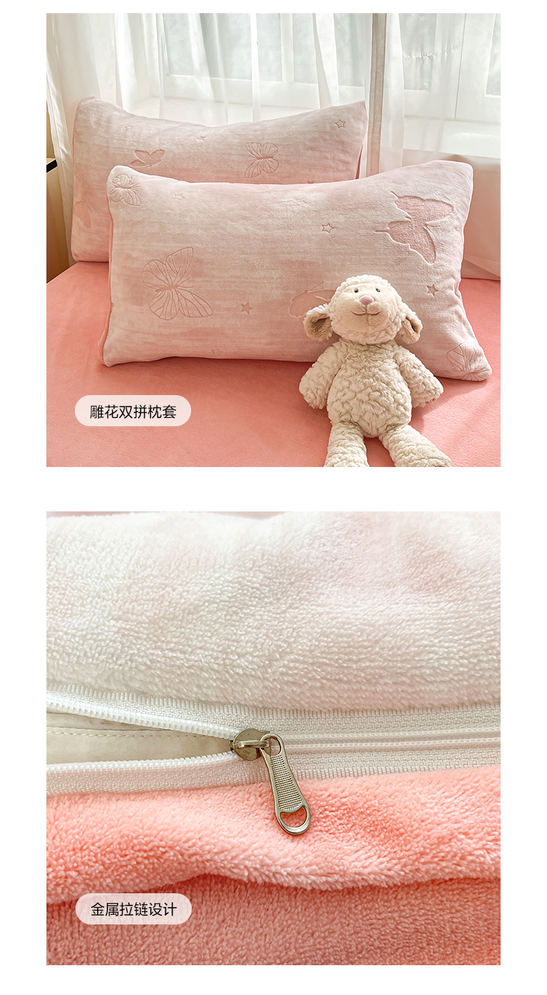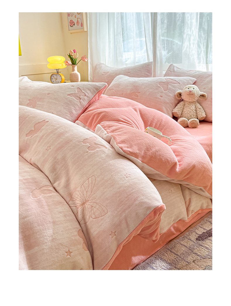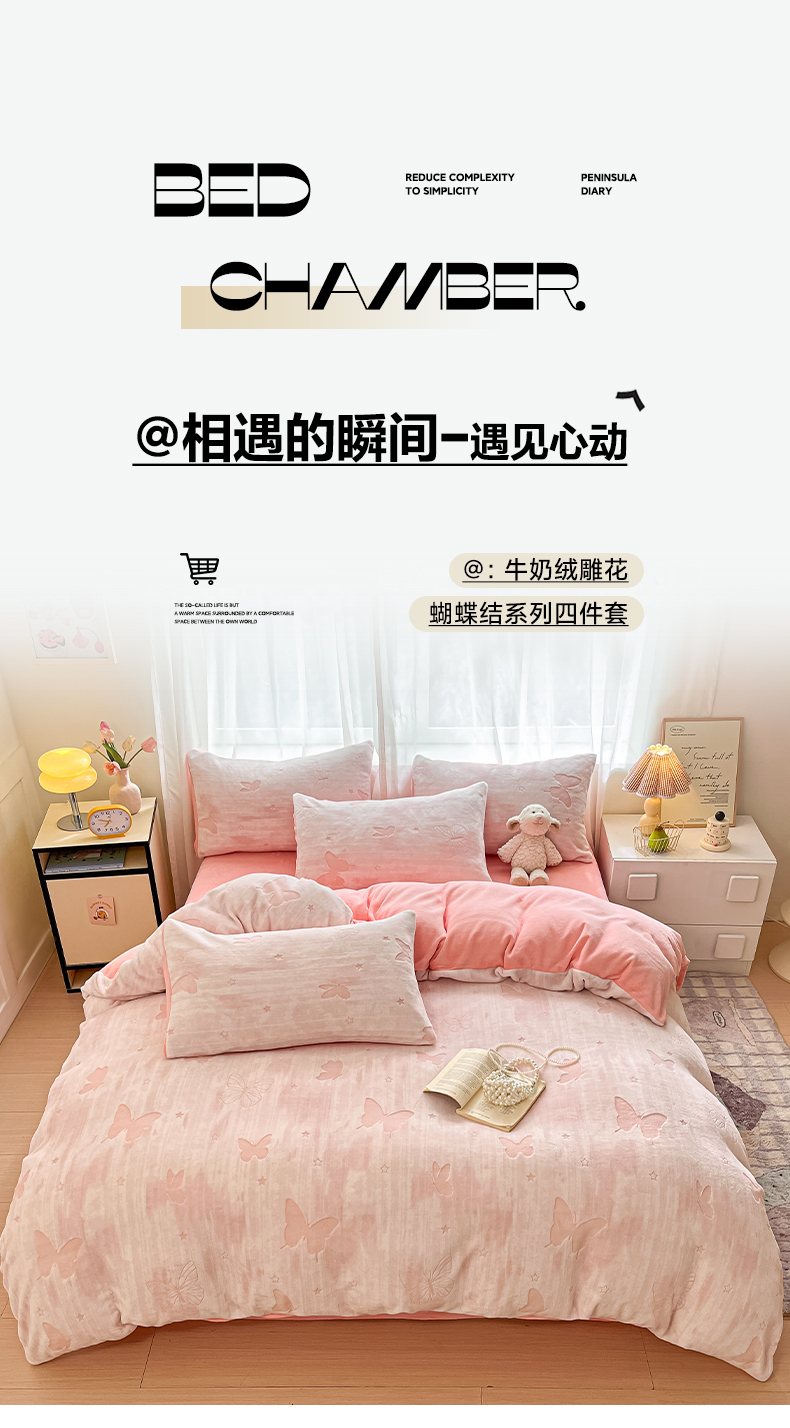 当前位置: 91家纺网 > 商品网购 > 床品套件 > 四件套 > 牛奶绒四件套 > 雅居纺家纺 2025新款雕花牛奶绒四件套-蝴蝶系列 星蝶-粉