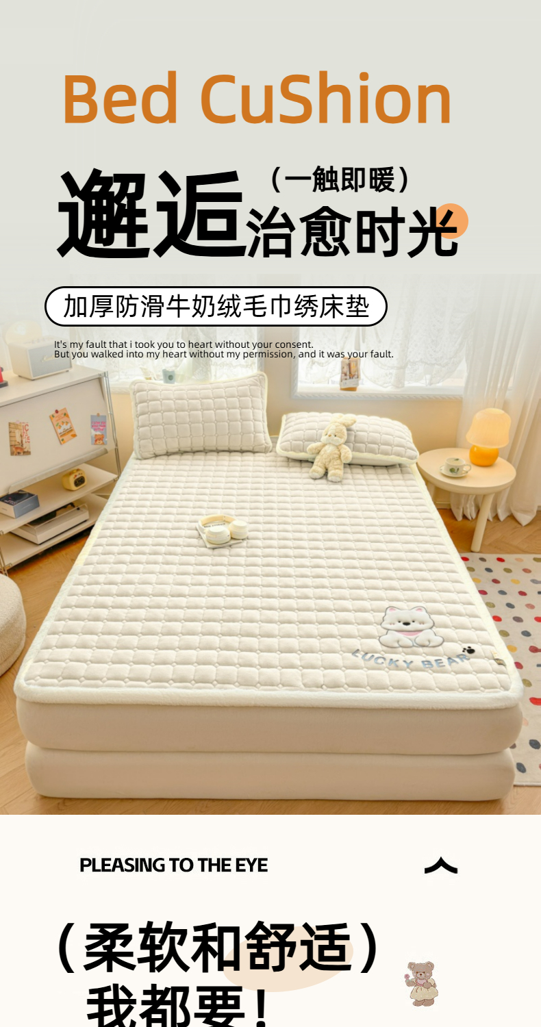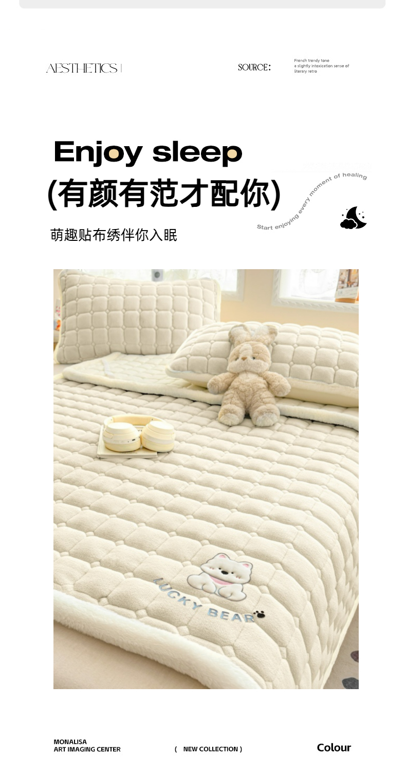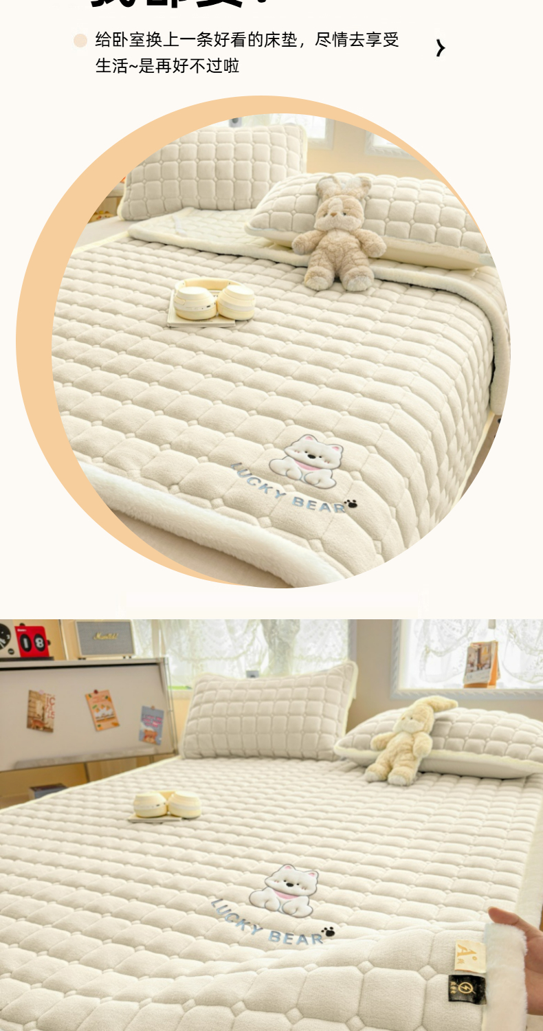当前位置: 91家纺网 > 商品网购 > 床垫/床褥 > 羊羔绒床垫 > 爱屋及屋 2025新款牛奶绒小狗毛巾绣床垫-大床 luck狗-米白