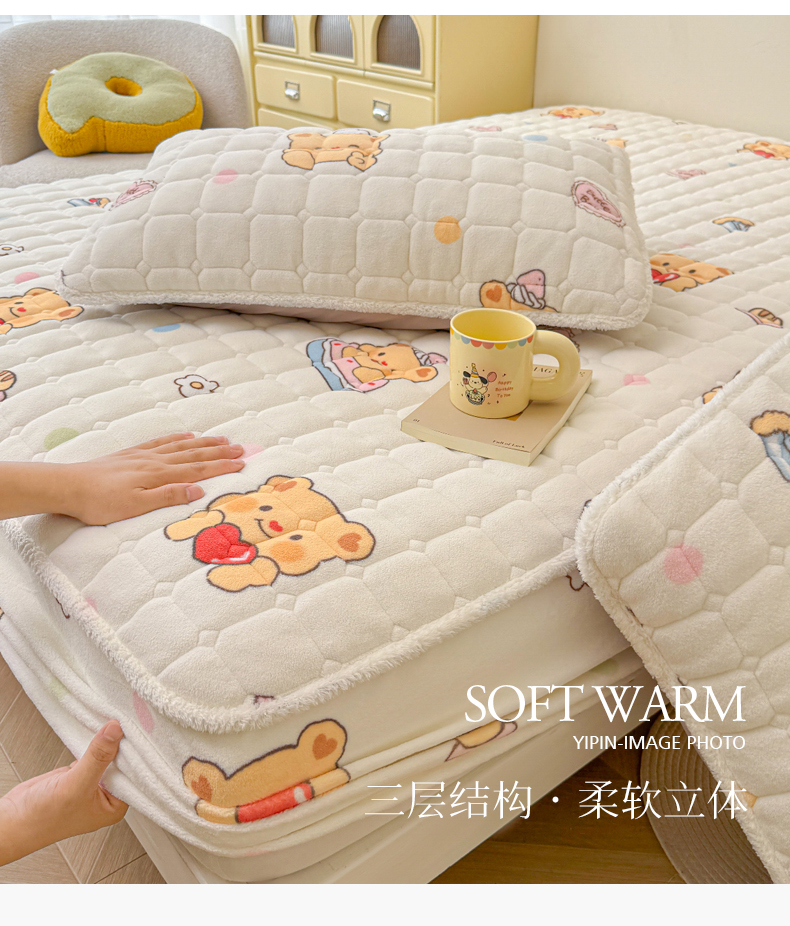(总)LIFE.丽芙 2025秋冬新款牛奶绒加厚夹棉单床笠印花款床垫子保护套秋冬保暖床罩子三件套