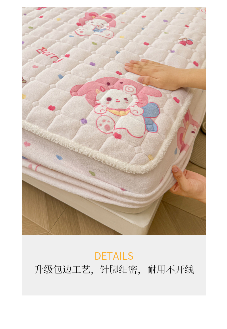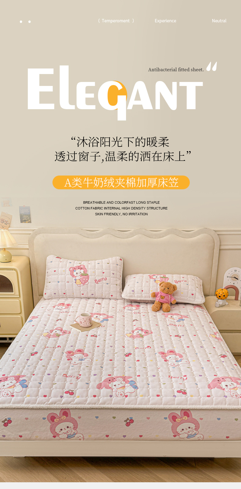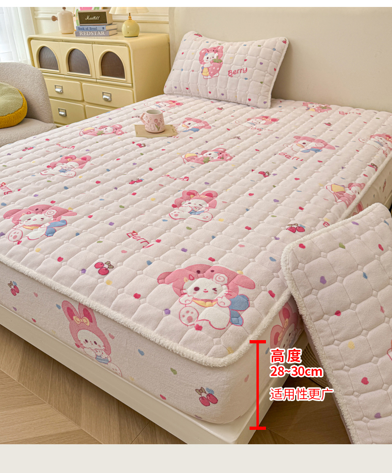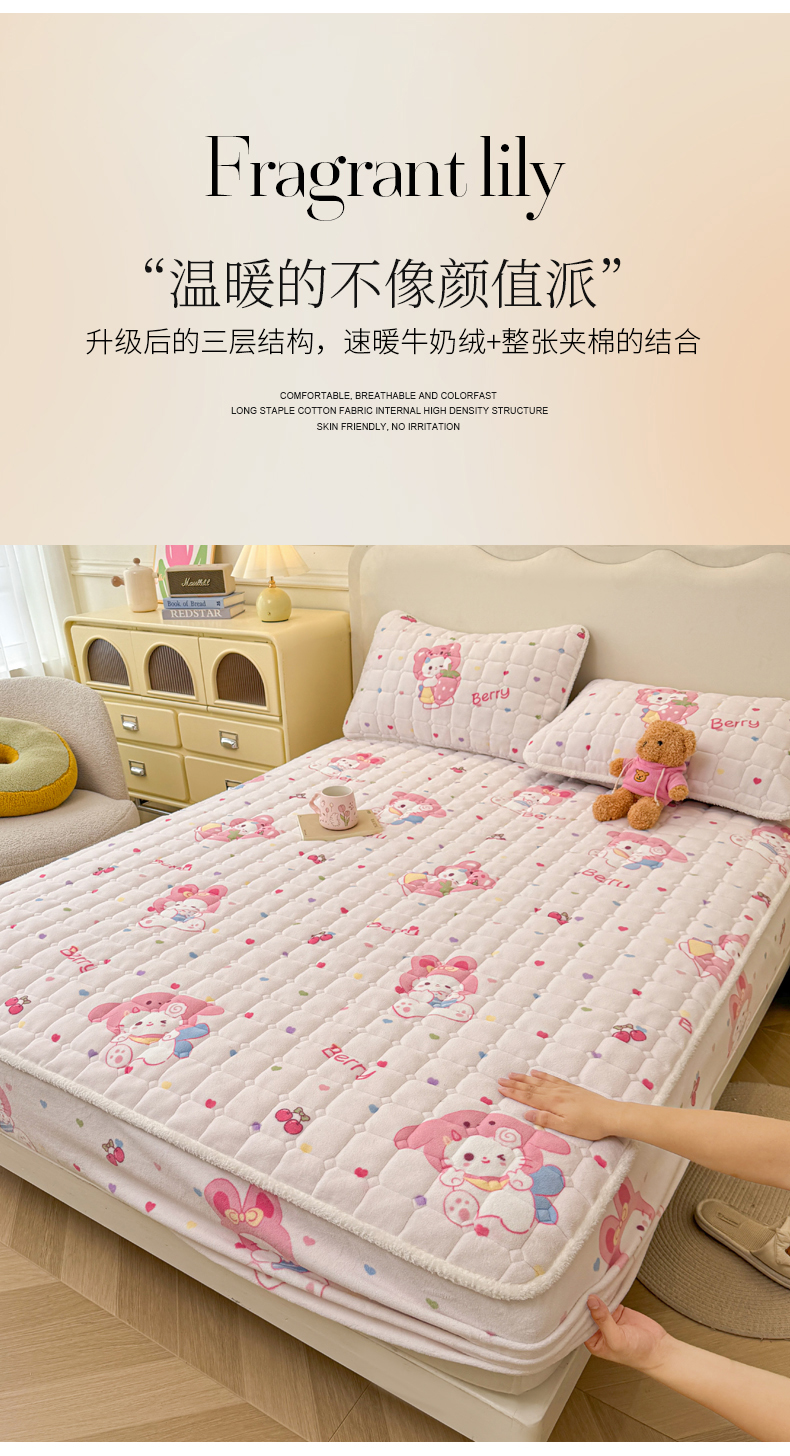 • 91家纺网 家纺一手货源 找家纺 LIFE.丽芙 2025秋冬新款牛奶绒加厚夹棉单床笠印花款床垫子保护套秋冬保暖床罩子三件套 乖乖喵