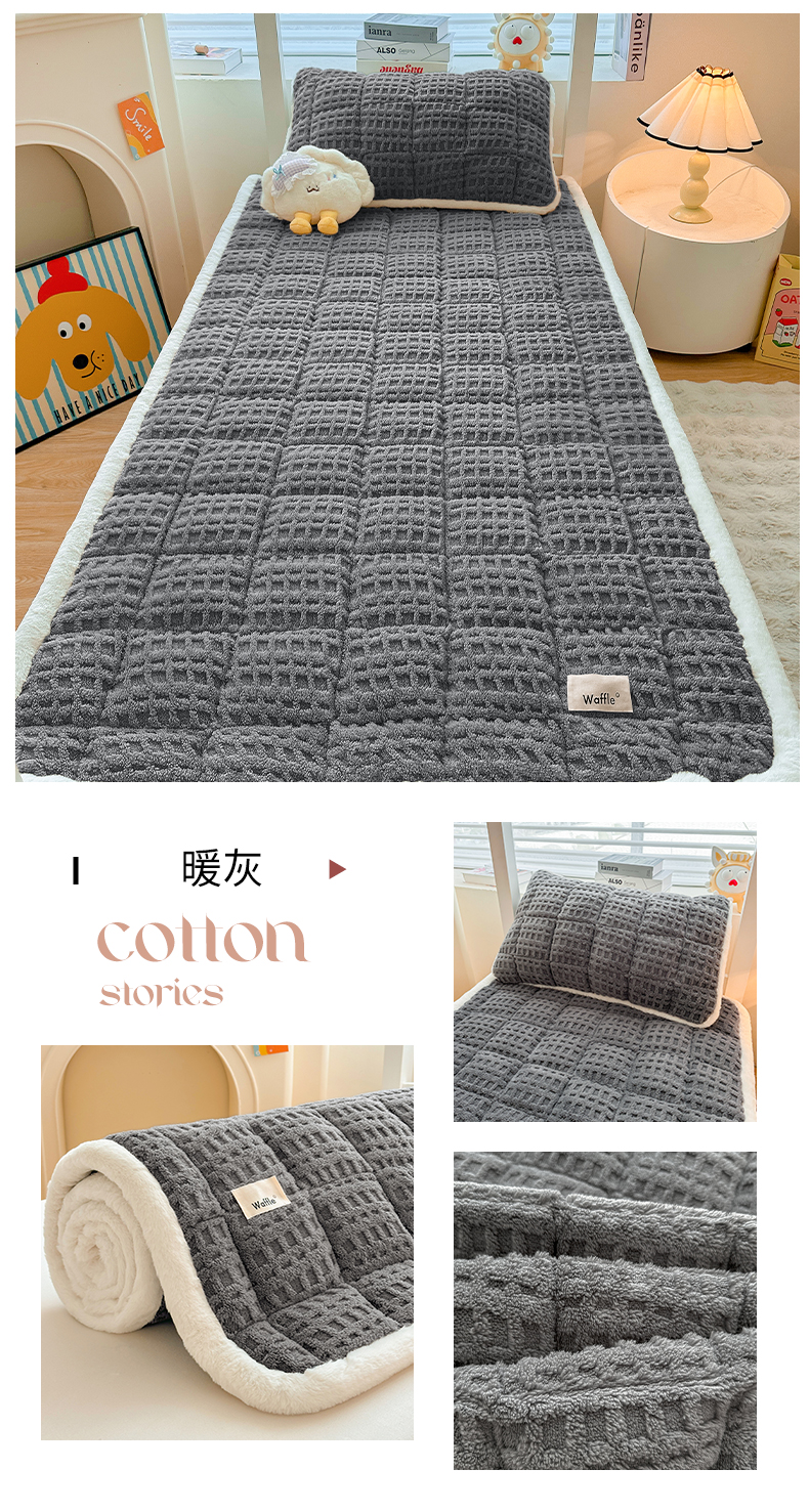 当前位置: 91家纺网 > 商品网购 > 床垫/床褥 > 羊羔绒床垫 > 喜居 2025新款A类华夫格舒棉绒床垫学生床垫床褥子 暖灰