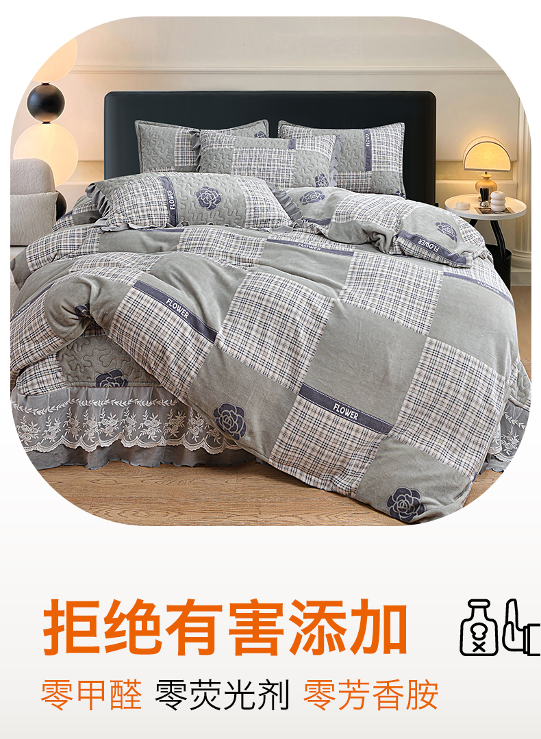 当前位置: 91家纺网 > 商品网购 > 床品套件 > 四件套 > 牛奶绒四件套 > 梦柏家纺 2025新款牛奶绒夹棉床盖四件套 恋爱山茶
