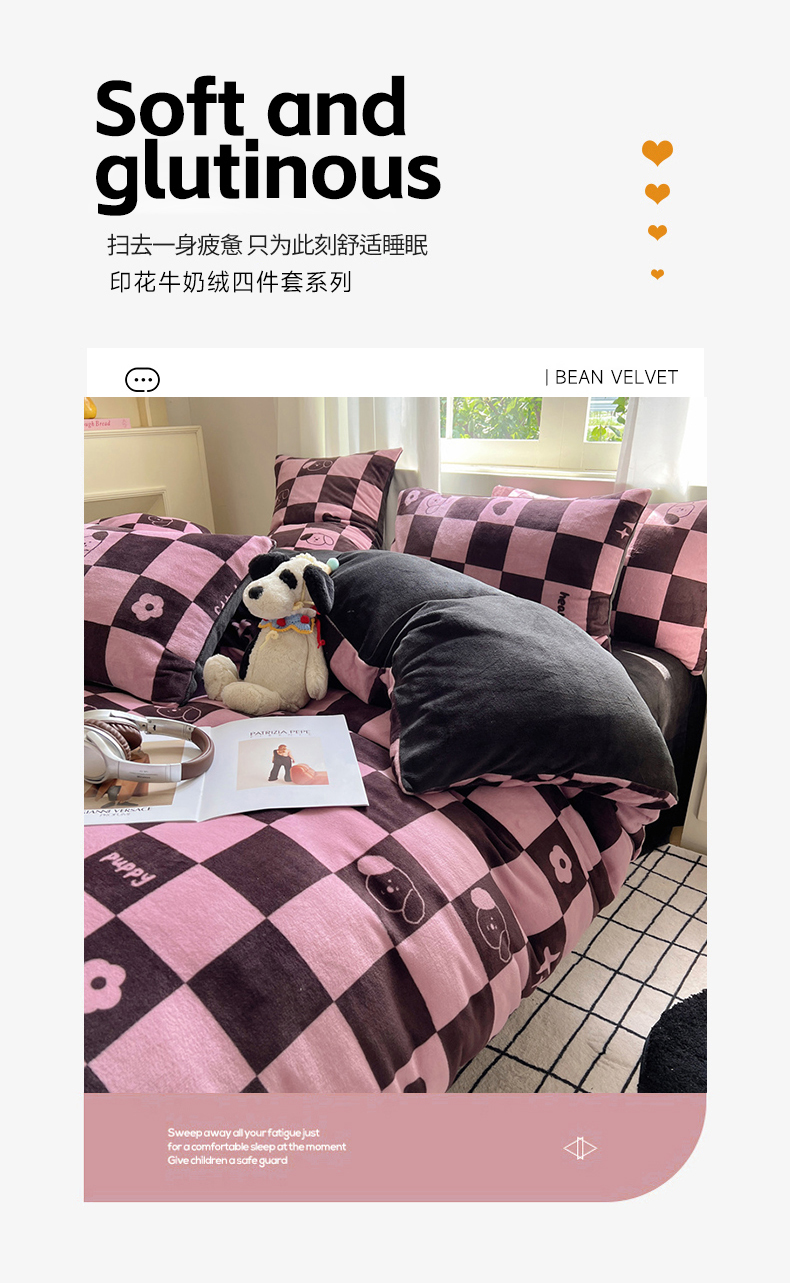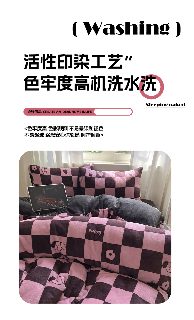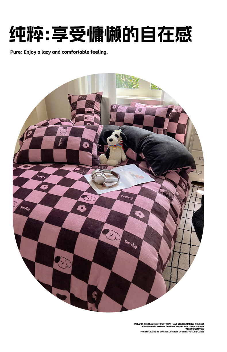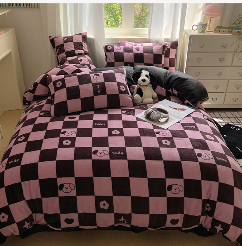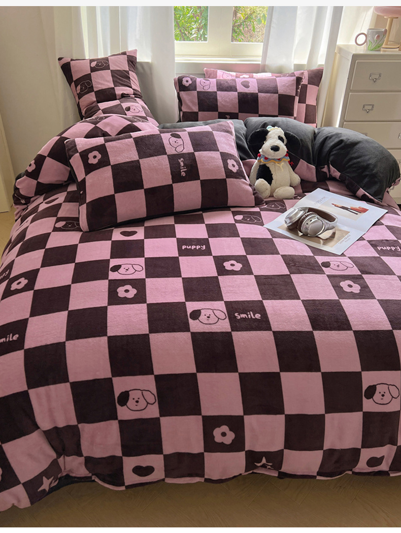 当前位置: 91家纺网 > 商品网购 > 床品套件 > 四件套 > 牛奶绒四件套 > 红嘴企鹅 2025新款精致印花牛奶绒四件套 棋盘格小狗