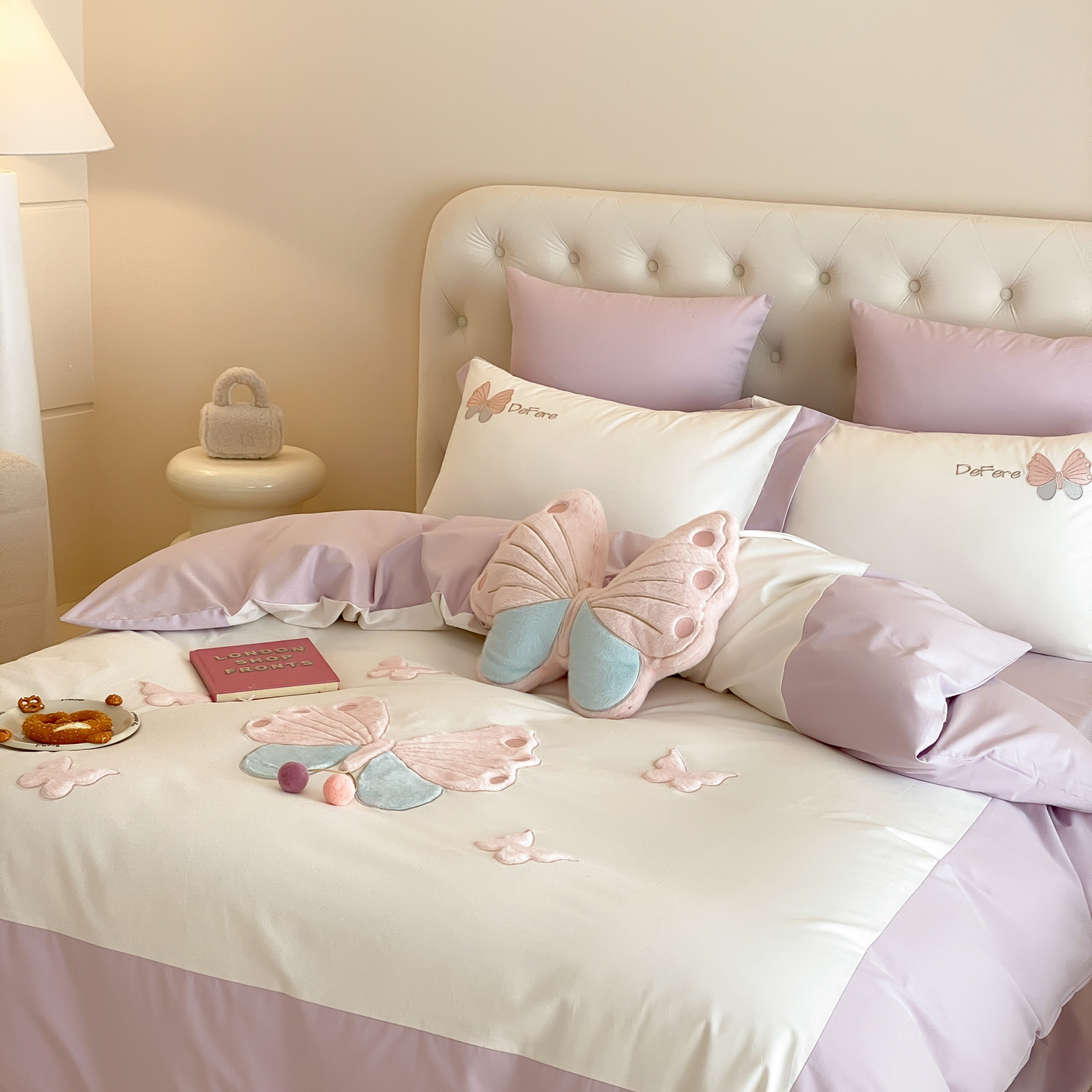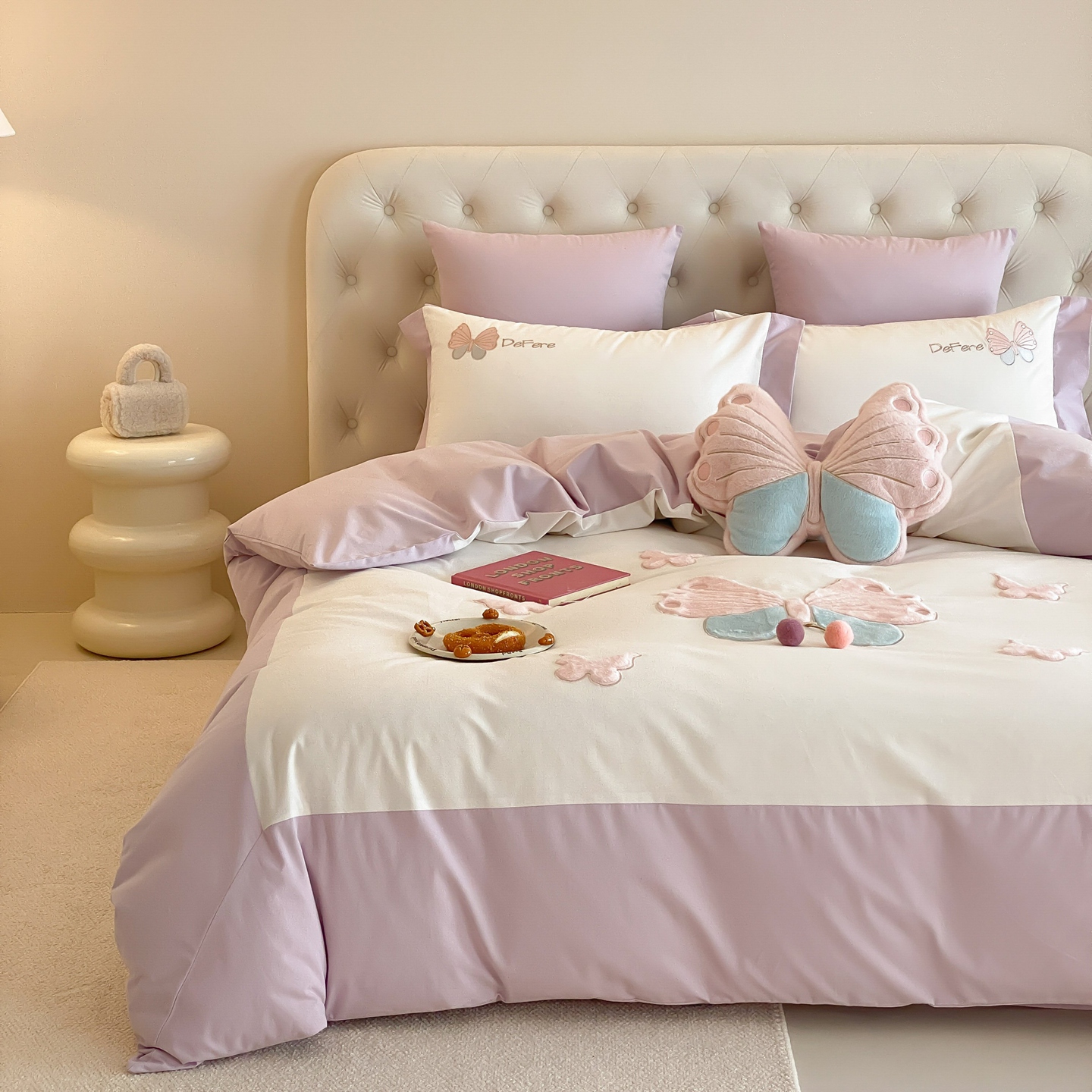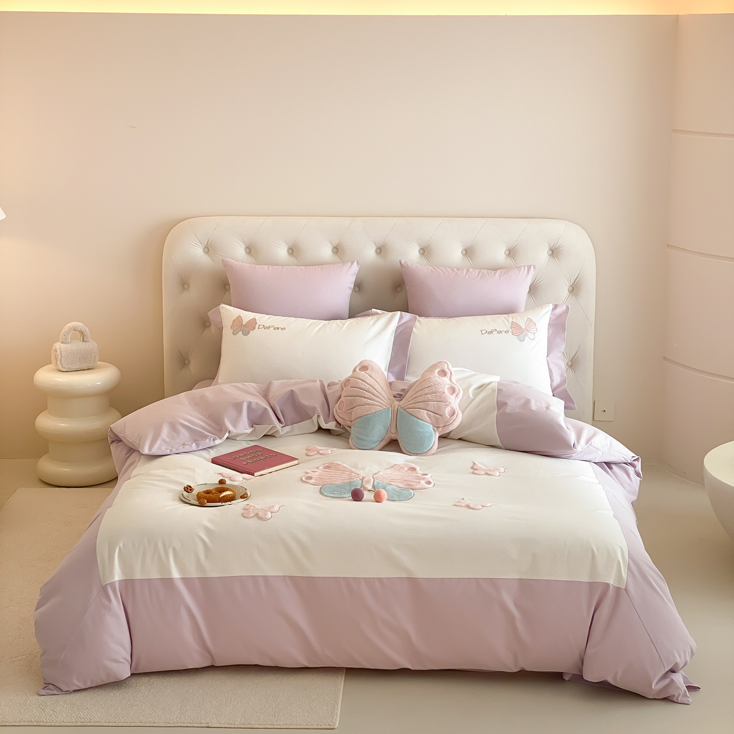 曼布缇 2025新款加厚全棉纯棉磨毛绣花四件套-艾薇 艾薇-紫