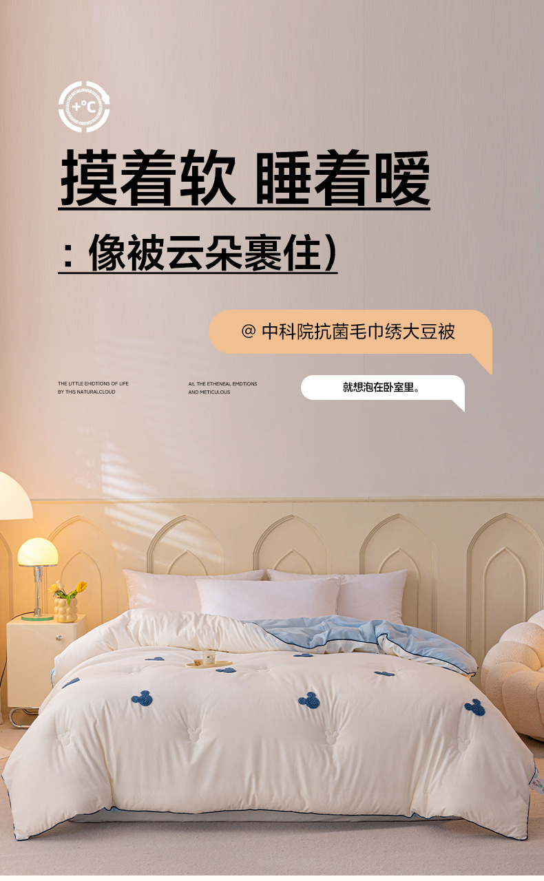 一加一 2025新款中科院抗菌毛巾刺绣大豆被被子被芯-米奇 米奇-白+蓝