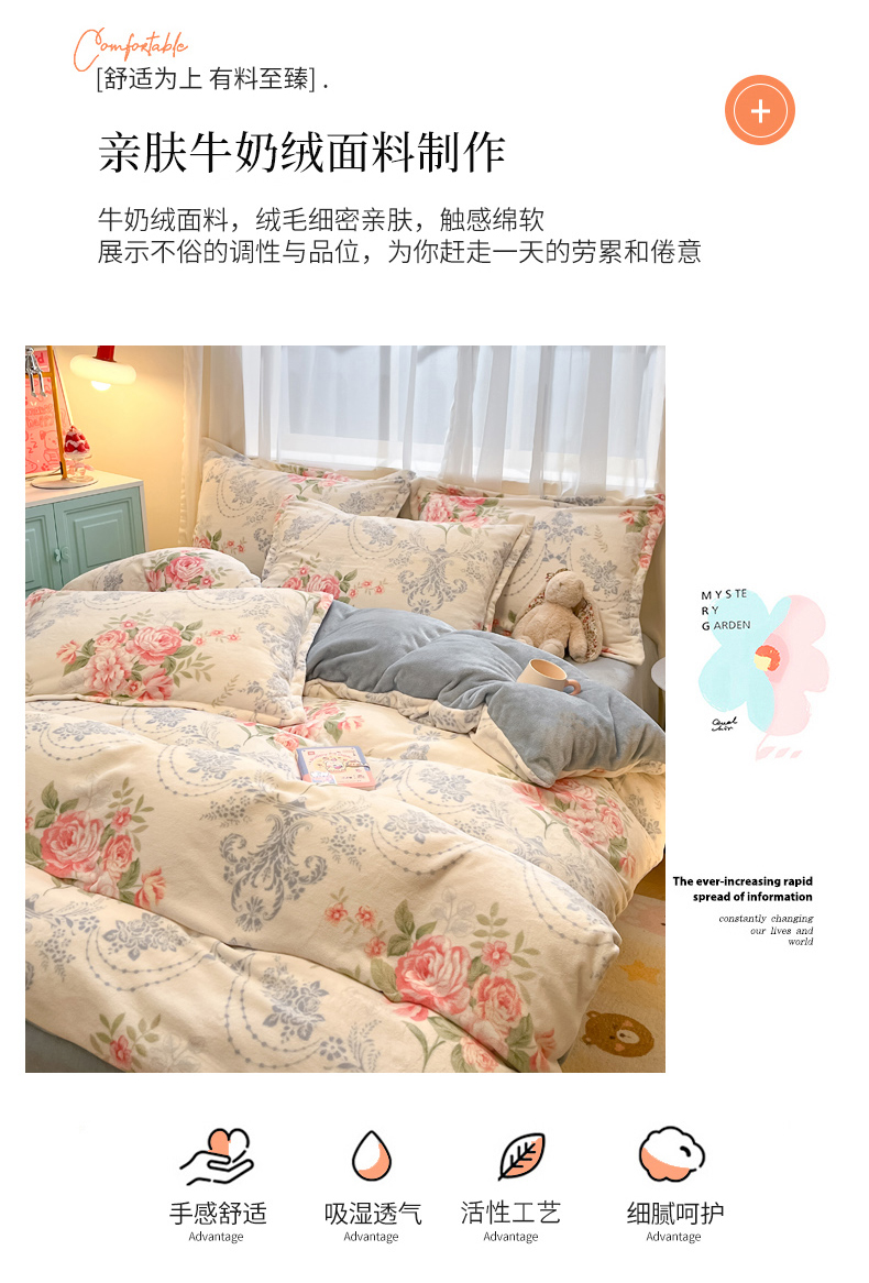 当前位置: 91家纺网 > 商品网购 > 床品套件 > 四件套 > 牛奶绒四件套 > 慕尚家纺 2025新款高克重田园花卉类加厚牛奶绒3.5kg四件套 画意