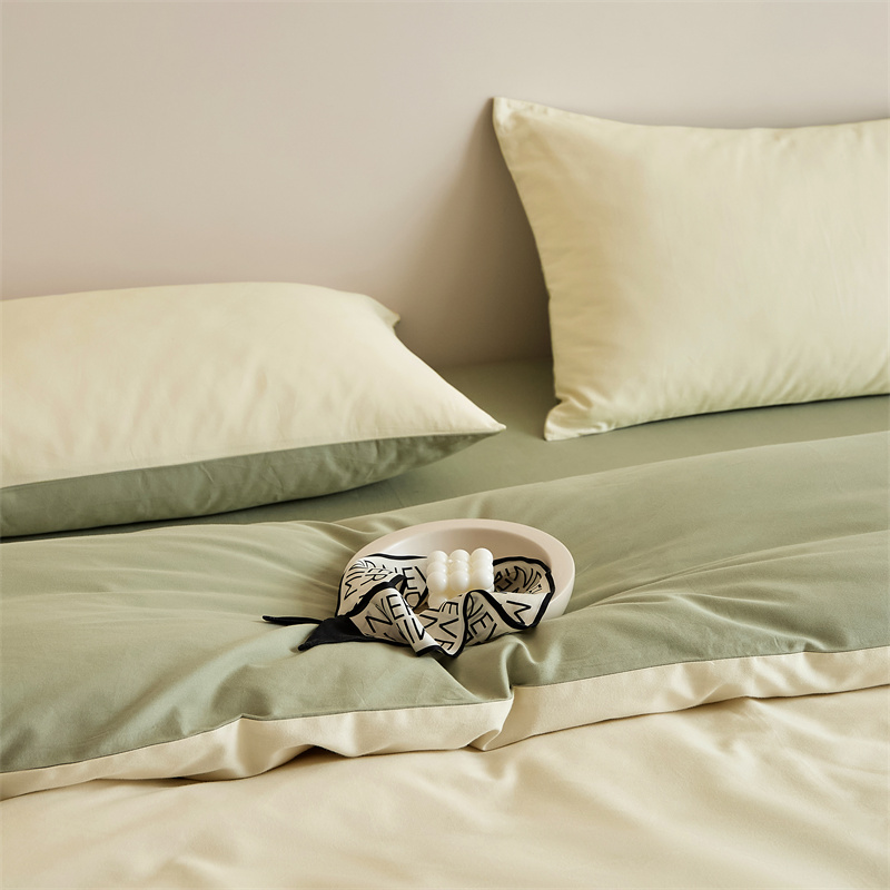 当前位置: 91家纺网 > 商品网购 > 床品套件 > 四件套 > 全棉普通四件套 > 禾时 2025新款A类全棉纯棉贡缎磨毛双拼色四件套 林昔
