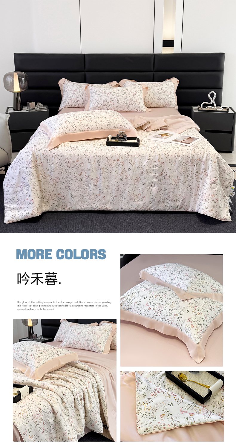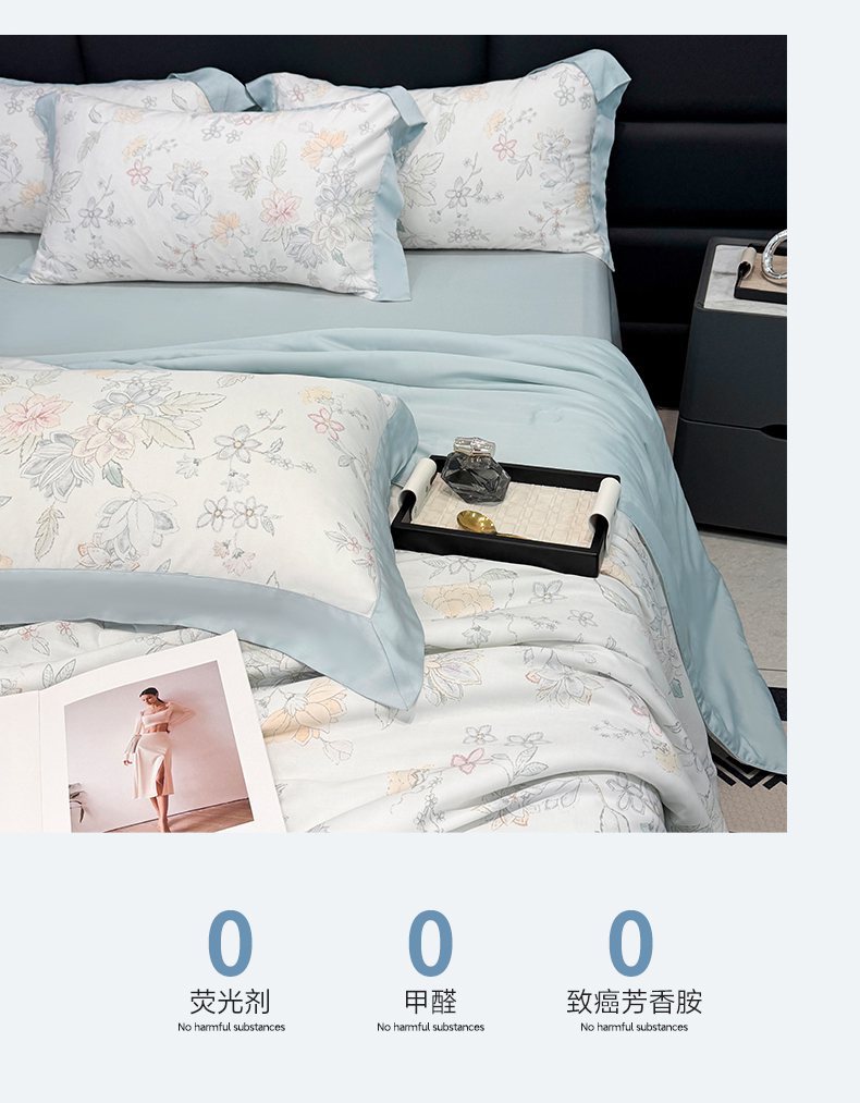当前位置: 91家纺网 > 商品网购 > 床品套件 > 四件套 > 夏被四件套 > 梵克保罗 2025春夏新款莱赛尔天丝夏被嵌绳款数码印花单夏被夏被四件套单床笠单床单款 吟禾暮