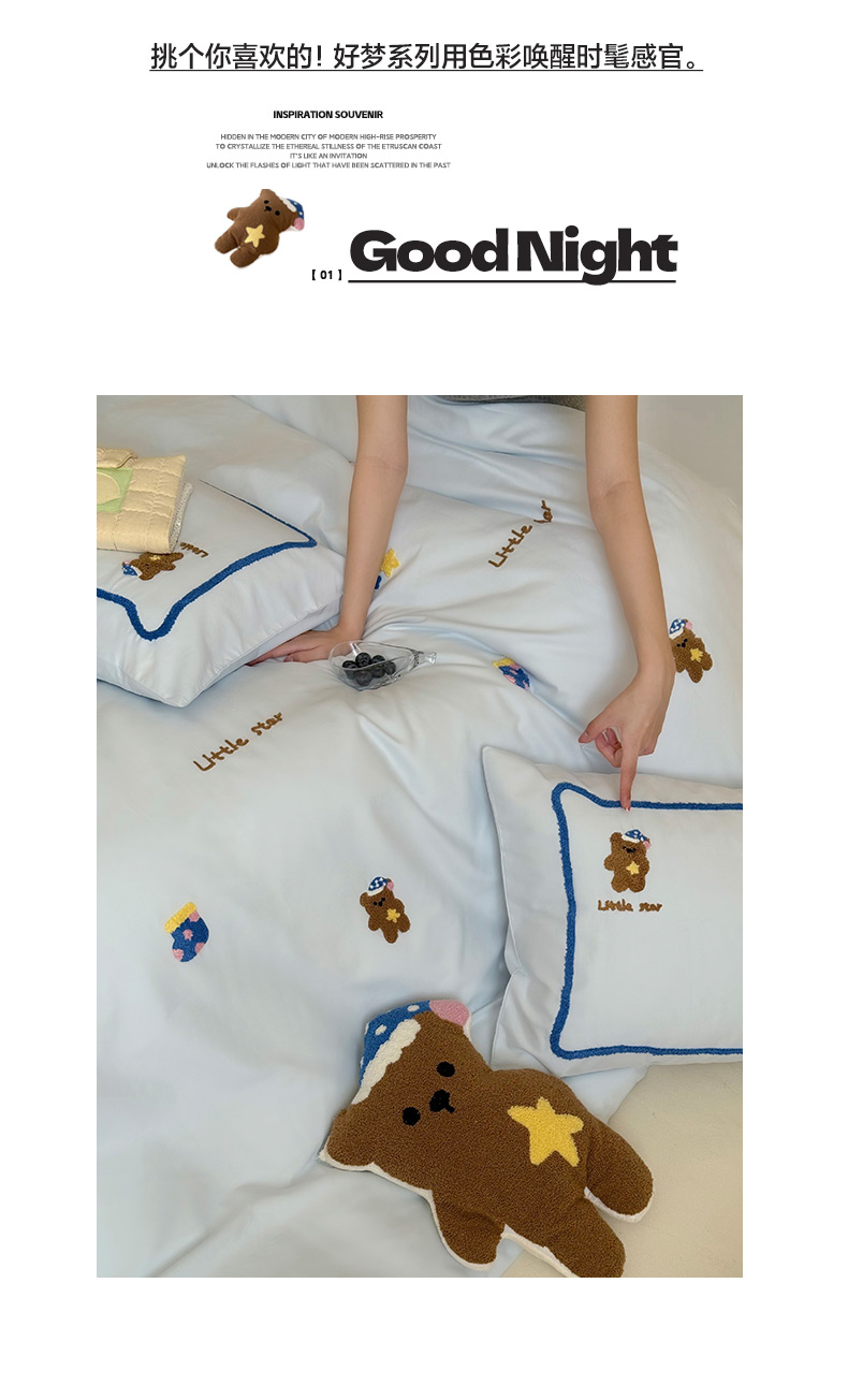 当前位置: 91家纺网 > 商品网购 > 床品套件 > 四件套 > 普通磨毛四件套 > 三味舒屋 2025新款好梦毛巾绣全棉纯棉磨毛四件套 磨毛款好梦小熊