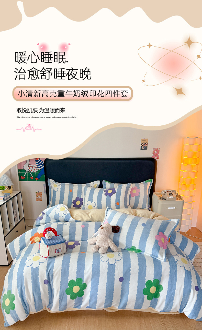 当前位置: 91家纺网 > 商品网购 > 床品套件 > 四件套 > 牛奶绒四件套 > 艾特你 2025新款小清新高克重牛奶绒印花四件套 花田初夏
