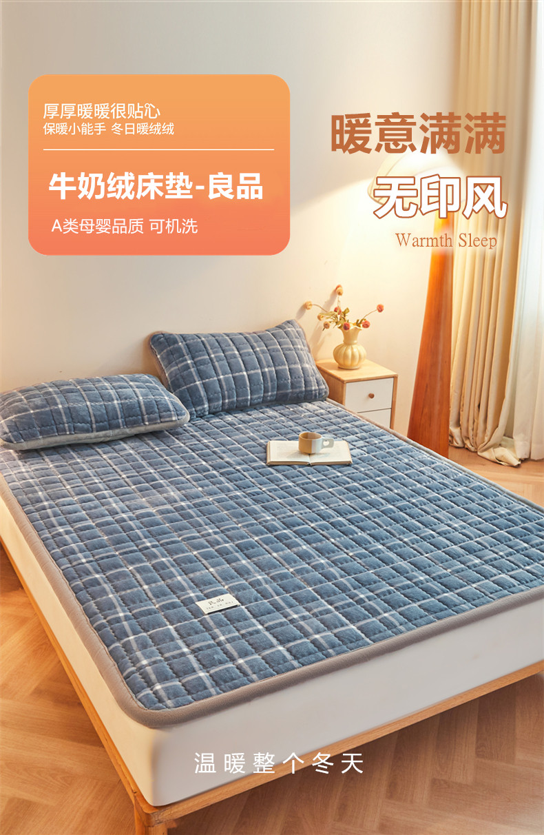 当前位置: 91家纺网 > 商品网购 > 床垫/床褥 > 普通床垫 > 喜居 2025新款无印风牛奶绒床褥垫-大床图 良品系列 良品-海茵蓝