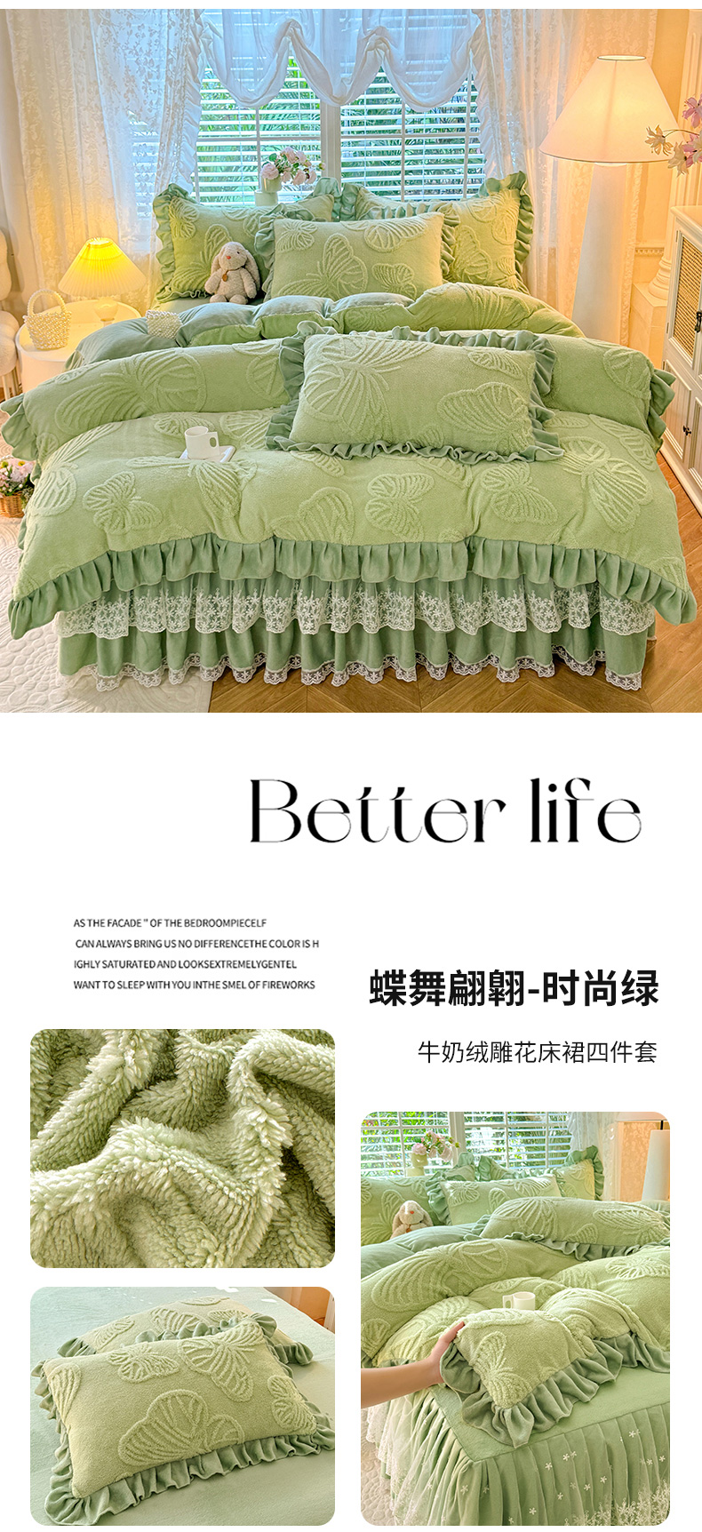(总)后庭寝室 2025新款牛奶绒床裙四件套-蝶舞翩翩系列,蝶舞翩翩-白粉玉,蝶舞翩翩-高贵咖,蝶舞翩翩-高级灰,蝶舞翩翩-靓丽紫,蝶舞翩翩-奶白咖,蝶舞翩翩-奶白绿,蝶舞翩翩-时尚绿,蝶舞翩翩-樱花粉