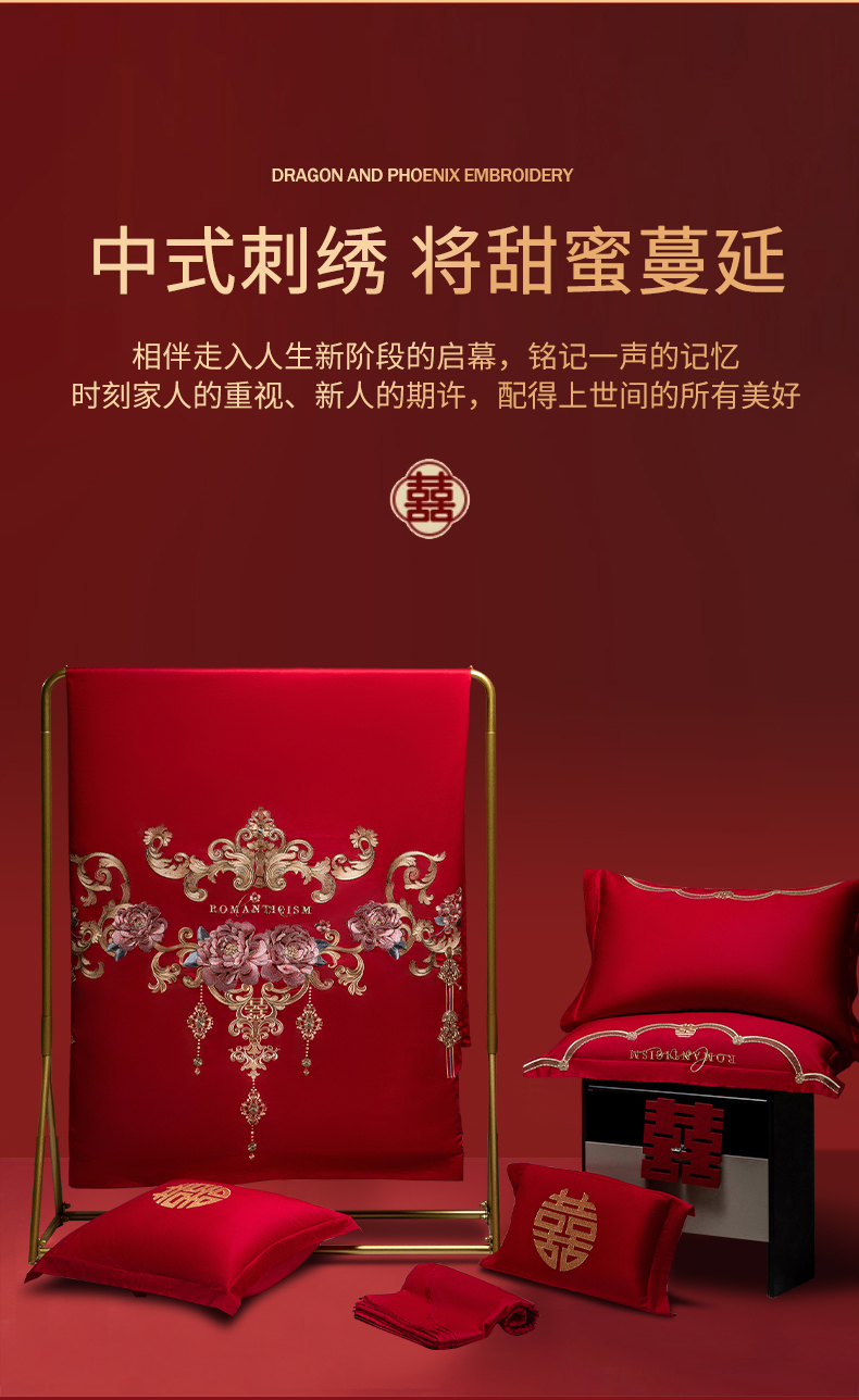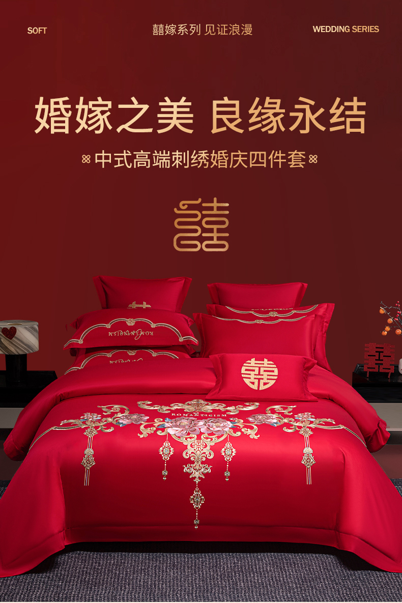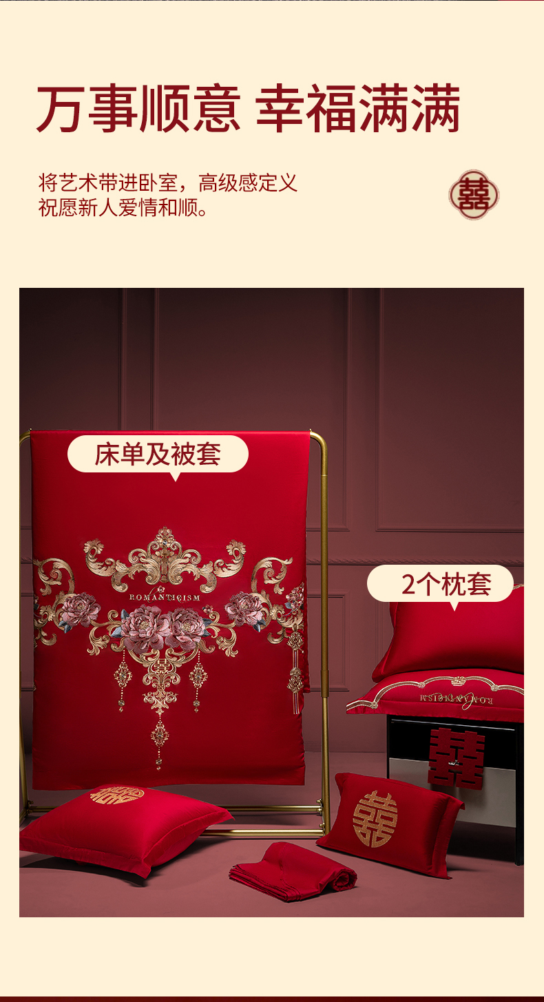 (总)欧乐蒂 2025新款全棉刺绣婚庆四件套,佳偶天成,龙凤和美,龙姿凤彩,玫瑰恋人,倾城之恋,双囍临门,甜蜜爱情,囍结良缘