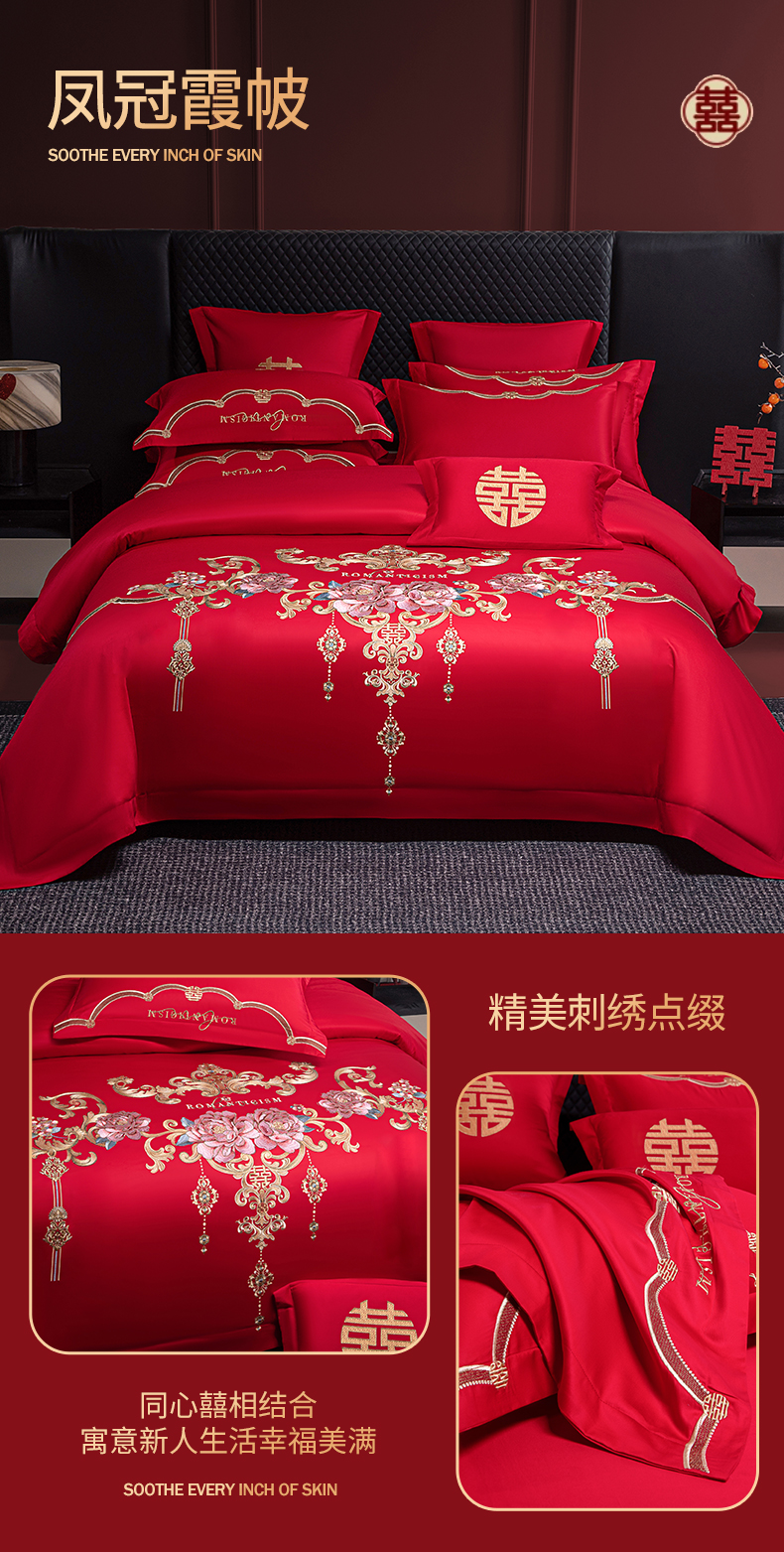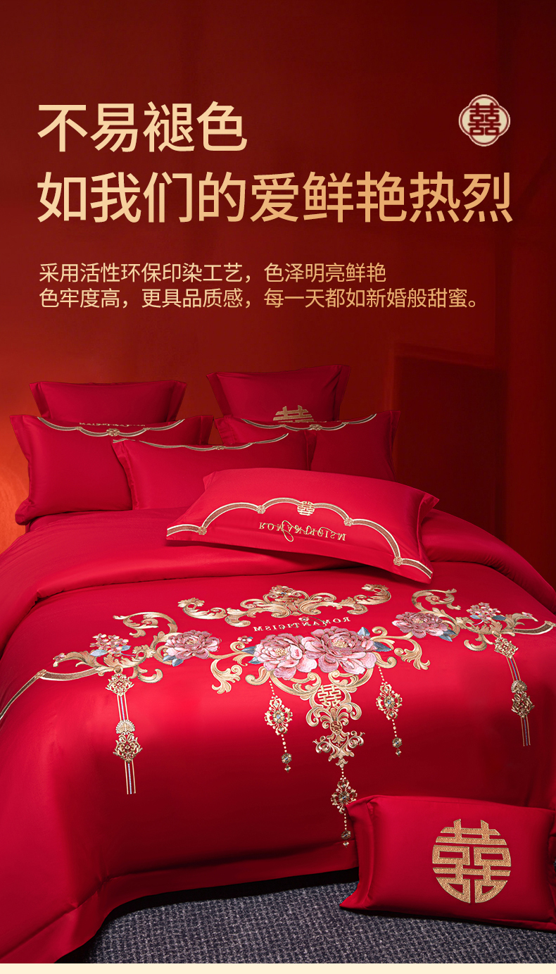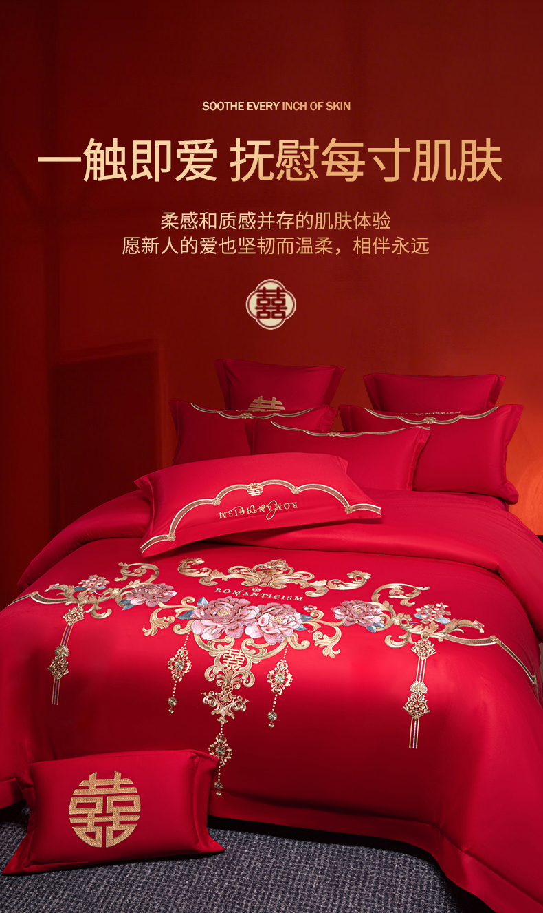 (总)欧乐蒂 2025新款全棉刺绣婚庆四件套,佳偶天成,龙凤和美,龙姿凤彩,玫瑰恋人,倾城之恋,双囍临门,甜蜜爱情,囍结良缘